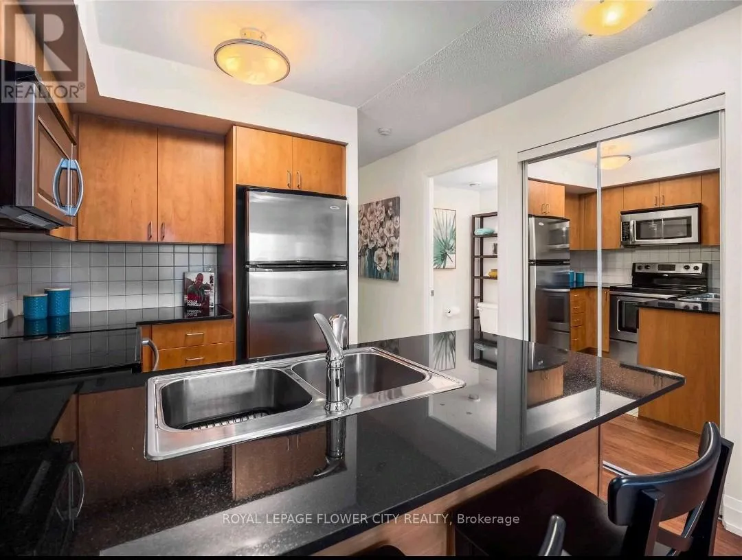 SHEPPARD AVE & ALLEN RD Stylish & Functional Living at Metro Place Condos! This bright and spacious 1+1 bedroom suite offers an intelligently designed layout with a versatile den perfect as a 2nd bedroom or home office. Enjoy an open-concept living/dining area with walk-out to a private east-facing balcony, flooding the space with natural light. The modern kitchen features granite counters, breakfast bar, and ceramic backsplash. Large foyer with double closet, laminate floors throughout, and numerous upgrades add to the appeal. Low maintenance fees! Prime Location: Steps to Sheppard West Subway Station, minutes to Yorkdale Mall, Costco, York University, parks, and major highways. Resort-Style Amenities: Indoor pool, sauna, fitness centre, party room & more. Includes 1 parking spot, stainless steel appliances, washer/dryer, custom blinds, and upgraded shower with jets. A must-see home that checks every box! (id:27476)
