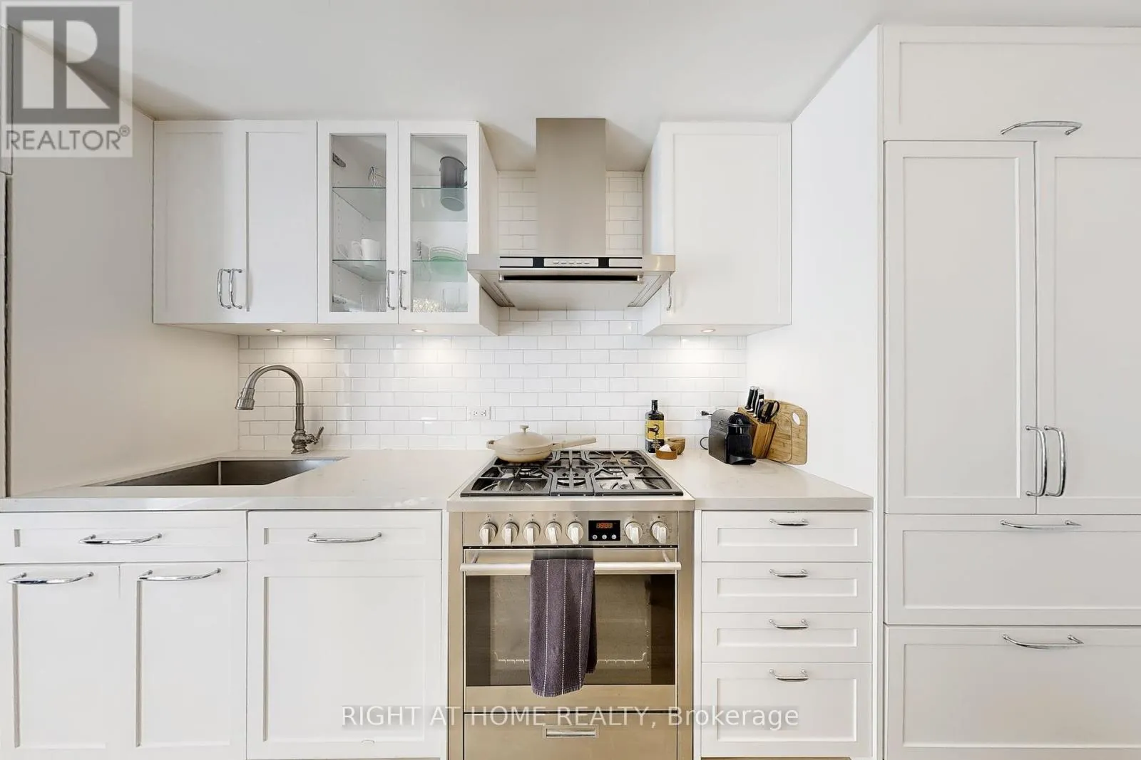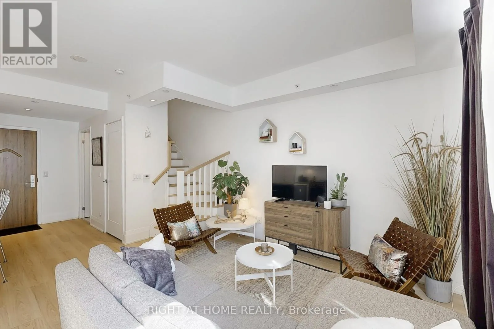 Cross Streets: Millwood/Laird. ** Directions: Enter through front door of condo building. Live bigger at The Upper House in Leaside. This two-storey condo townhome gives you 1,158 sq ft of light-filled living plus your own 98 sq ft terrace complete with BBQ gas line and water hookup. Inside, soaring 10 ft ceilings and an open layout give you room to breathe, while the sleek kitchen with stone counters and a wine fridge makes making dinner feel fancy. Two bedrooms, three bathrooms, and a parking spot with an EV charger mean life's practicalities are covered too. And when you step outside your door? A concierge whos got you covered, a gym downstairs, a party room for every celebration and yes even a dog spa.This isn't just home. It's a lifestyle in the heart of Leaside. (id:27476)