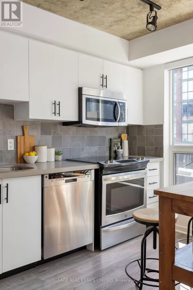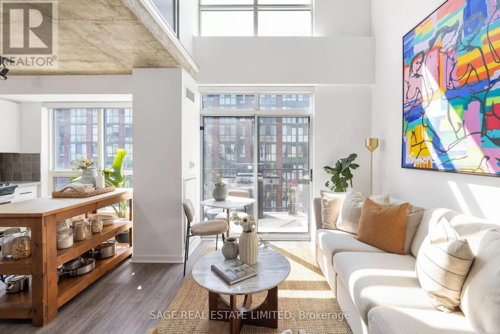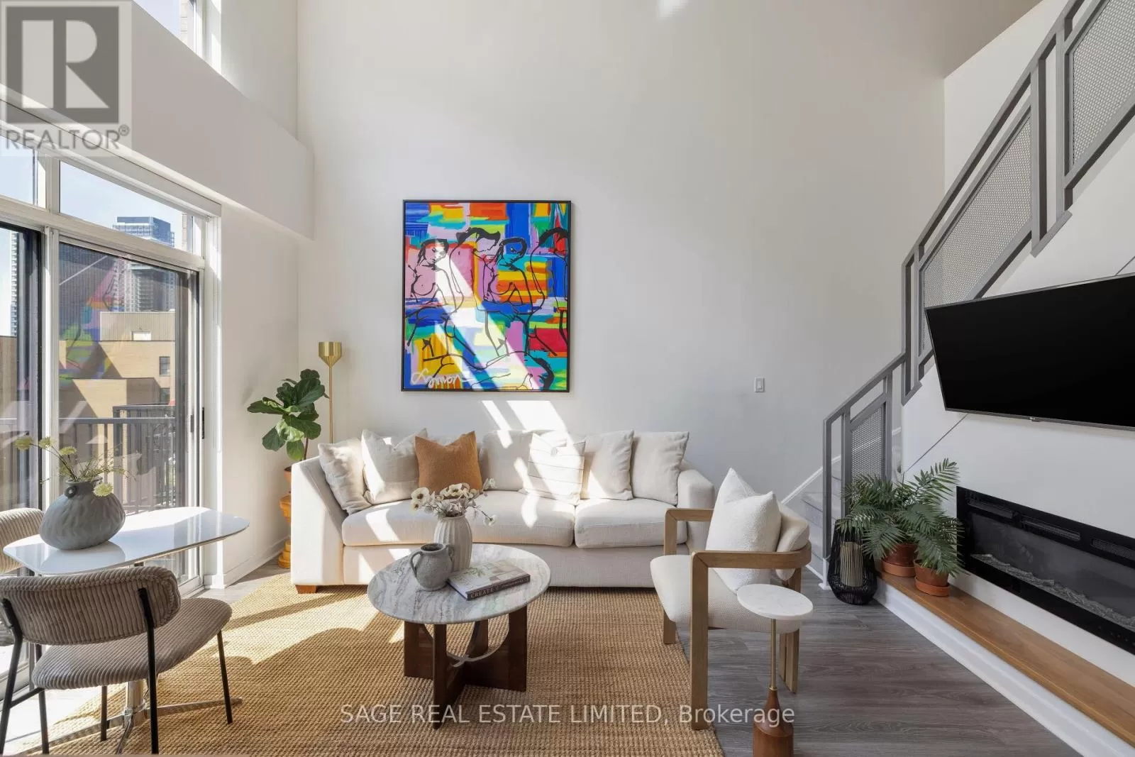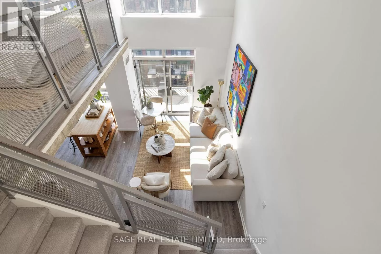 Cross Streets: King St. W & Niagara St. ** Directions: King Street West to Niagara, North on Niagara. Loft living at its finest! Located in one of Toronto's best neighbourhoods, this light-filled and updated two storey, one bedroom + custom den makes your King West dreams come true. Featuring a large kitchen with tons of cabinetry, a separate den with custom built storage and desk, an over-sized bedroom fit for a queen (and king!), a beautifully wide living room with walkout to your unobstructed balcony and the most lovely floor-to-ceiling windows with remote powered blinds letting ALL of that south-facing sunshine in. With no neighbours above, it feels like your own little sanctuary on top of the world! Step outside and you're within steps to anything and everything- the best restaurants, shops and transit and for those living their best active lifestyles, you're steps from amazing parks, trails and of course, the waterfront. While you certainly don't need a car with transit being right out your door, your own prime parking space adds just another checked box to the endless list of why this should be your new home! The cherry on top..all inclusive maintenance fees! It just doesn't get any better. (id:27476)