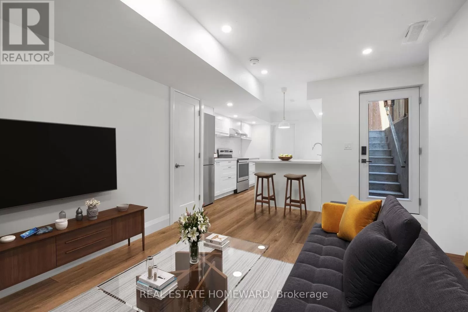Cross Streets: Garnock Ave and Logan Ave. ** Directions: Drive South on Logan Ave from Danforth and turn West on Garnock Ave. Welcome to this beautifully renovated, legal lower-level apartment in the heart of North Riverdale. With 8' ceilings and large windows throughout, this is not your typical basement unit - the space feels bright, open, and inviting. The modern kitchen features quartz countertops, stainless steel appliances (Electrolux and Whirlpool), and generous cabinetry - both stylish and highly functional. The bedroom offers rare double closets, giving you plenty of storage without compromising on comfort. A spa-inspired bathroom adds a touch of luxury to everyday living, complete with an oversized 6' glass shower and contemporary finishes. Perfectly situated, 52 Garnock Avenue is steps from Withrow and Riverdale Parks, Chester Subway Station, and restaurants and shops along the Danforth, placing convenience and community right at your doorstep. (id:27476)