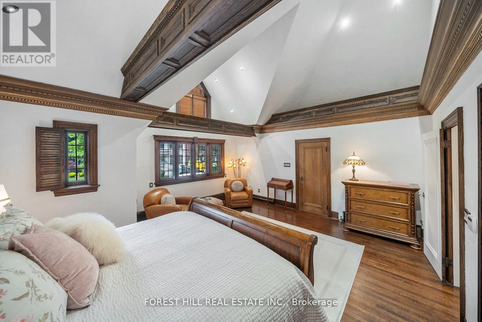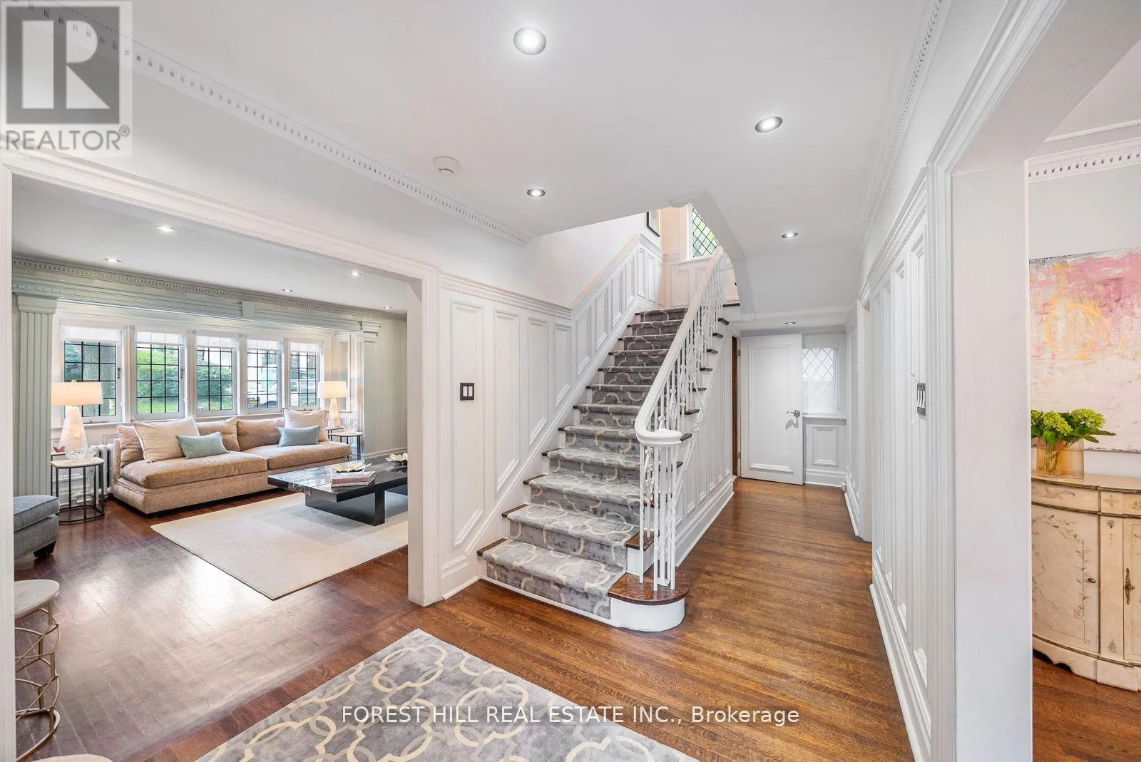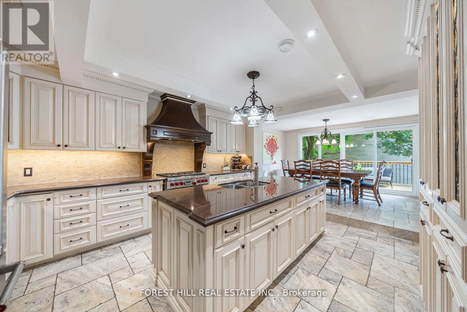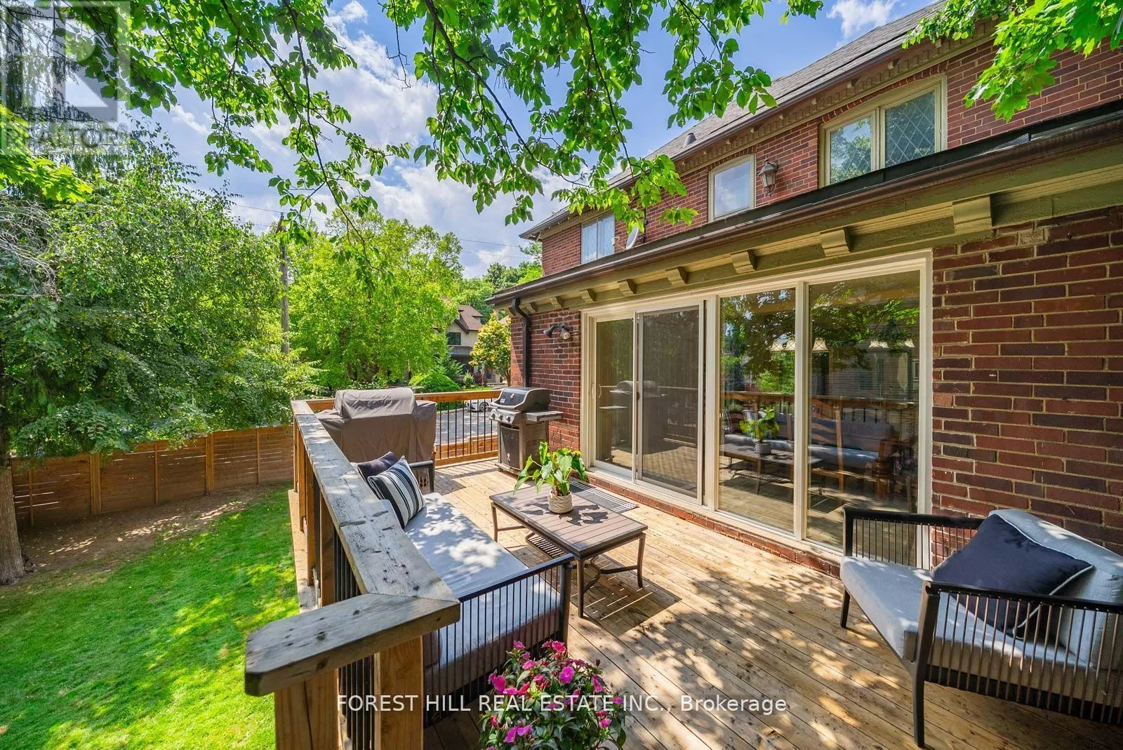 EAST OF BATHURST/SOUTH OF EGLINTON SE CORNER OF AVA ROAD AND ROSEMARY RD Discover 39 Ava Road, a spacious and elegant family home in prestigious Forest Hill South, offering exceptional value for growing families, professionals relocating to Toronto, or investors seeking long-term growth.Positioned on a quiet south-east corner lot at Ava Road & Rosemary, this property delivers approximately 4,700 sq. ft. of luxury living space with a functional centre-hall layout and high-quality finishes throughout.The main floor showcases bright, open principal rooms, ideal for both daily living and formal entertaining. The custom kitchen features wood cabinetry, granite counters, a large centre island, and premium stainless-steel appliancesincluding a WOLF 6-burner gas range. Sliding doors lead to a private deck and a south-facing fenced backyard with potential for a future pool or landscaped garden.Upstairs includes four large bedrooms, highlighted by a primary suite with 18-ft cathedral ceilings, wood beams, & abundant natural light. The lower level adds versatility with a recreation room/home theatre, fifth bedroom or gym, office/games area w/ above grade walk-out to backyard and direct garage access to interior home. Situated on a 47 x 110 ft lot, this home is surrounded by top-rated schools, parks, boutique shopping, and public transit-a prime location in one of Toronto's most sought-after neighbourhoods.39 Ava Road offers strong investment potential, a premium address, and flexible living for modern families. A rare opportunity to secure a Forest Hill home combining space, location, and long-term value. (id:27476)