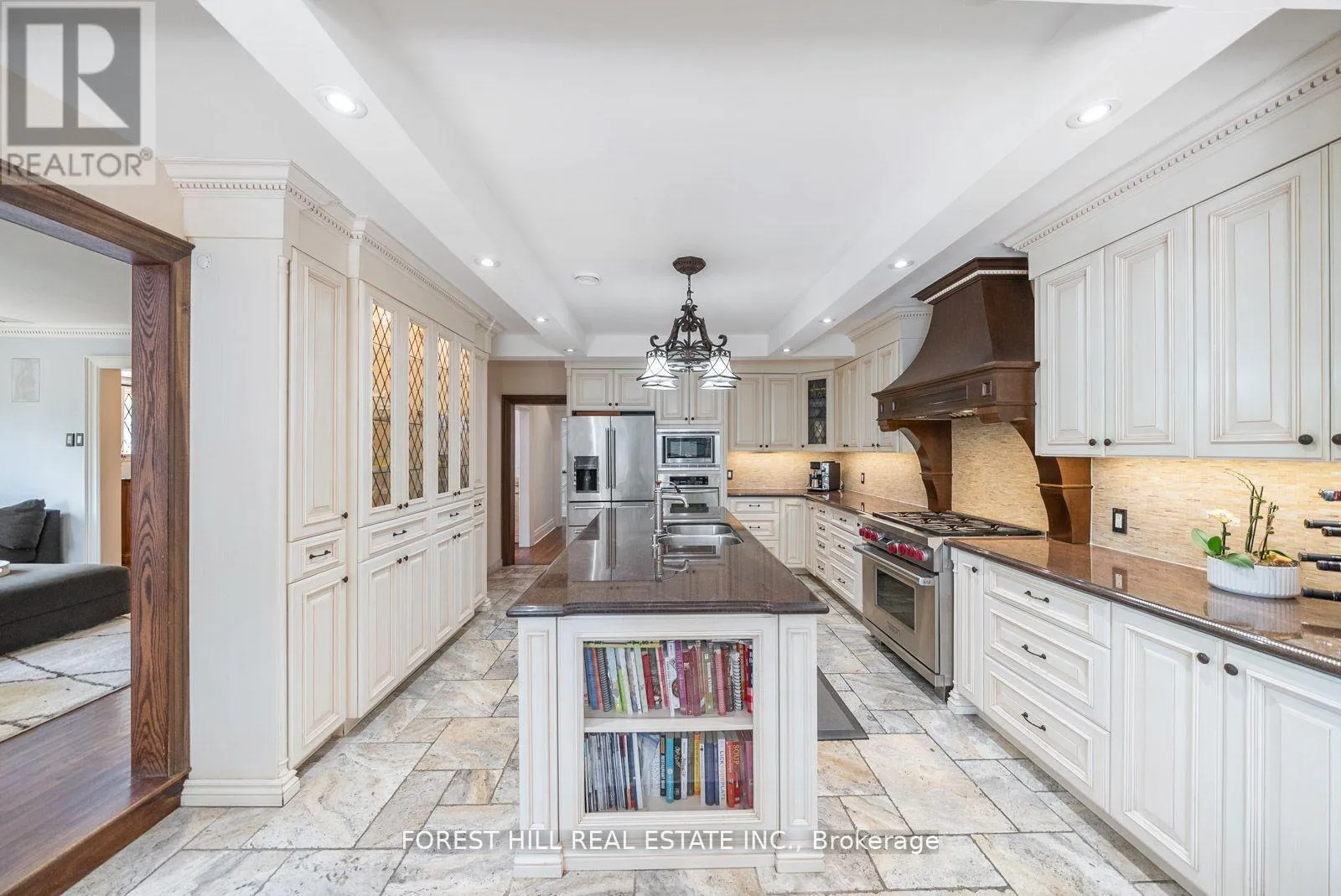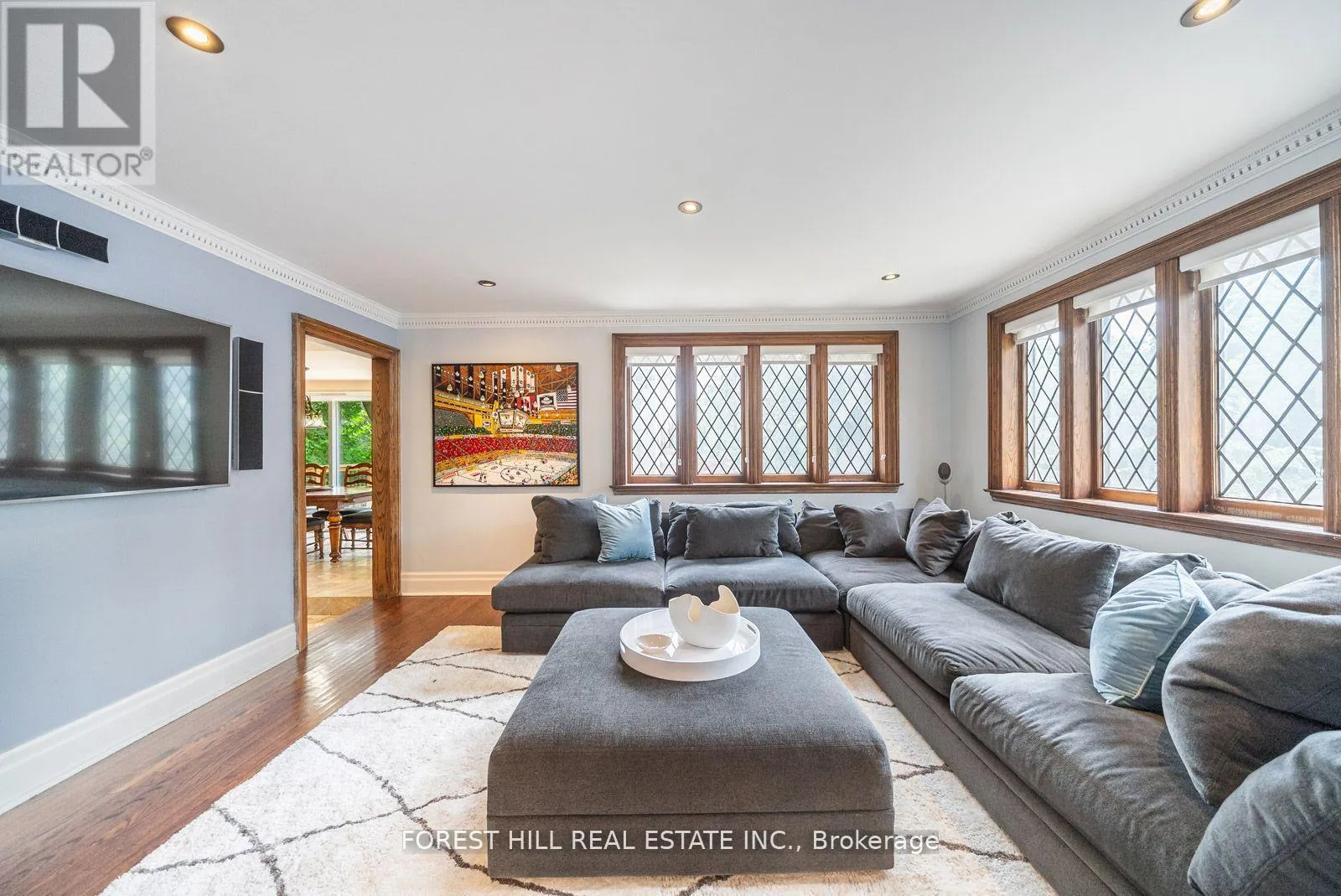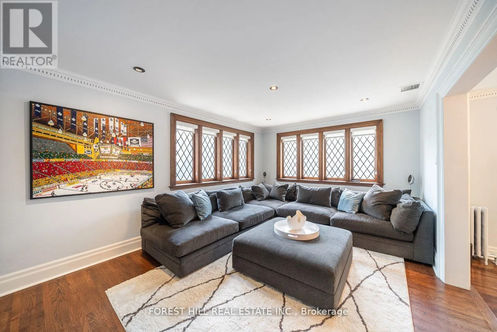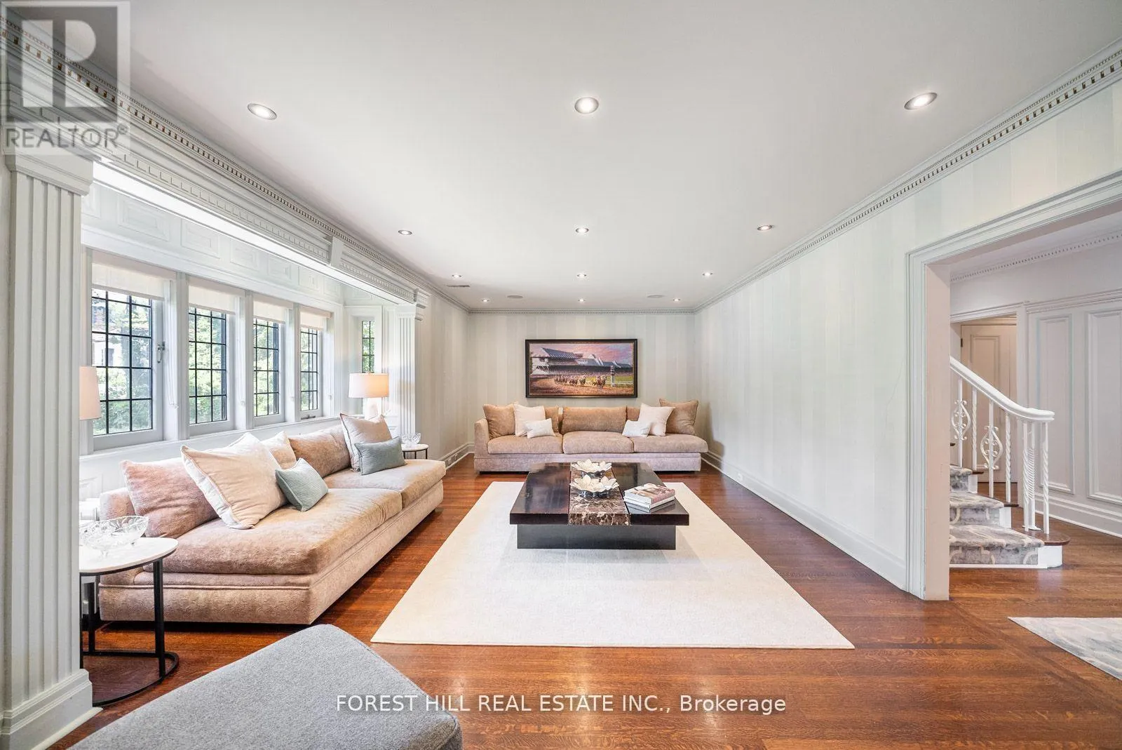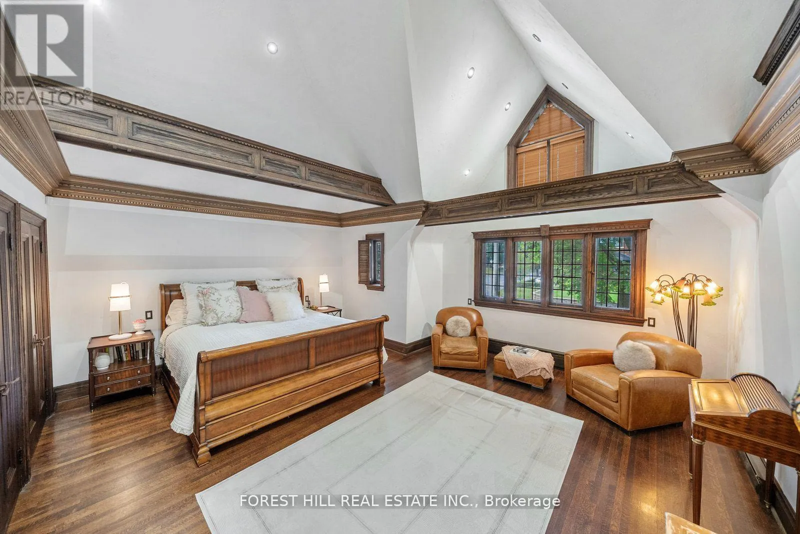 EAST OF BATHURST/SOUTH OF EGLINTON SE CORNER OF AVA ROAD AND ROSEMARY RD Discover 39 Ava Road, a spacious and elegant family home in prestigious Forest Hill South, offering exceptional value for growing families, professionals relocating to Toronto, or investors seeking long-term growth.Positioned on a quiet south-east corner lot at Ava Road & Rosemary, this property delivers approximately 4,700 sq. ft. of luxury living space with a functional centre-hall layout and high-quality finishes throughout.The main floor showcases bright, open principal rooms, ideal for both daily living and formal entertaining. The custom kitchen features wood cabinetry, granite counters, a large centre island, and premium stainless-steel appliancesincluding a WOLF 6-burner gas range. Sliding doors lead to a private deck and a south-facing fenced backyard with potential for a future pool or landscaped garden.Upstairs includes four large bedrooms, highlighted by a primary suite with 18-ft cathedral ceilings, wood beams, & abundant natural light. The lower level adds versatility with a recreation room/home theatre, fifth bedroom or gym, office/games area w/ above grade walk-out to backyard and direct garage access to interior home. Situated on a 47 x 110 ft lot, this home is surrounded by top-rated schools, parks, boutique shopping, and public transit-a prime location in one of Toronto's most sought-after neighbourhoods.39 Ava Road offers strong investment potential, a premium address, and flexible living for modern families. A rare opportunity to secure a Forest Hill home combining space, location, and long-term value. (id:27476)