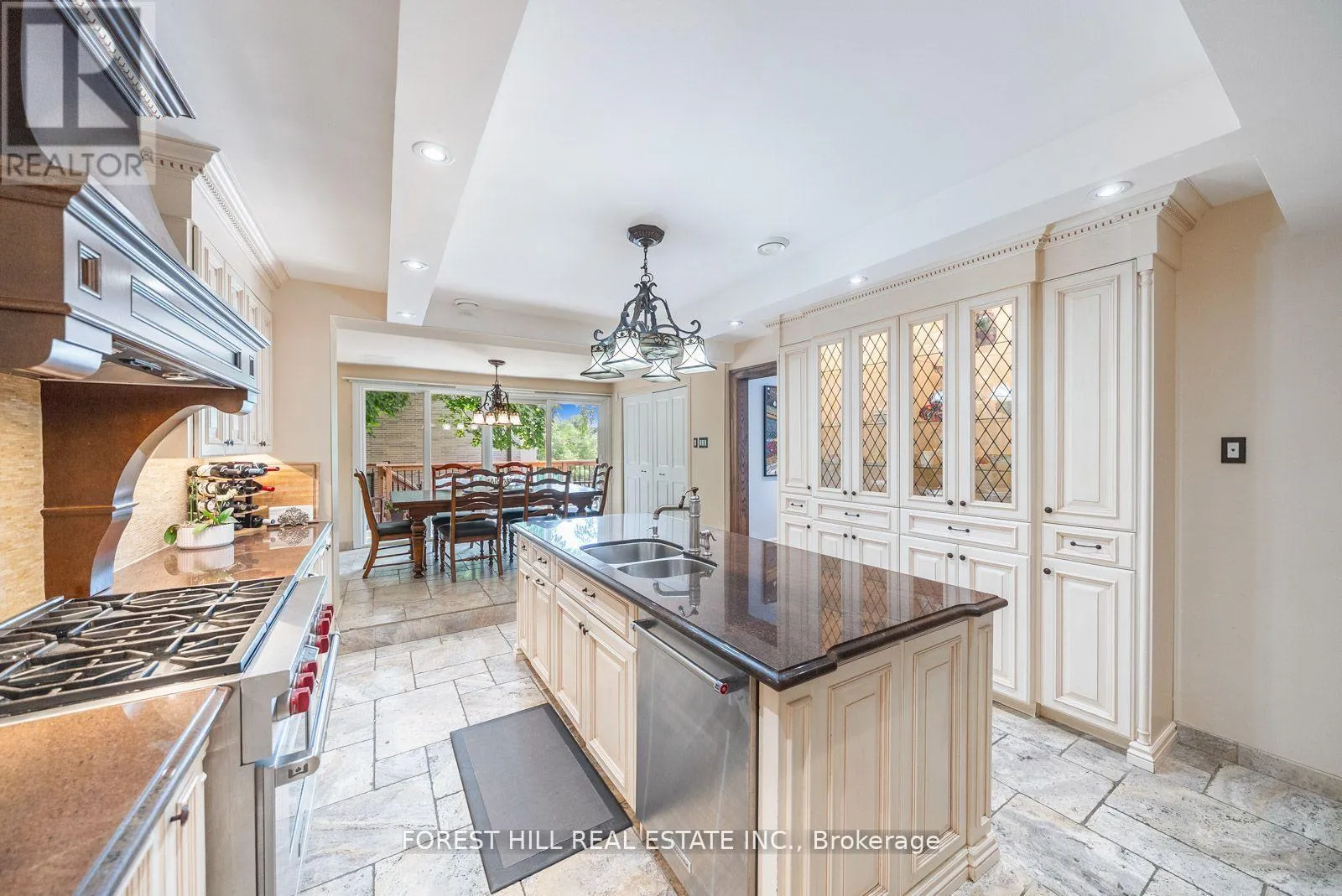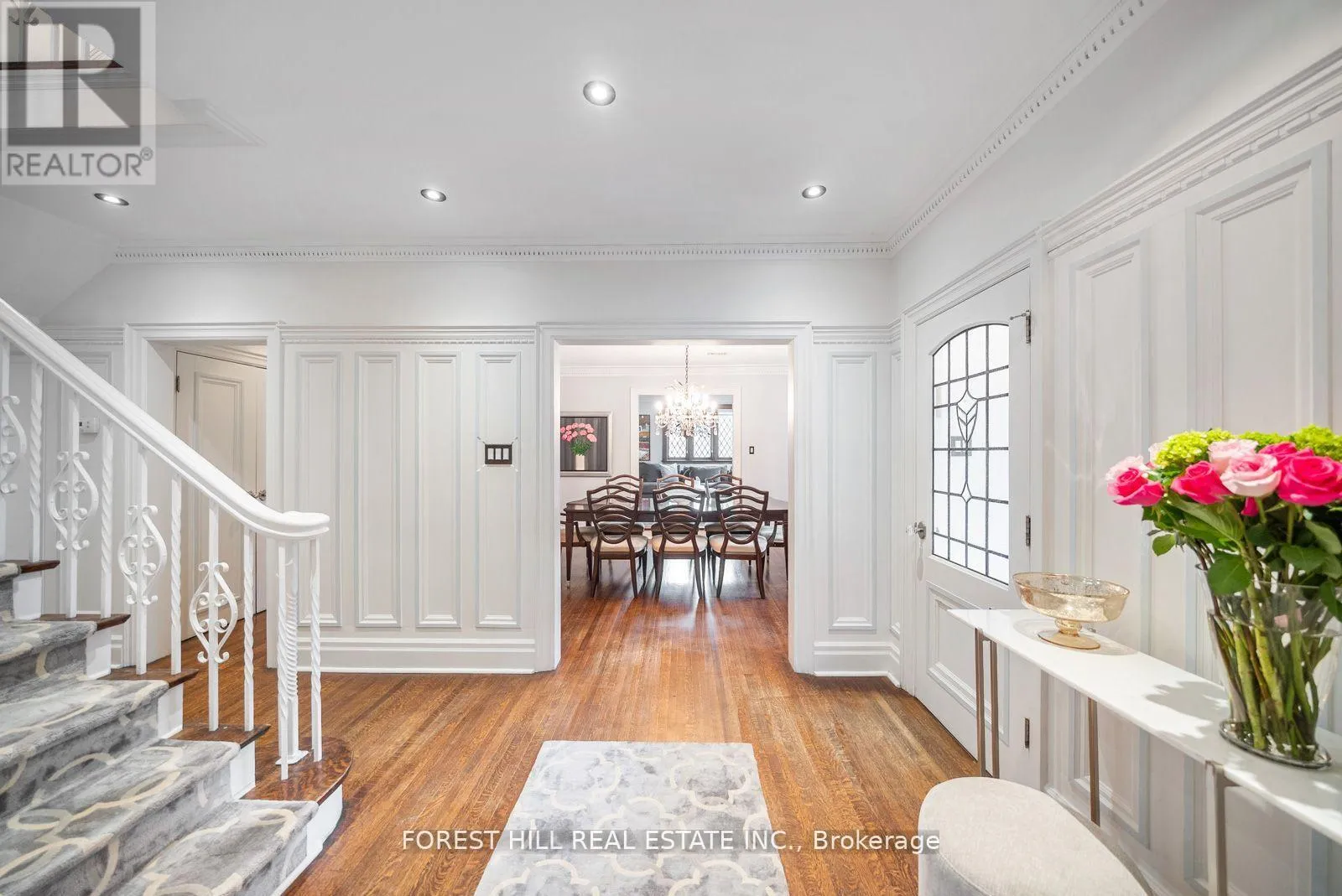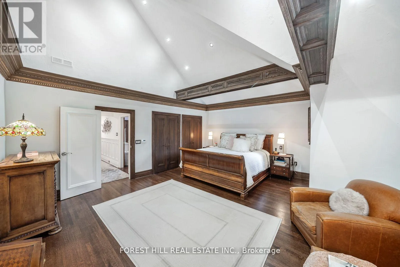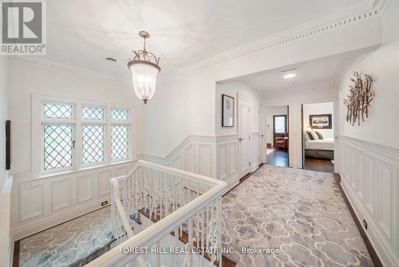 EAST OF BATHURST/SOUTH OF EGLINTON SE CORNER OF AVA ROAD AND ROSEMARY RD Discover 39 Ava Road, a spacious and elegant family home in prestigious Forest Hill South, offering exceptional value for growing families, professionals relocating to Toronto, or investors seeking long-term growth.Positioned on a quiet south-east corner lot at Ava Road & Rosemary, this property delivers approximately 4,700 sq. ft. of luxury living space with a functional centre-hall layout and high-quality finishes throughout.The main floor showcases bright, open principal rooms, ideal for both daily living and formal entertaining. The custom kitchen features wood cabinetry, granite counters, a large centre island, and premium stainless-steel appliancesincluding a WOLF 6-burner gas range. Sliding doors lead to a private deck and a south-facing fenced backyard with potential for a future pool or landscaped garden.Upstairs includes four large bedrooms, highlighted by a primary suite with 18-ft cathedral ceilings, wood beams, & abundant natural light. The lower level adds versatility with a recreation room/home theatre, fifth bedroom or gym, office/games area w/ above grade walk-out to backyard and direct garage access to interior home. Situated on a 47 x 110 ft lot, this home is surrounded by top-rated schools, parks, boutique shopping, and public transit-a prime location in one of Toronto's most sought-after neighbourhoods.39 Ava Road offers strong investment potential, a premium address, and flexible living for modern families. A rare opportunity to secure a Forest Hill home combining space, location, and long-term value. (id:27476)