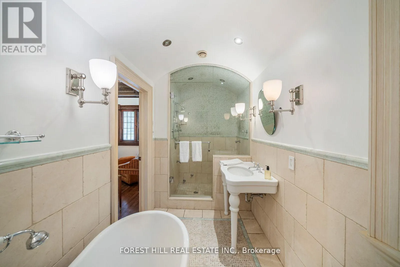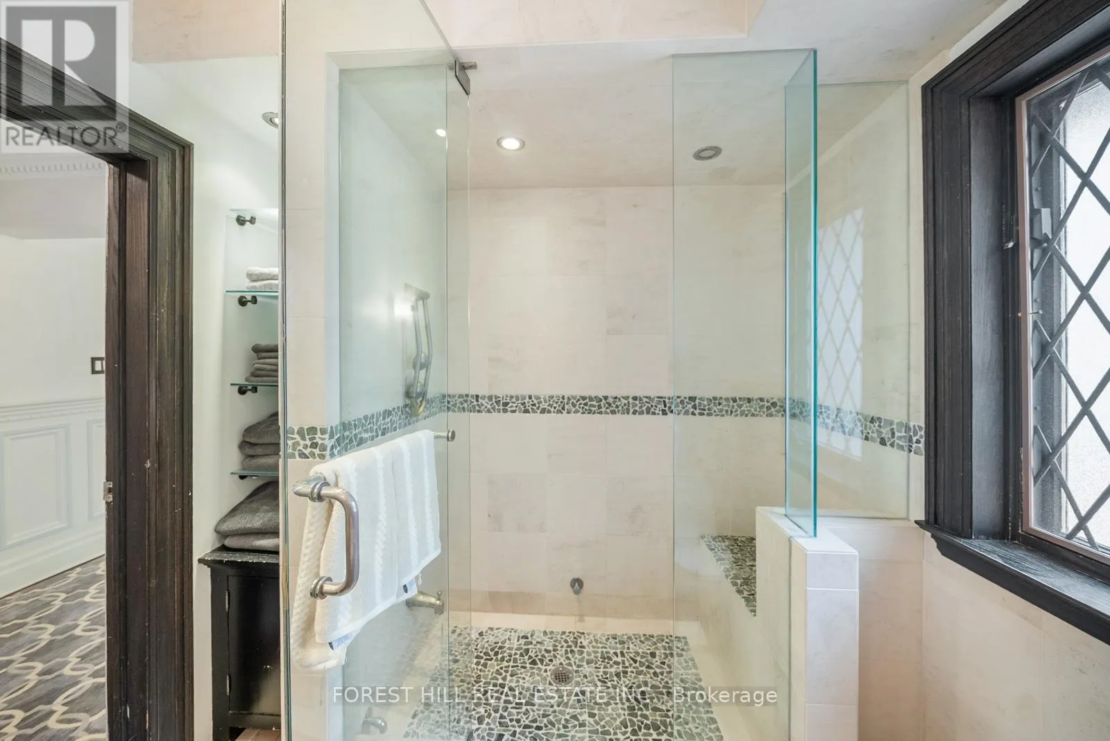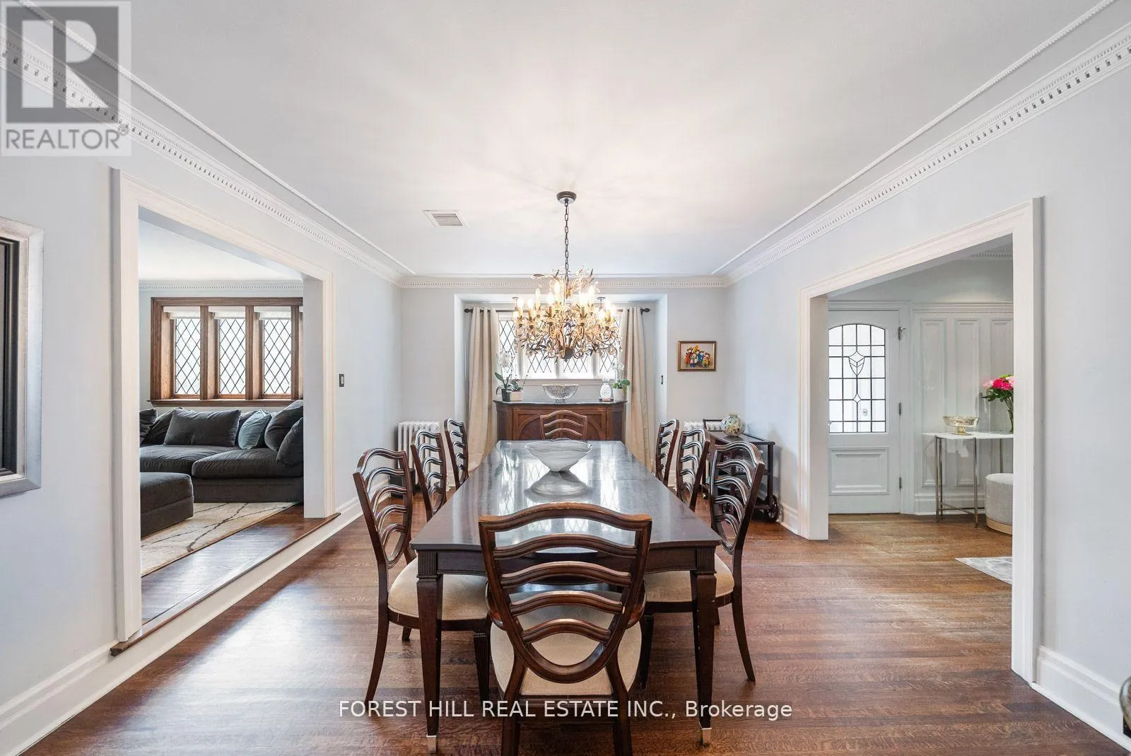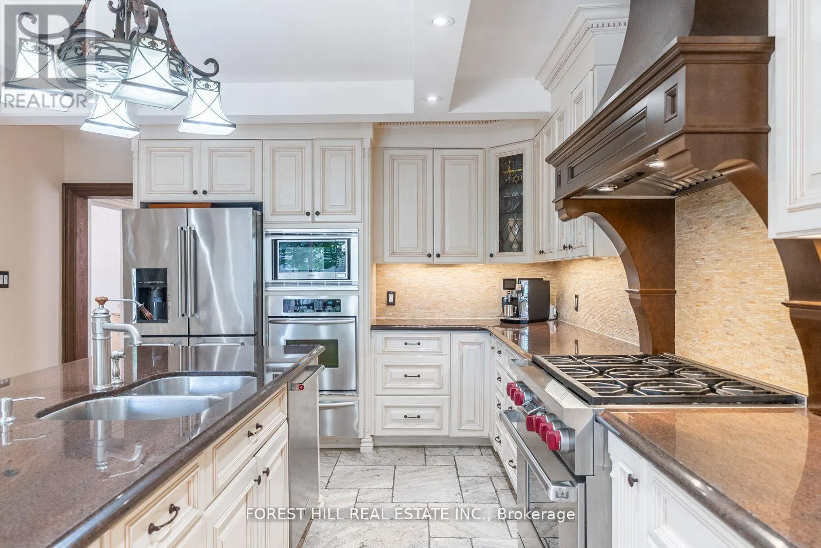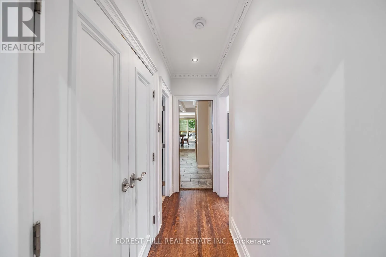 EAST OF BATHURST/SOUTH OF EGLINTON SE CORNER OF AVA ROAD AND ROSEMARY RD Discover 39 Ava Road, a spacious and elegant family home in prestigious Forest Hill South, offering exceptional value for growing families, professionals relocating to Toronto, or investors seeking long-term growth.Positioned on a quiet south-east corner lot at Ava Road & Rosemary, this property delivers approximately 4,700 sq. ft. of luxury living space with a functional centre-hall layout and high-quality finishes throughout.The main floor showcases bright, open principal rooms, ideal for both daily living and formal entertaining. The custom kitchen features wood cabinetry, granite counters, a large centre island, and premium stainless-steel appliancesincluding a WOLF 6-burner gas range. Sliding doors lead to a private deck and a south-facing fenced backyard with potential for a future pool or landscaped garden.Upstairs includes four large bedrooms, highlighted by a primary suite with 18-ft cathedral ceilings, wood beams, & abundant natural light. The lower level adds versatility with a recreation room/home theatre, fifth bedroom or gym, office/games area w/ above grade walk-out to backyard and direct garage access to interior home. Situated on a 47 x 110 ft lot, this home is surrounded by top-rated schools, parks, boutique shopping, and public transit-a prime location in one of Toronto's most sought-after neighbourhoods.39 Ava Road offers strong investment potential, a premium address, and flexible living for modern families. A rare opportunity to secure a Forest Hill home combining space, location, and long-term value. (id:27476)