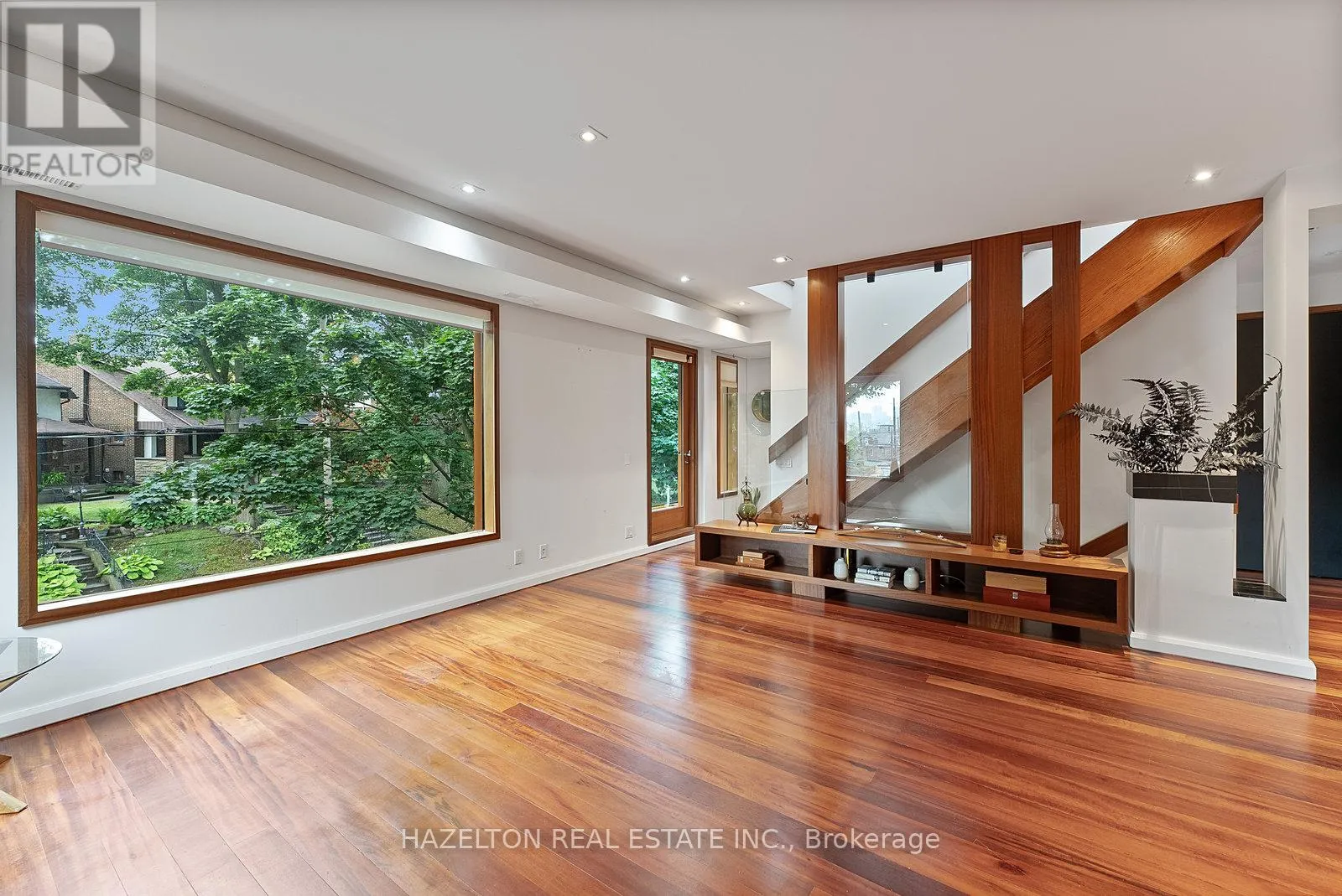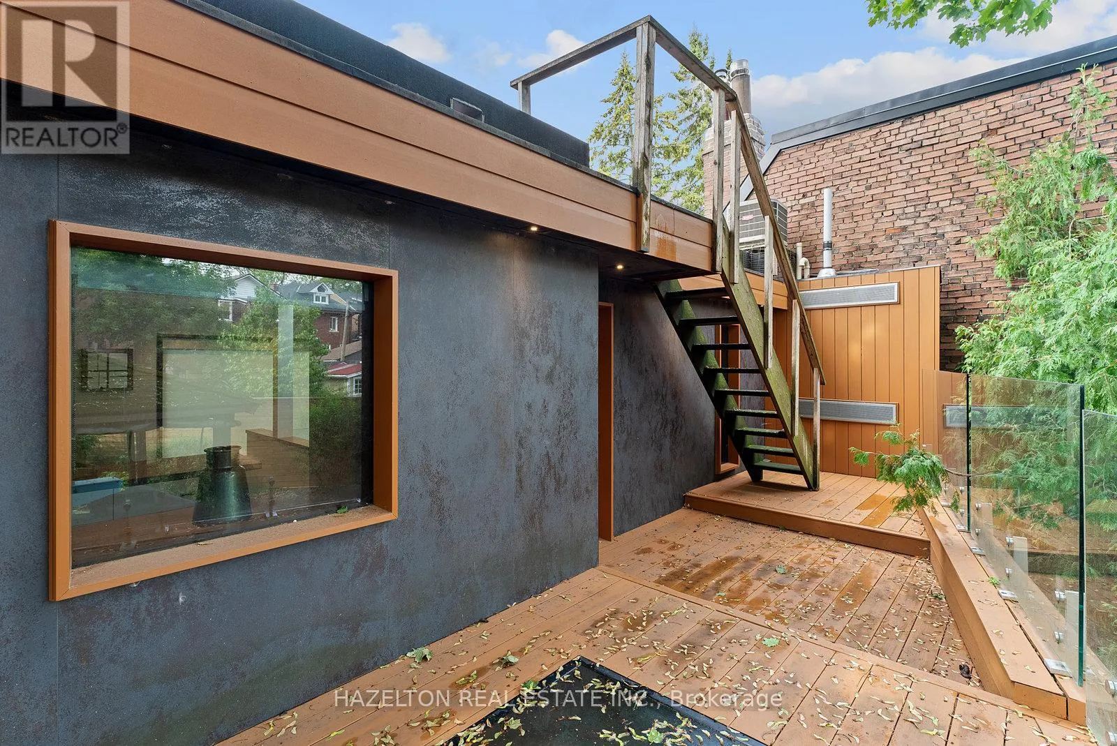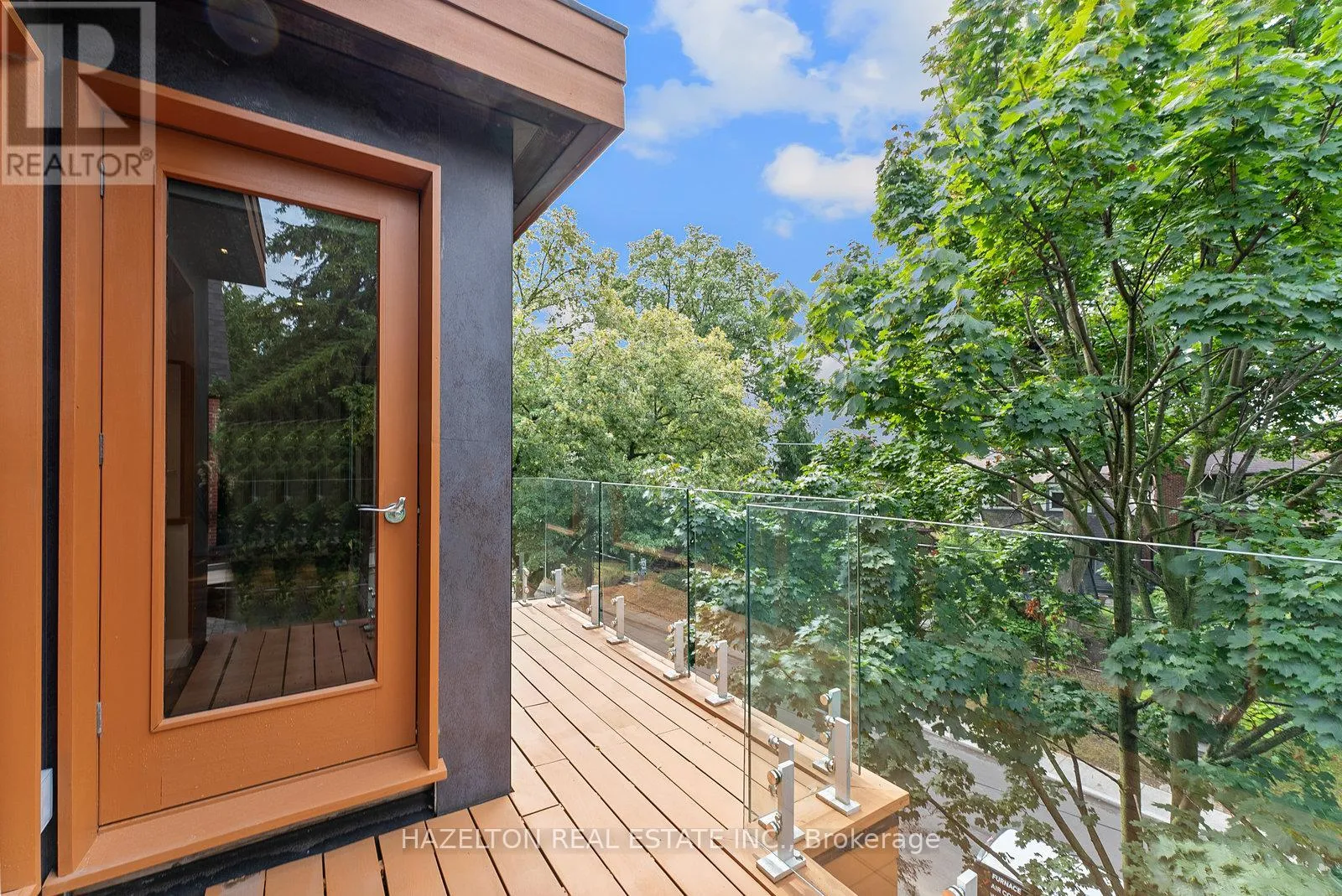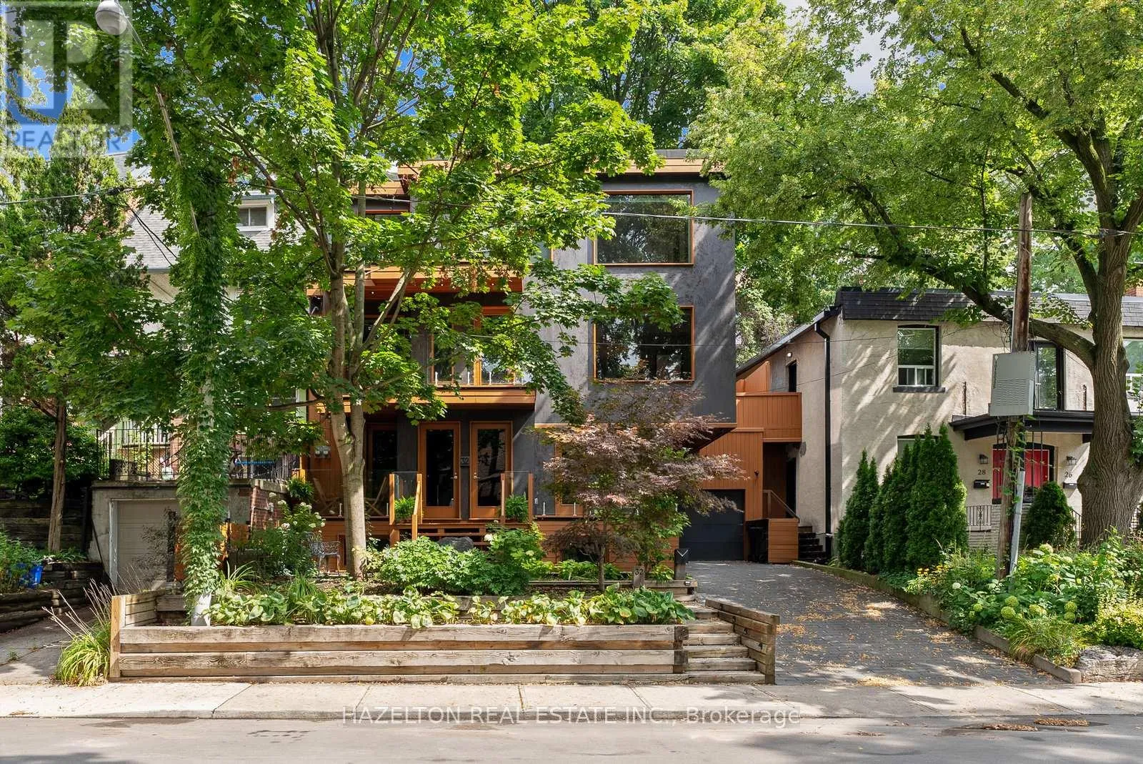 Cross Streets: Regal and Oakwood. ** Directions: Davenport to Regal. Located in Torontos sought-after Regal Heights neighbourhood, this duplex ( That can be converted into a single-family home) offers a modern sanctuary where architecture and nature meet in perfect harmony. Nestled among mature trees and framed by curated landscaping, it provides a private retreat unlike any other in the city. The exterior is finished with unique porcelain tile, while the balconies are enclosed by sleek glass railings, and the floors throughout are crafted from exotic tiger wood. Warm wood accents soften sleek contemporary lines, grounding the design in natural beauty .Each unit has its own unique character. The upper suite (primary suite) welcomes you with abundant natural light, floor-to-ceiling windows, and dual skylights. Its open-concept layout captures serene treetop views from every room. The primary suite is a tranquil retreat with spa-inspired finishes, six private walkouts, and an unfinished rooftop terrace awaiting your personal touch.The main-floor suite features 2 bedrooms, newly updated kitchen with brand-new appliances and a private balcony, perfect for enjoying morning coffee.The basement includes its own suite, offering even more flexibility with a separate entrance, kitchenette, high ceilings, and natural light, making it ideal as an in-law suite or a third income-generating unit. A turnkey property offering charm, flexibility, and prime location, it is ideal for multi-generational living or rental income with lasting value. Perfectly situated steps from cafés, restaurants, and shops, with easy access to the Annex, Corso Italia, Ossington, parks, schools, and community amenities. The sellers do not represent or warrant retrofit compliance with respect to the multiple residential units. (id:27476)