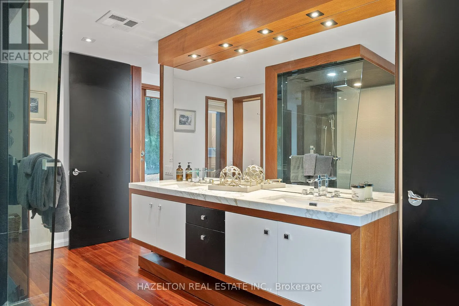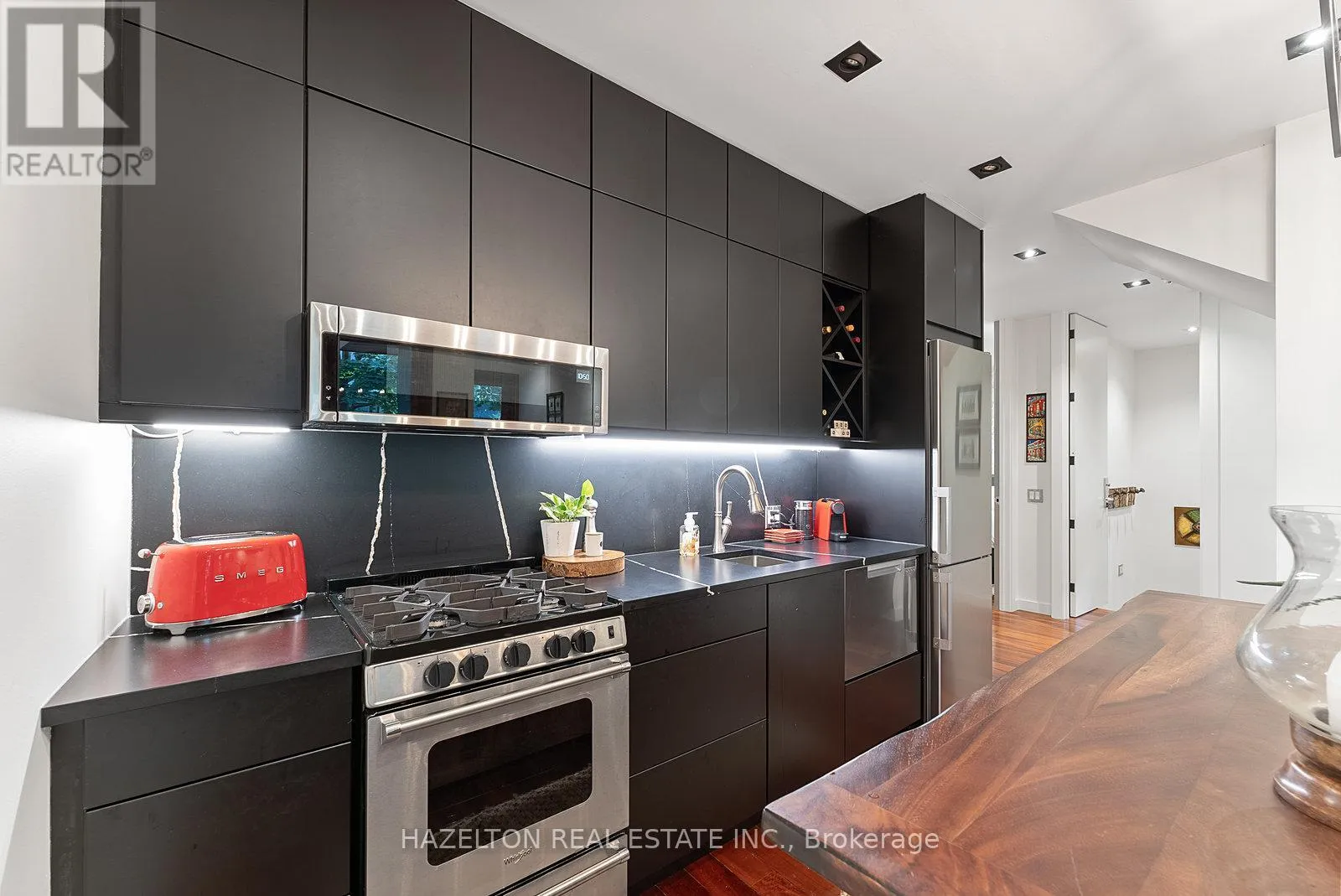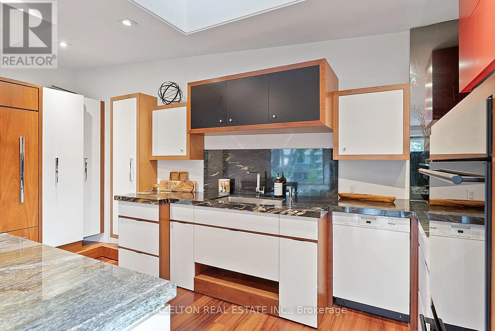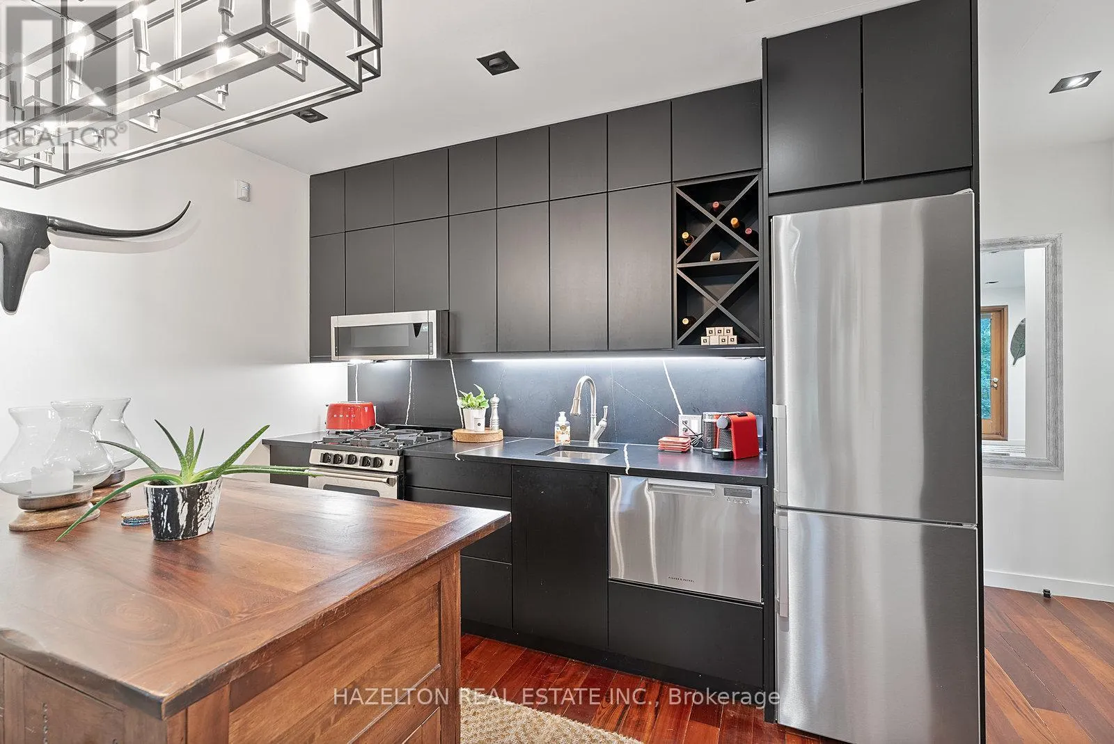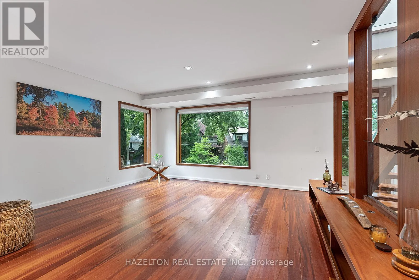 Cross Streets: Regal and Oakwood. ** Directions: Davenport to Regal. Located in Torontos sought-after Regal Heights neighbourhood, this duplex ( That can be converted into a single-family home) offers a modern sanctuary where architecture and nature meet in perfect harmony. Nestled among mature trees and framed by curated landscaping, it provides a private retreat unlike any other in the city. The exterior is finished with unique porcelain tile, while the balconies are enclosed by sleek glass railings, and the floors throughout are crafted from exotic tiger wood. Warm wood accents soften sleek contemporary lines, grounding the design in natural beauty .Each unit has its own unique character. The upper suite (primary suite) welcomes you with abundant natural light, floor-to-ceiling windows, and dual skylights. Its open-concept layout captures serene treetop views from every room. The primary suite is a tranquil retreat with spa-inspired finishes, six private walkouts, and an unfinished rooftop terrace awaiting your personal touch.The main-floor suite features 2 bedrooms, newly updated kitchen with brand-new appliances and a private balcony, perfect for enjoying morning coffee.The basement includes its own suite, offering even more flexibility with a separate entrance, kitchenette, high ceilings, and natural light, making it ideal as an in-law suite or a third income-generating unit. A turnkey property offering charm, flexibility, and prime location, it is ideal for multi-generational living or rental income with lasting value. Perfectly situated steps from cafés, restaurants, and shops, with easy access to the Annex, Corso Italia, Ossington, parks, schools, and community amenities. The sellers do not represent or warrant retrofit compliance with respect to the multiple residential units. (id:27476)