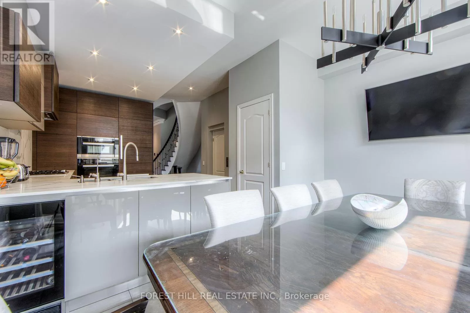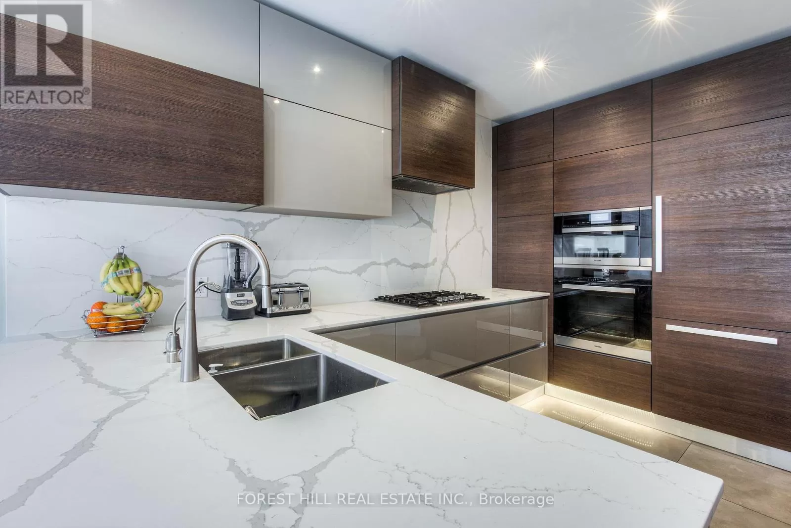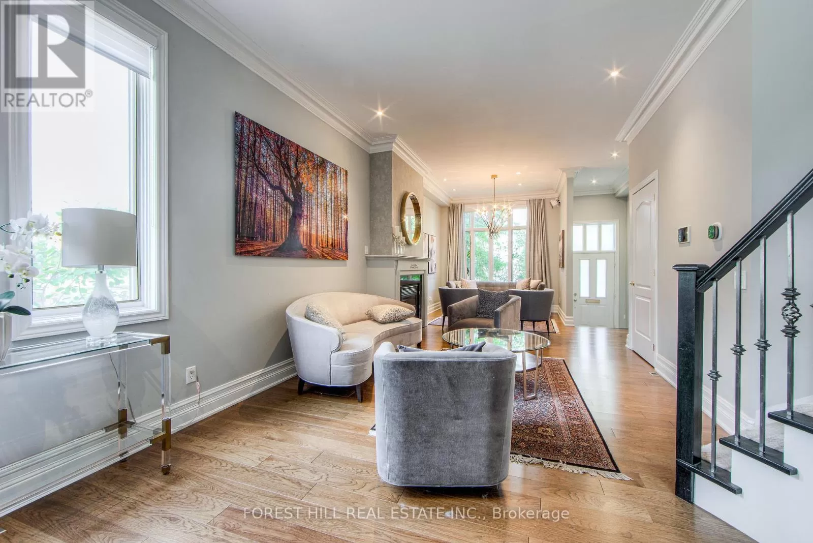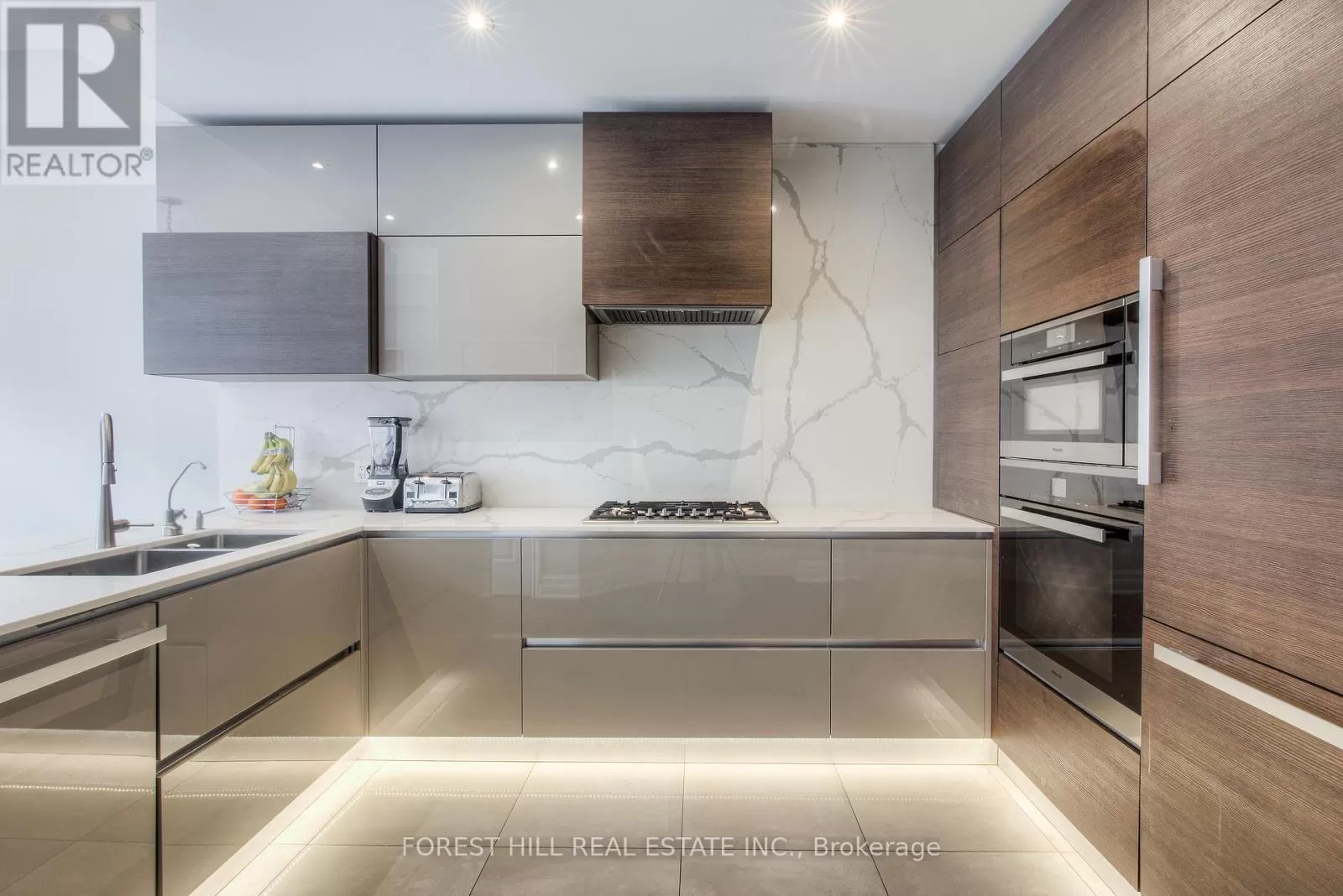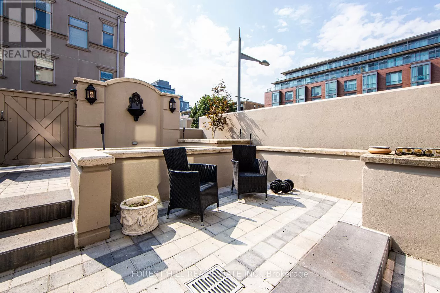 Avenue Rd/St.Clair END UNIT rarely available. This luxurious 4 level townhouse on the edge of Forest Hill, next to the Winston Churchill park in South Hill offers a sophisticated city living. The open concept living and dining room with 10 feet ceilings and crown mouldings is flooded with sunshine. The kitchen with built - in appliances has a walk-out to a private patio that is perfect for entertaining outdoors for a BBQ. The second floor features a luxurious primary bedroom with a dream ensuite, walk-in closet, and a private balcony. The third floor offers 2 large bedrooms each with an ensuite while the skylight above floods the entire home with natural light. The lower level includes a bedroom, a 3 piece washroom, lots of storage, walkout to the garage. This exquisite home features a private elevator (2025) accessing all four floors and includes 2 underground parking spots with direct entry. (id:27476)