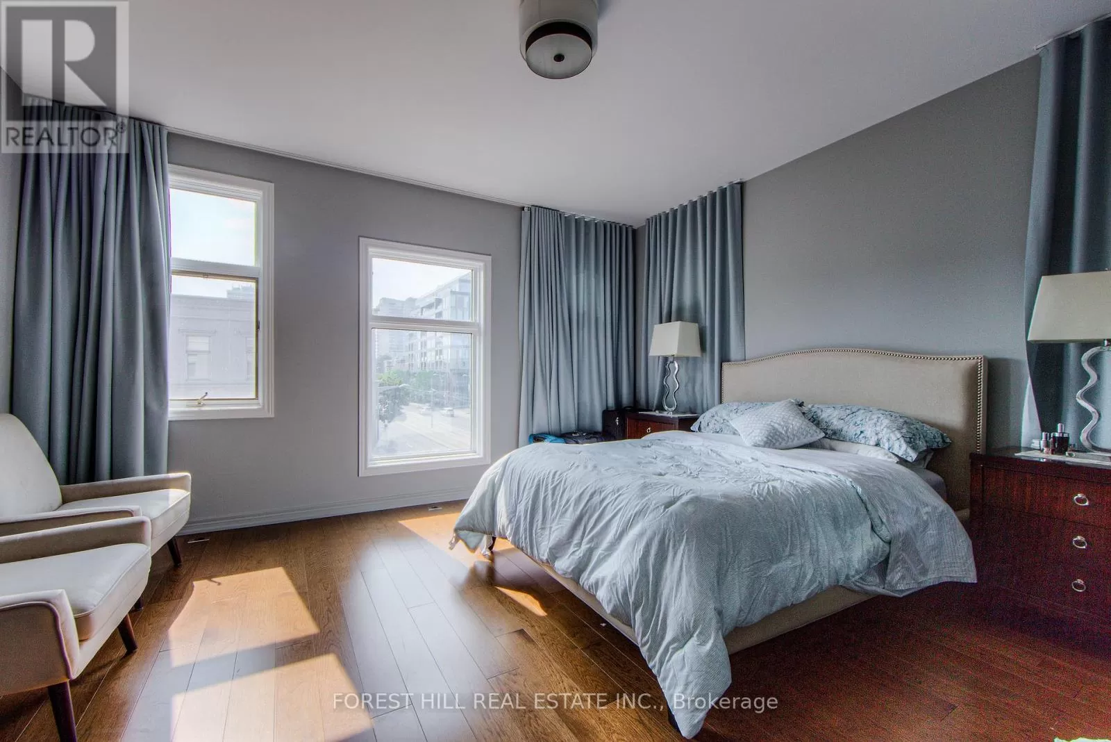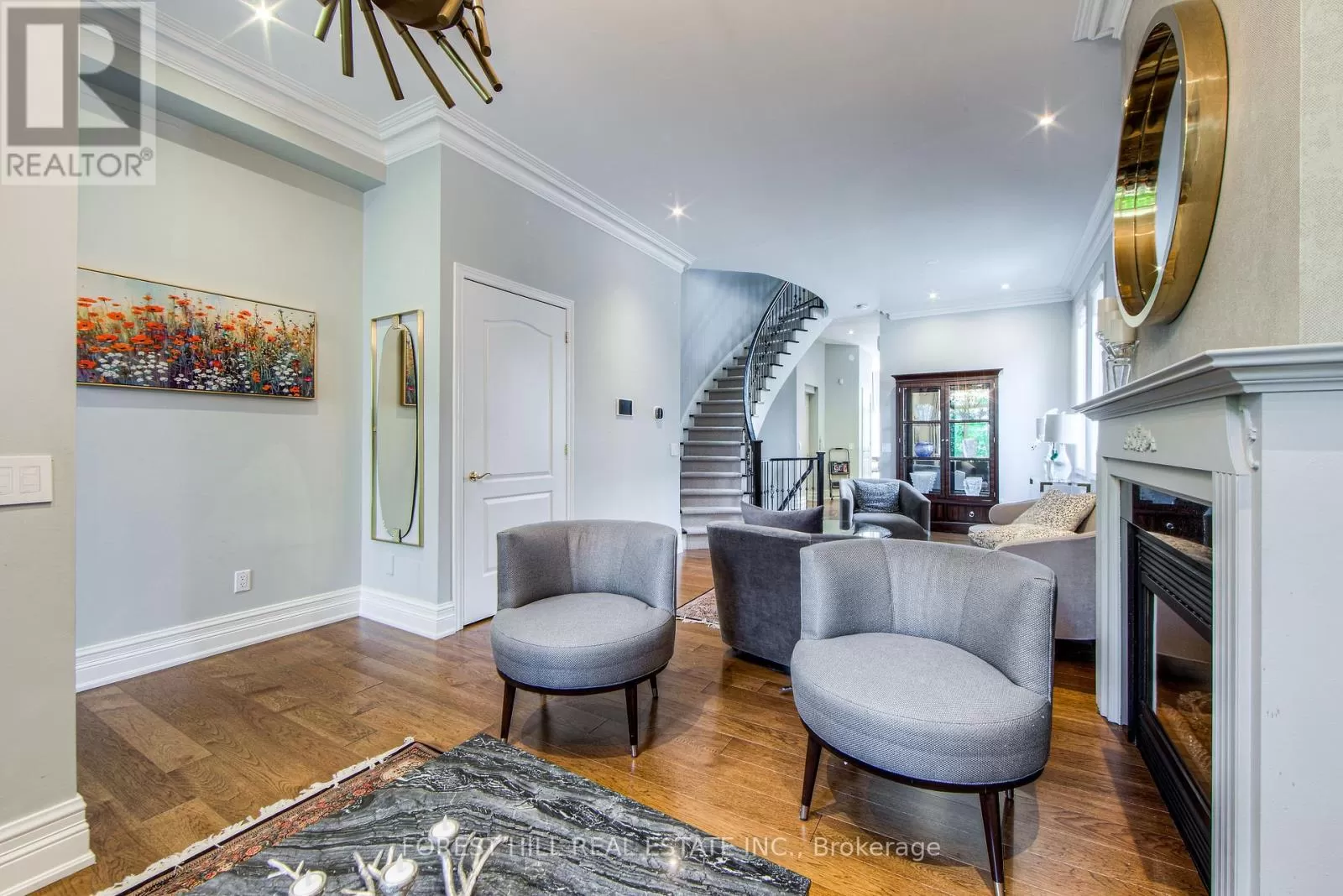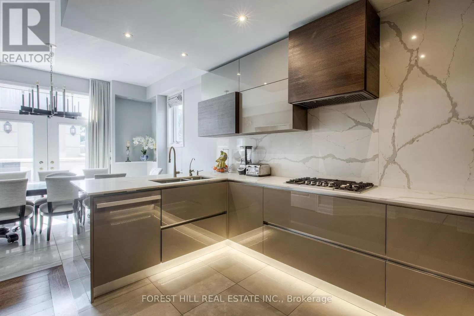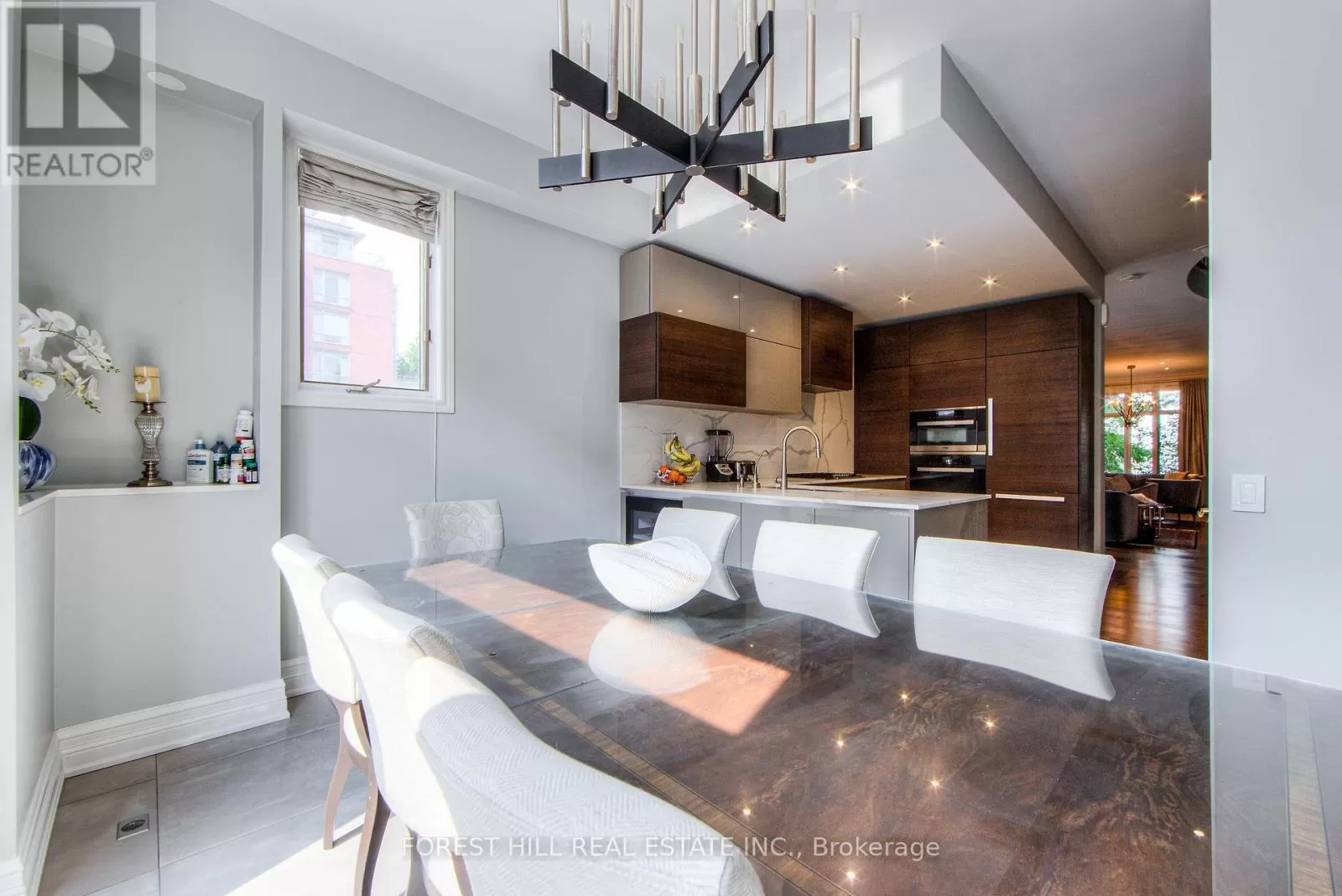 Avenue Rd/St.Clair END UNIT rarely available. This luxurious 4 level townhouse on the edge of Forest Hill, next to the Winston Churchill park in South Hill offers a sophisticated city living. The open concept living and dining room with 10 feet ceilings and crown mouldings is flooded with sunshine. The kitchen with built - in appliances has a walk-out to a private patio that is perfect for entertaining outdoors for a BBQ. The second floor features a luxurious primary bedroom with a dream ensuite, walk-in closet, and a private balcony. The third floor offers 2 large bedrooms each with an ensuite while the skylight above floods the entire home with natural light. The lower level includes a bedroom, a 3 piece washroom, lots of storage, walkout to the garage. This exquisite home features a private elevator (2025) accessing all four floors and includes 2 underground parking spots with direct entry. (id:27476)