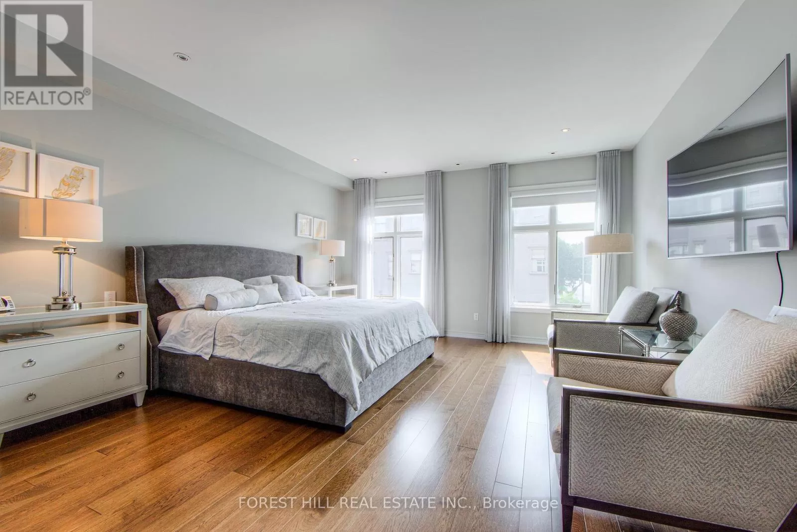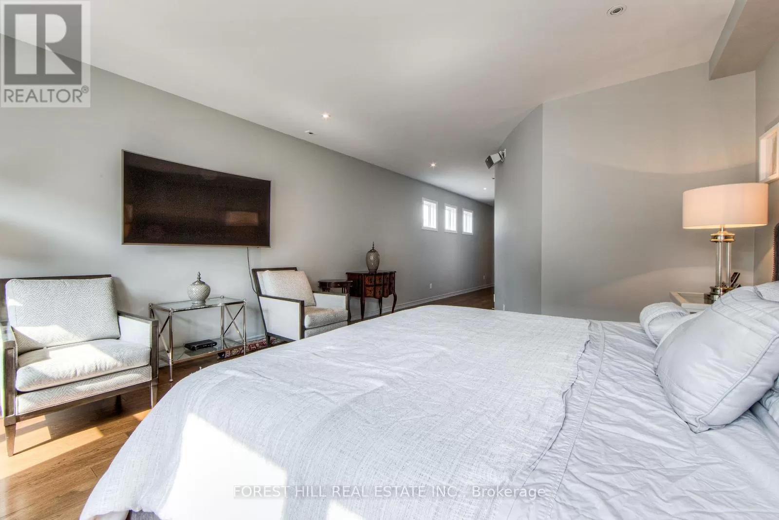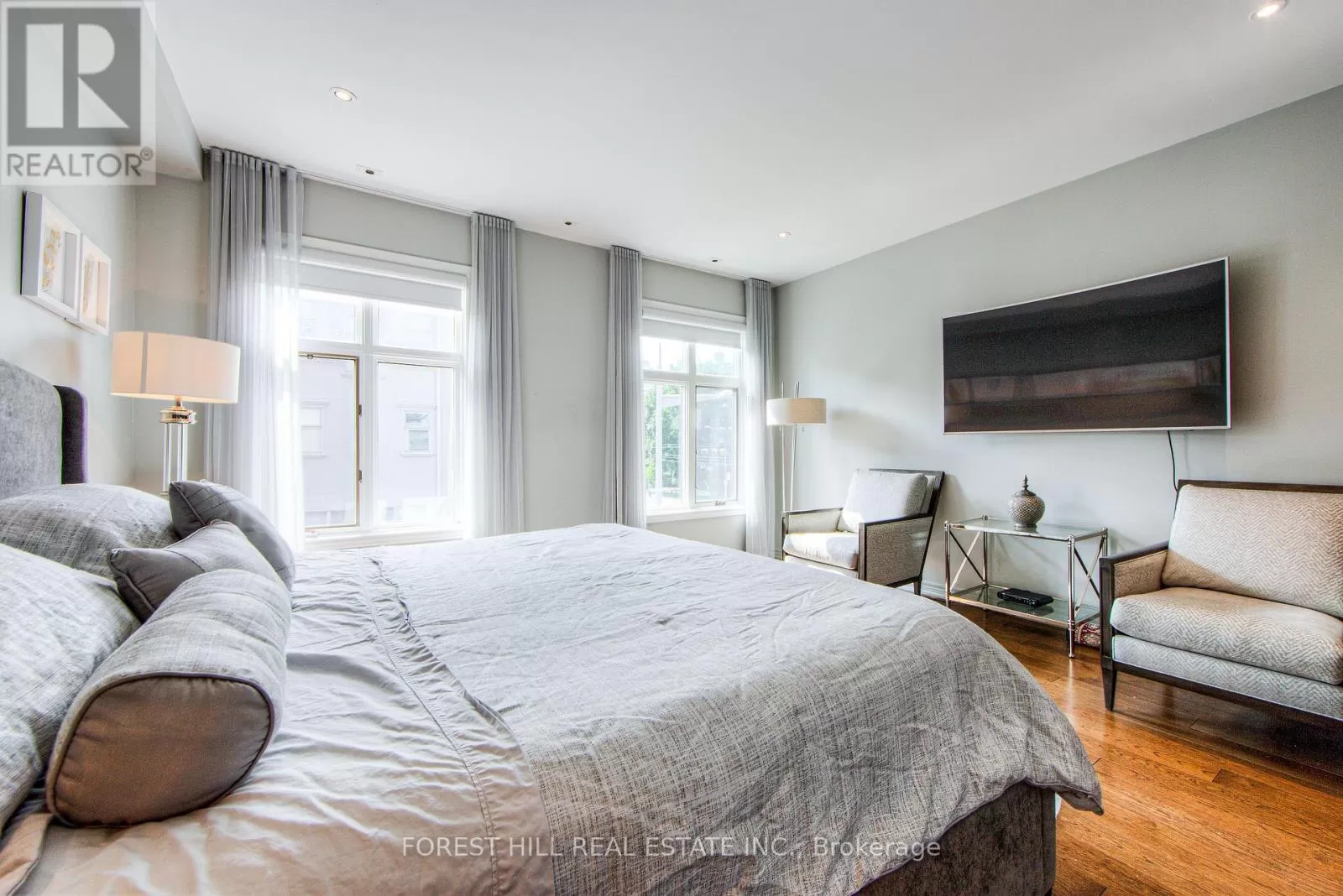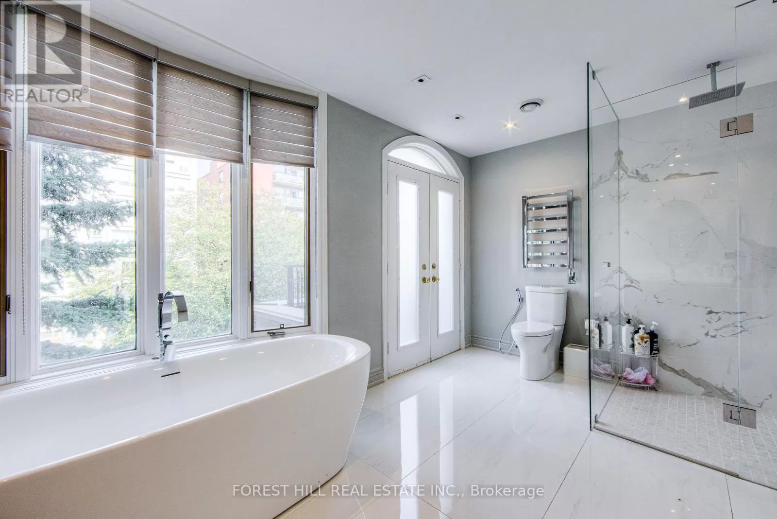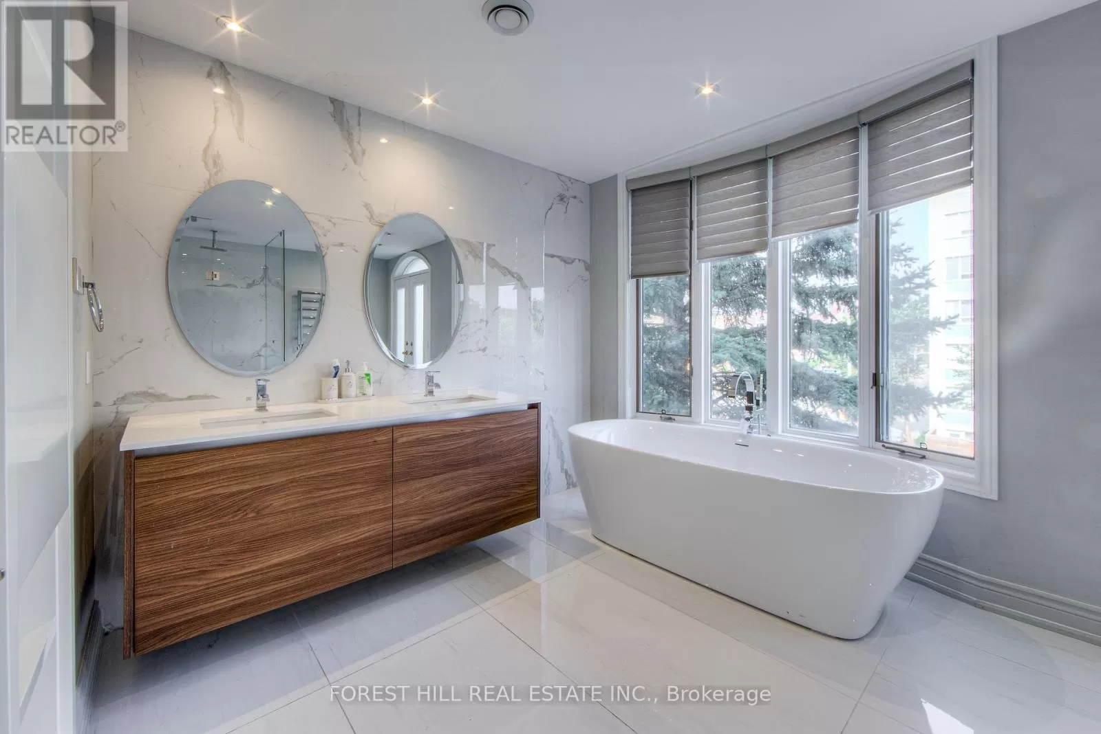 Avenue Rd/St.Clair END UNIT rarely available. This luxurious 4 level townhouse on the edge of Forest Hill, next to the Winston Churchill park in South Hill offers a sophisticated city living. The open concept living and dining room with 10 feet ceilings and crown mouldings is flooded with sunshine. The kitchen with built - in appliances has a walk-out to a private patio that is perfect for entertaining outdoors for a BBQ. The second floor features a luxurious primary bedroom with a dream ensuite, walk-in closet, and a private balcony. The third floor offers 2 large bedrooms each with an ensuite while the skylight above floods the entire home with natural light. The lower level includes a bedroom, a 3 piece washroom, lots of storage, walkout to the garage. This exquisite home features a private elevator (2025) accessing all four floors and includes 2 underground parking spots with direct entry. (id:27476)
