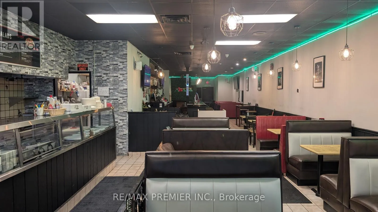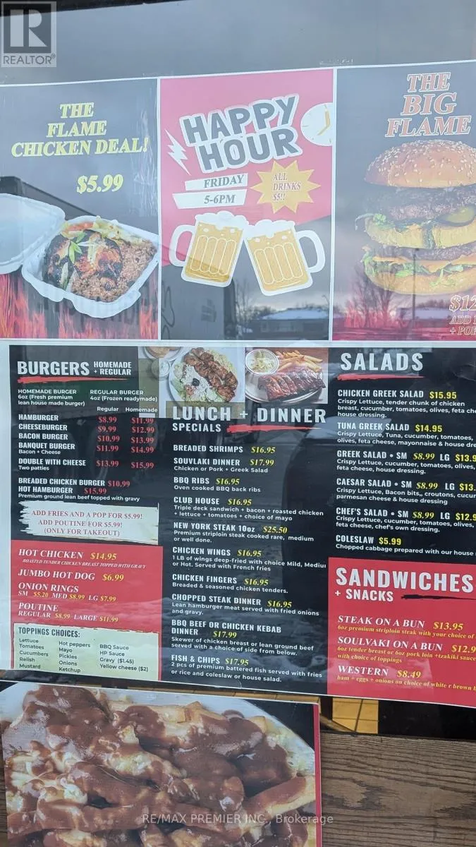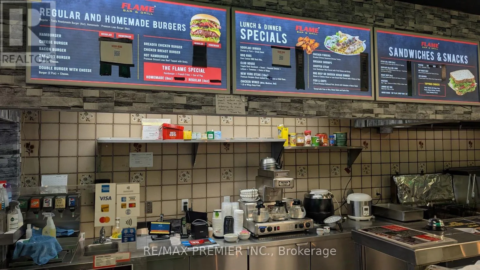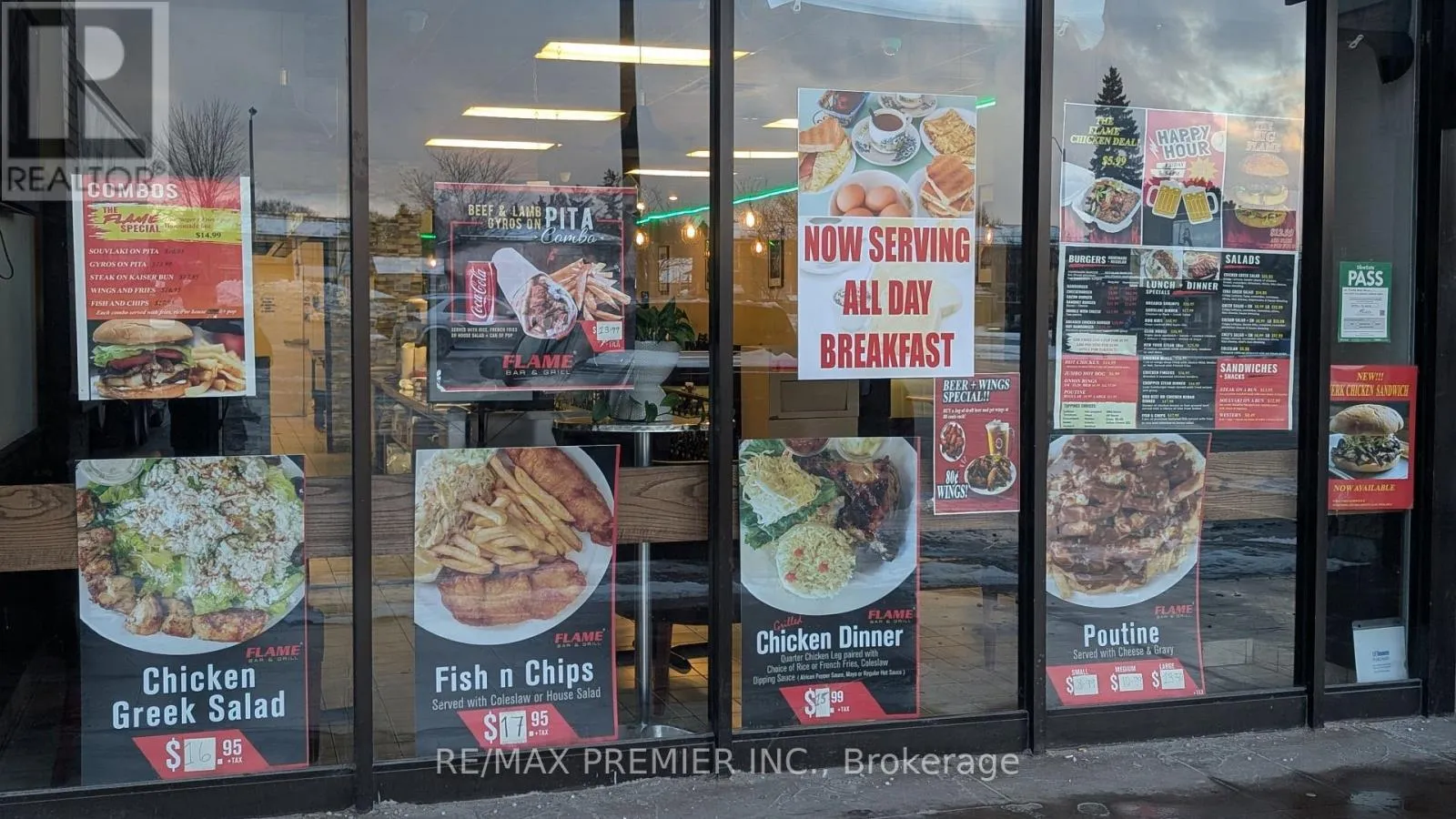KEELE ST/LAWRENCE AVE Substantial sales recorded in 6 digits in 2024. LLBO licenced for 112+90 seats, 4+5 years lease term. Popular type of Canadian food offerings (see pictures)+Carribean style Specials by the Owner. YES, you can change selection. YES, you can extend open hours. YES, You are the Boss! YES, Owner will coach! NOT a franchise. Almost 30 years established. Flame Bar and Grill at a busy intersection of Keele and Lawrence offers it all! Large interior floor size, ample storage space, large plaza location with major anchor tenants such as LCBO, Tim Hortons, Metro, Walmart, Dollarama, Penguin Pick-up, etc. Enormous amount of customers daily, walk-ins, drive by's and huge exposure for your business. Large Condo Development posted start day here soon. All chattels owned and included, many improvements to the business completed, 10k in security cameras installed, additional large tvs for sports events, large clientele base. Opportunity for further growth, and to diversify your food offerings. Good working hours. Seperate streams of income with quick-service and full sit down eat in areas, separate liquor bar/lounge area for your evening parties, events and entertainment. Approx 2460 sqft of main floor area, plus fully finished lower floor area. If you are in the market, sure you have seen places, but not many worth the attention. This one must be seen to appreciate the current and further potential! Seller is willing to offer training to a new owner. Transferable liquor license.**EXTRAS** All equipment is owned except 2 pos terminals, operating name is included, turn key operations. Owner is retiring. See it now! (id:27476)