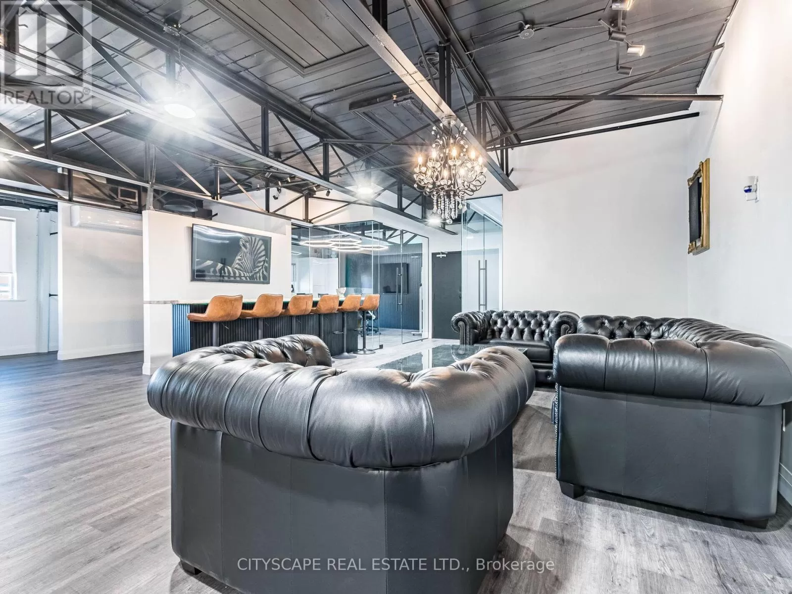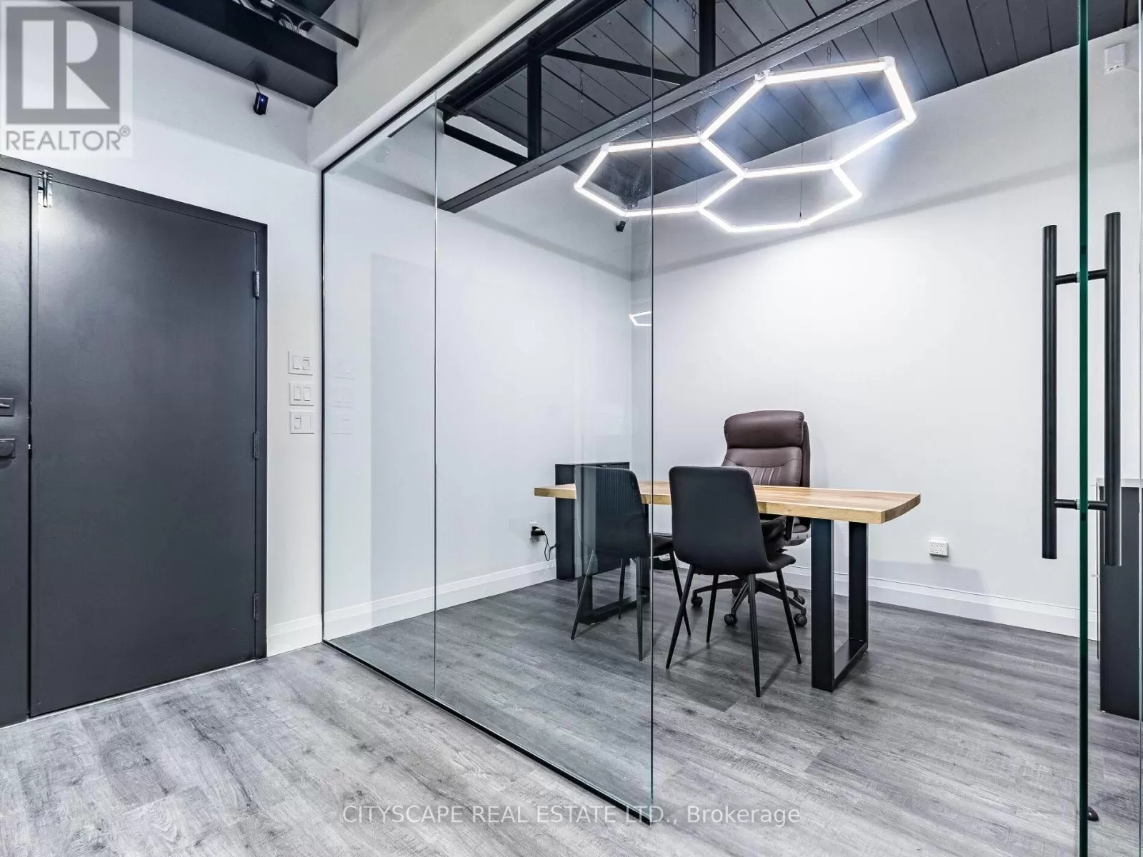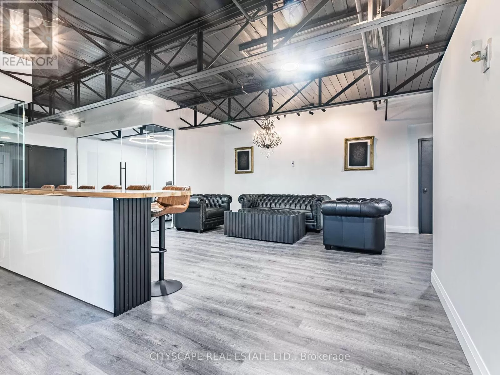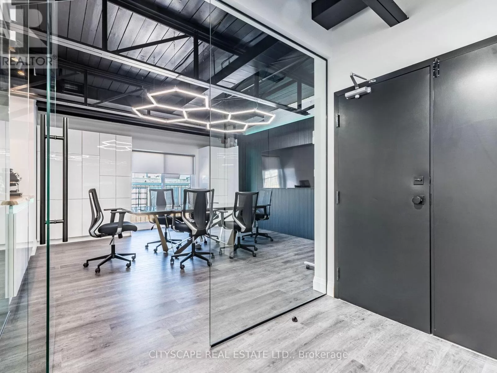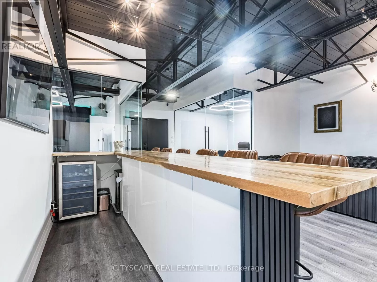 427 / Evans Located in prime South Etobicoke, this newly renovated 1,306 sq. ft. office space offers a modern and highly functional layout, ideal for businesses seeking a move-in-ready workspace. Over $120,000 in renovations and $50,000+ in high-quality furnishings have gone into transforming this space into a turnkey professional environment. The layout features a glass-walled executive boardroom with a built-in kitchenette, a separate glass-walled office, a spacious open-concept area, two change rooms or closets, a bar ledge with seating, and a comfortable lounge area with couches. With high ceilings, an abundance of natural light, and freight elevator access, the space is bright, open, and welcoming. Its thoughtfully designed layout maximizes usability, making it suitable for a wide range of professional needs. Additional features include signage availability above with highway frontage, on-site parking, and 24/7 access, offering visibility, convenience, and flexibility for tenants. Previously used for consulting and suit alterations, the space is ideally suited for creative industries, consulting firms, fashion studios, and more. Available fully furnished for $6,000/month + HST (all-inclusive, as-is). Flexible tenancy options available. (id:27476)