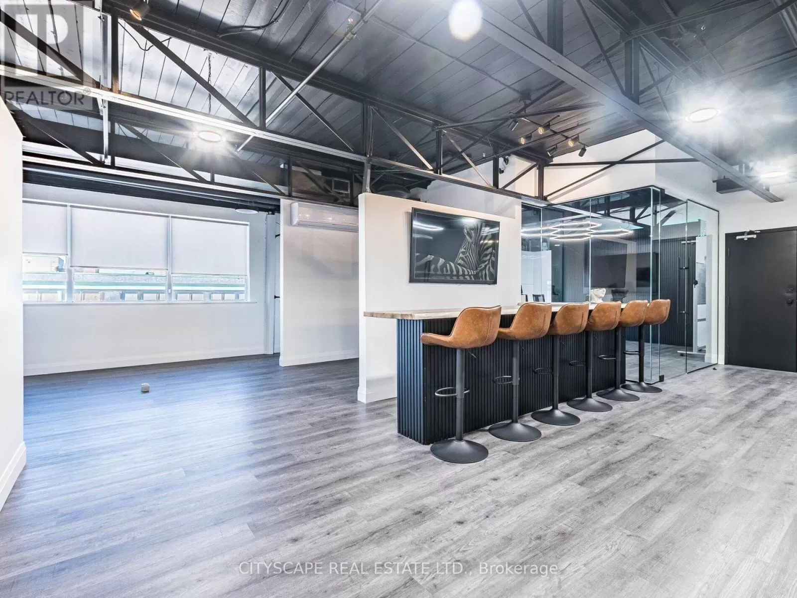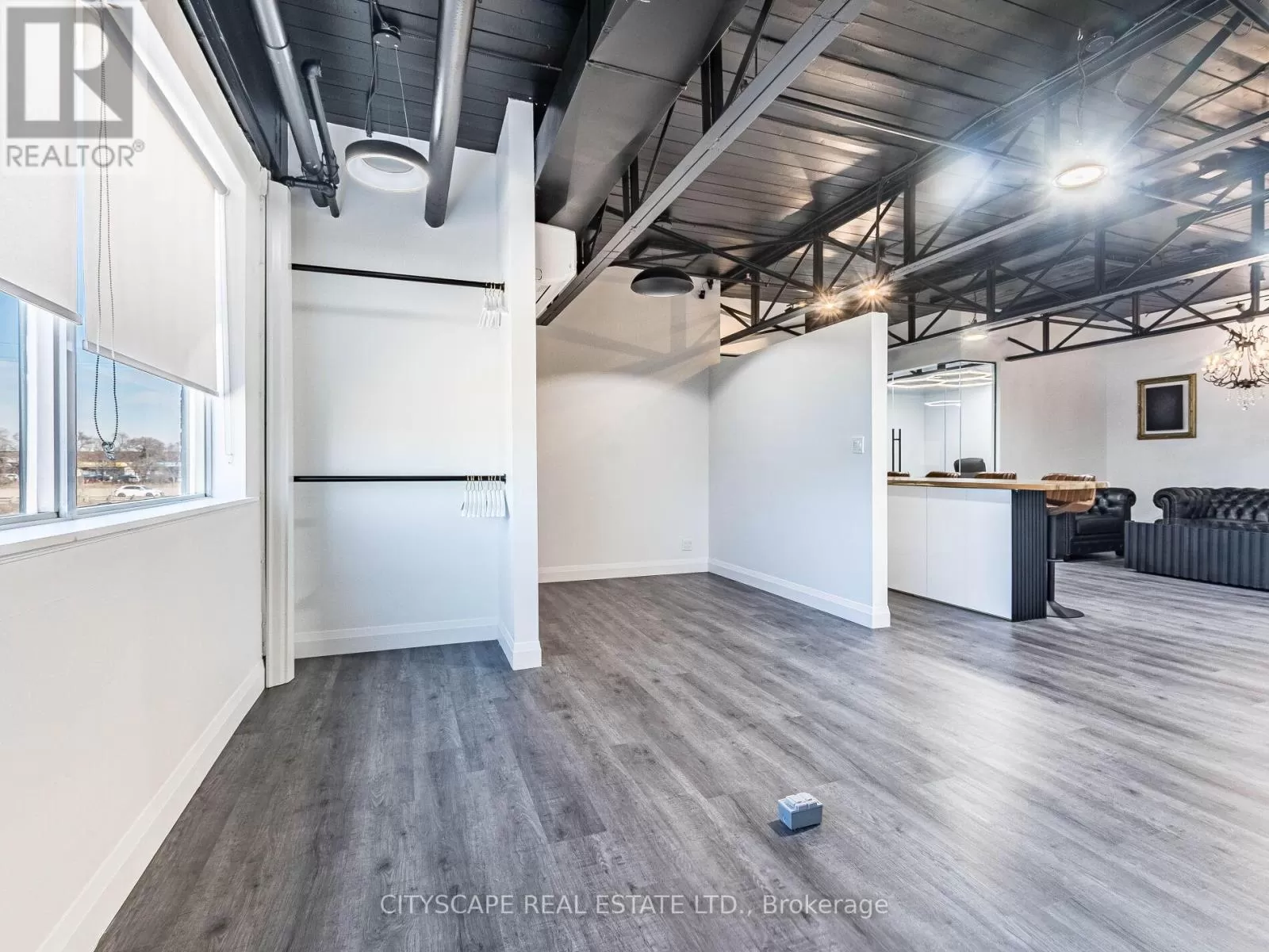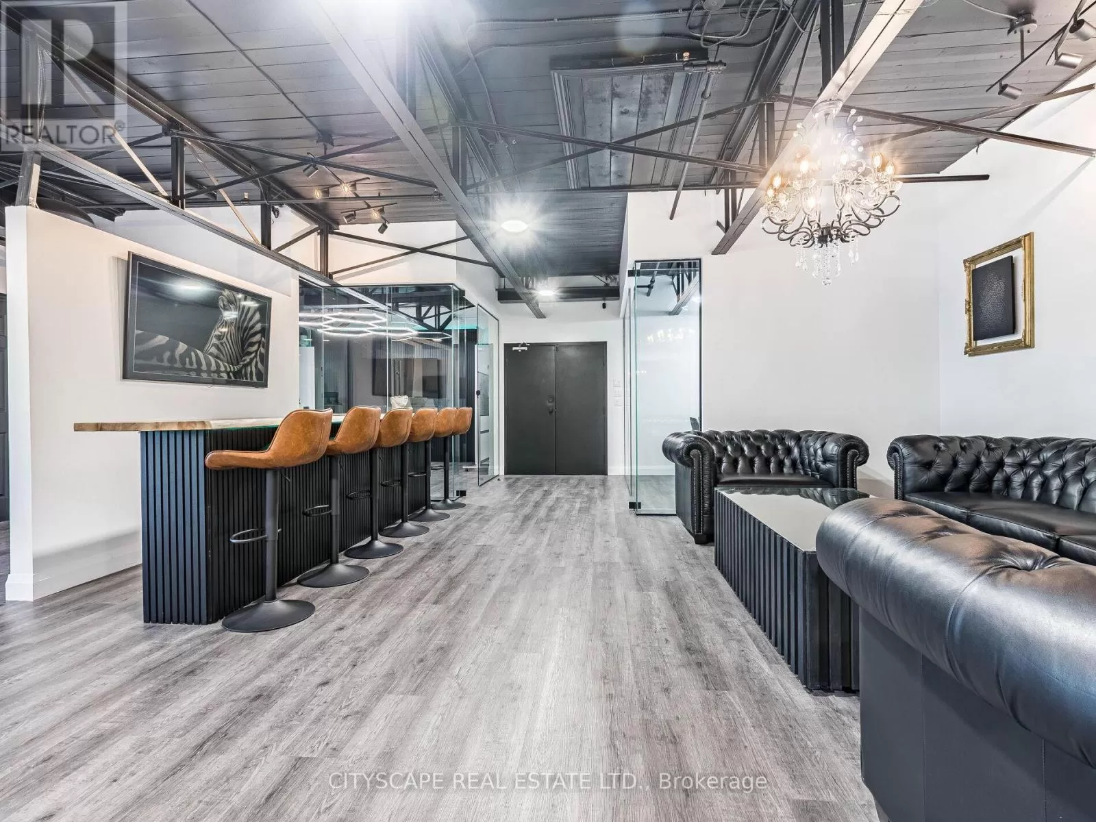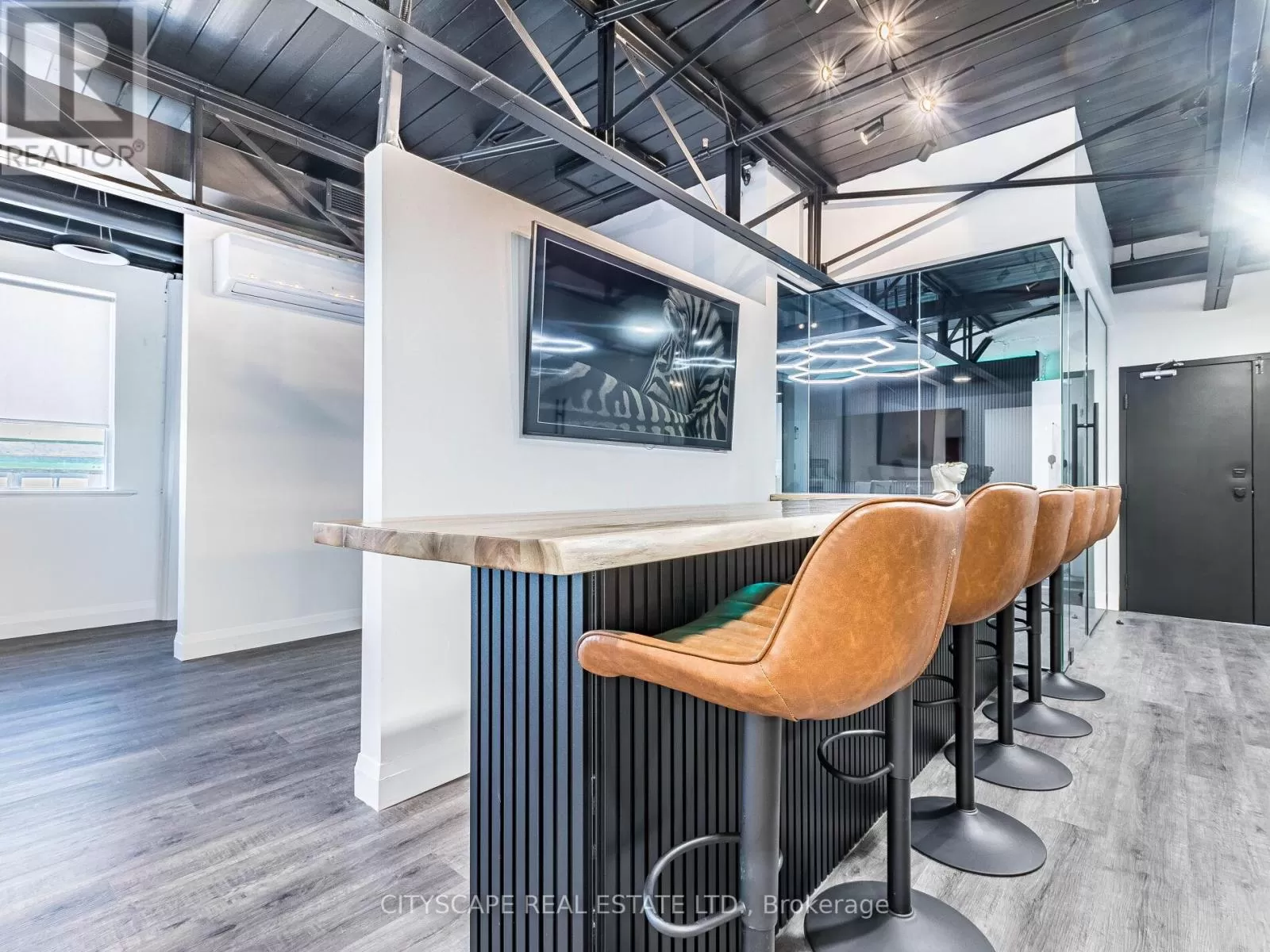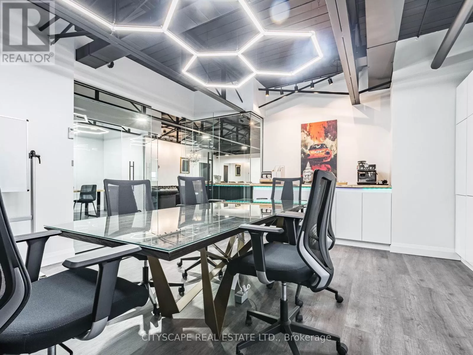 427 / Evans Located in prime South Etobicoke, this newly renovated 1,306 sq. ft. office space offers a modern and highly functional layout, ideal for businesses seeking a move-in-ready workspace. Over $120,000 in renovations and $50,000+ in high-quality furnishings have gone into transforming this space into a turnkey professional environment. The layout features a glass-walled executive boardroom with a built-in kitchenette, a separate glass-walled office, a spacious open-concept area, two change rooms or closets, a bar ledge with seating, and a comfortable lounge area with couches. With high ceilings, an abundance of natural light, and freight elevator access, the space is bright, open, and welcoming. Its thoughtfully designed layout maximizes usability, making it suitable for a wide range of professional needs. Additional features include signage availability above with highway frontage, on-site parking, and 24/7 access, offering visibility, convenience, and flexibility for tenants. Previously used for consulting and suit alterations, the space is ideally suited for creative industries, consulting firms, fashion studios, and more. Available fully furnished for $6,000/month + HST (all-inclusive, as-is). Flexible tenancy options available. (id:27476)