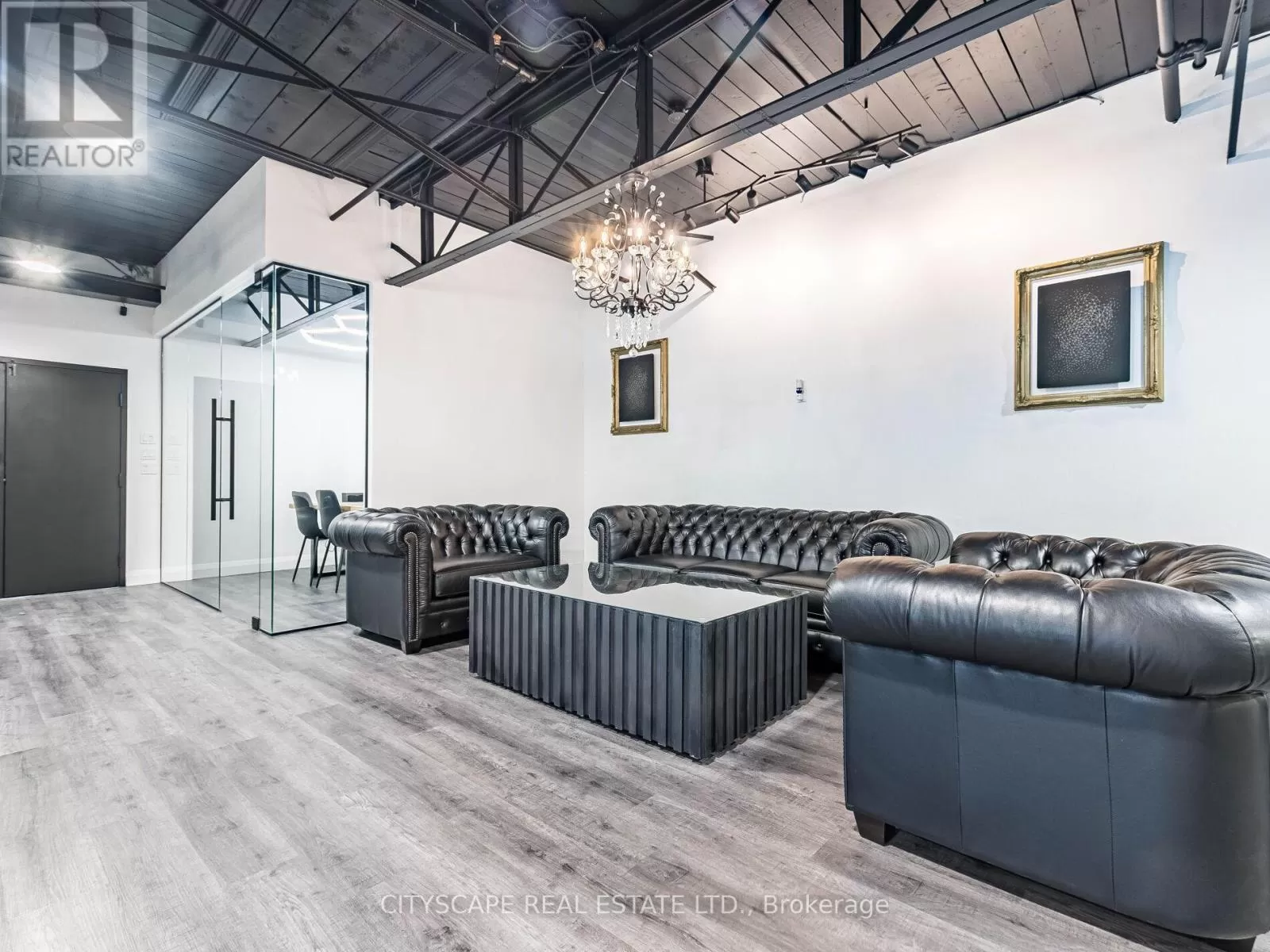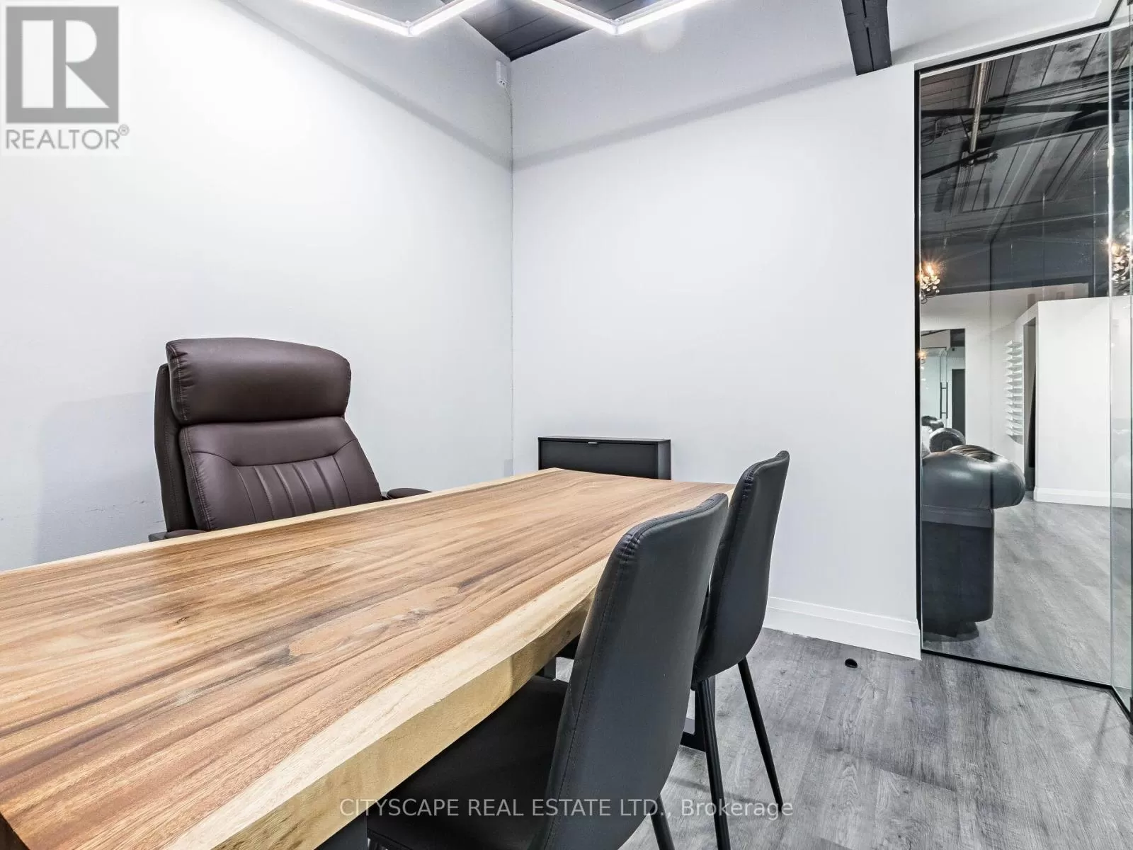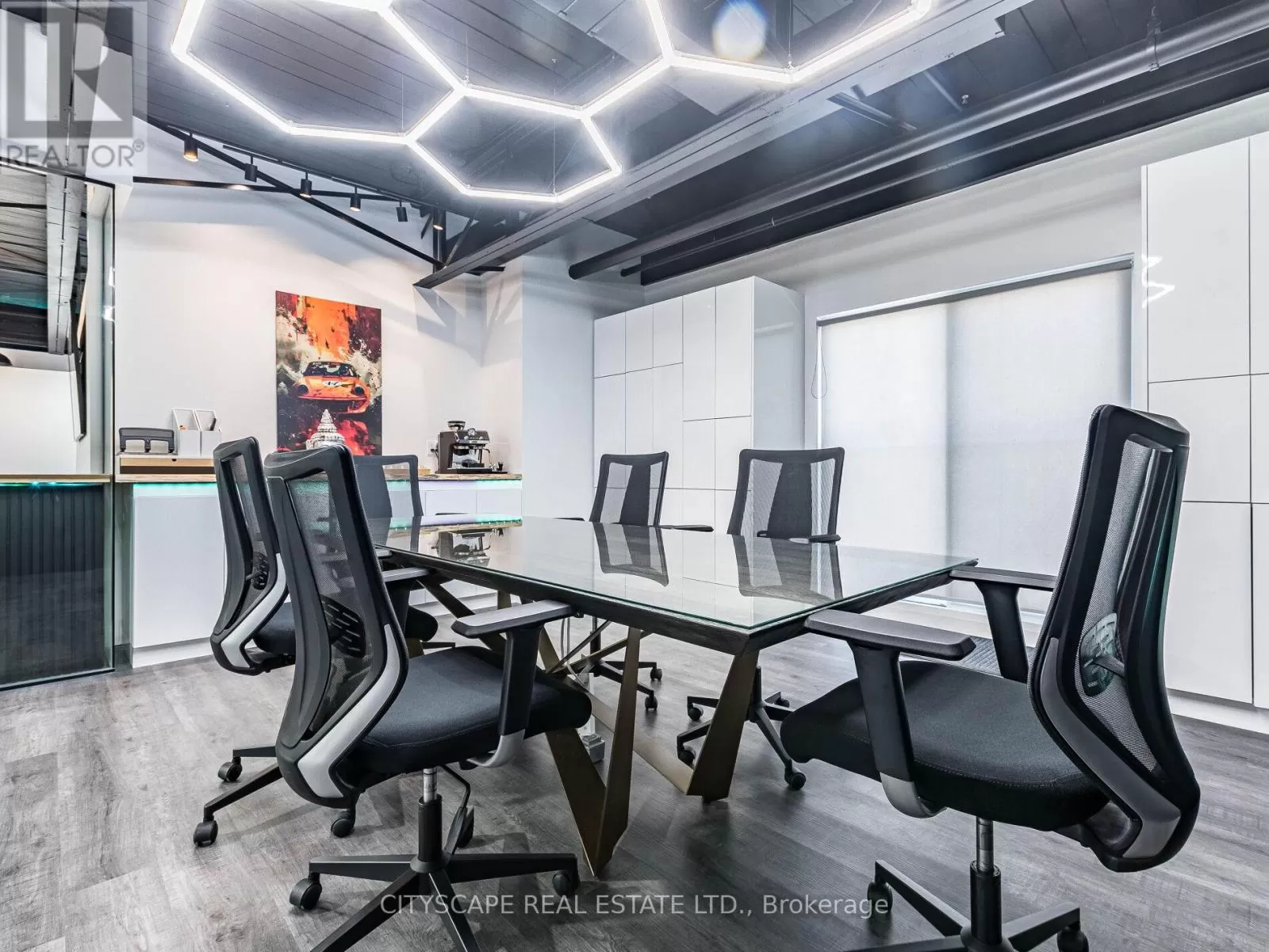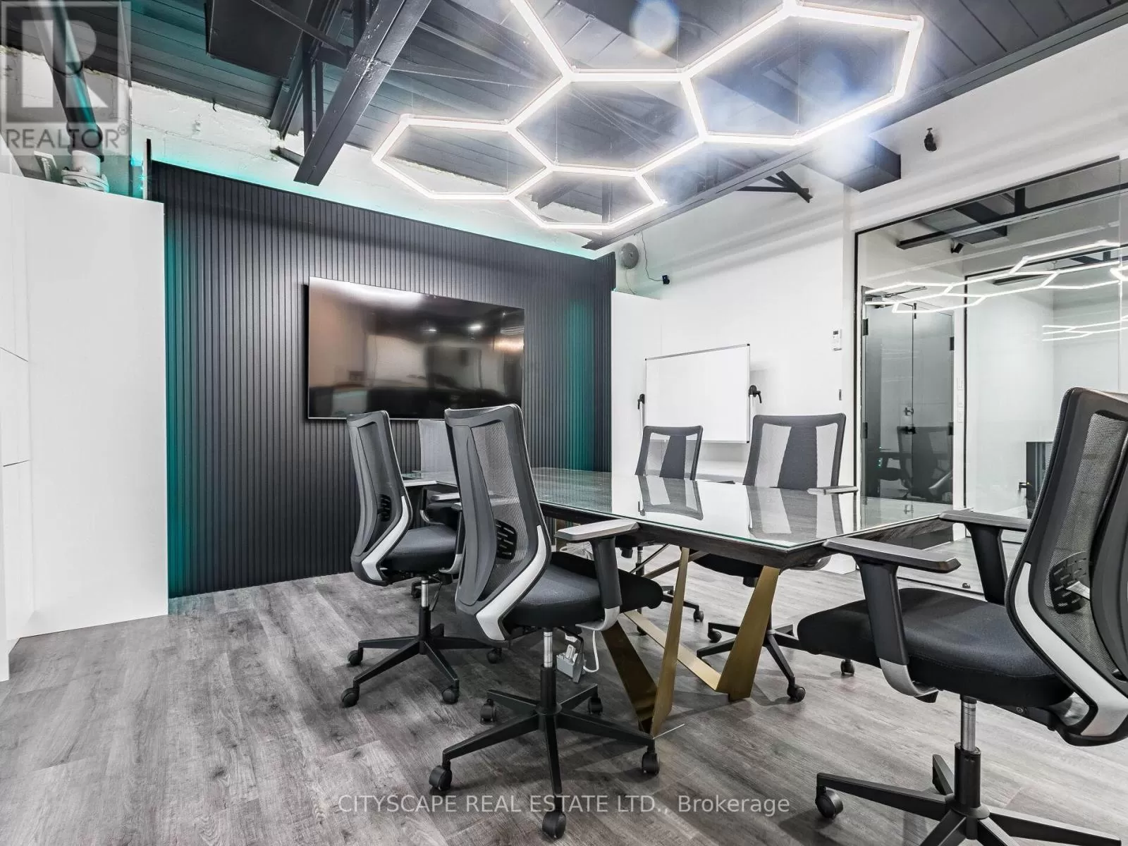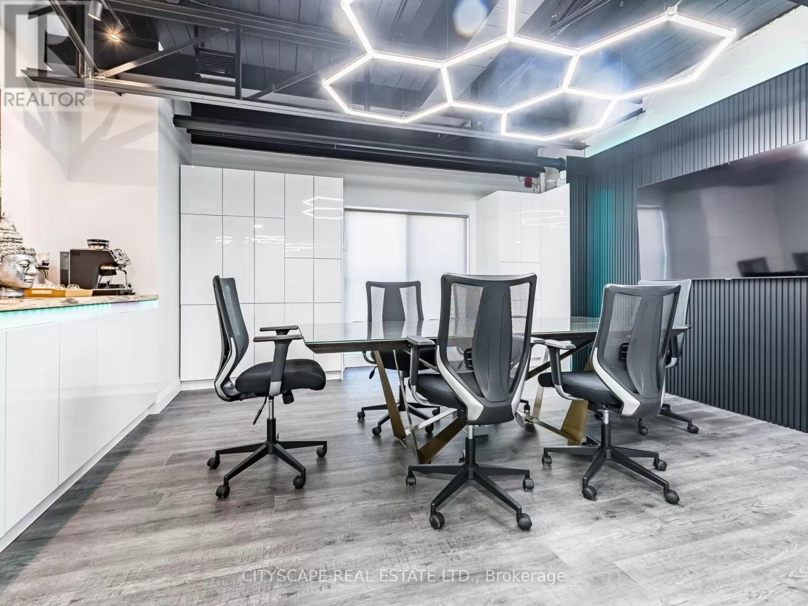 427 / Evans Located in prime South Etobicoke, this newly renovated 1,306 sq. ft. office space offers a modern and highly functional layout, ideal for businesses seeking a move-in-ready workspace. Over $120,000 in renovations and $50,000+ in high-quality furnishings have gone into transforming this space into a turnkey professional environment. The layout features a glass-walled executive boardroom with a built-in kitchenette, a separate glass-walled office, a spacious open-concept area, two change rooms or closets, a bar ledge with seating, and a comfortable lounge area with couches. With high ceilings, an abundance of natural light, and freight elevator access, the space is bright, open, and welcoming. Its thoughtfully designed layout maximizes usability, making it suitable for a wide range of professional needs. Additional features include signage availability above with highway frontage, on-site parking, and 24/7 access, offering visibility, convenience, and flexibility for tenants. Previously used for consulting and suit alterations, the space is ideally suited for creative industries, consulting firms, fashion studios, and more. Available fully furnished for $6,000/month + HST (all-inclusive, as-is). Flexible tenancy options available. (id:27476)