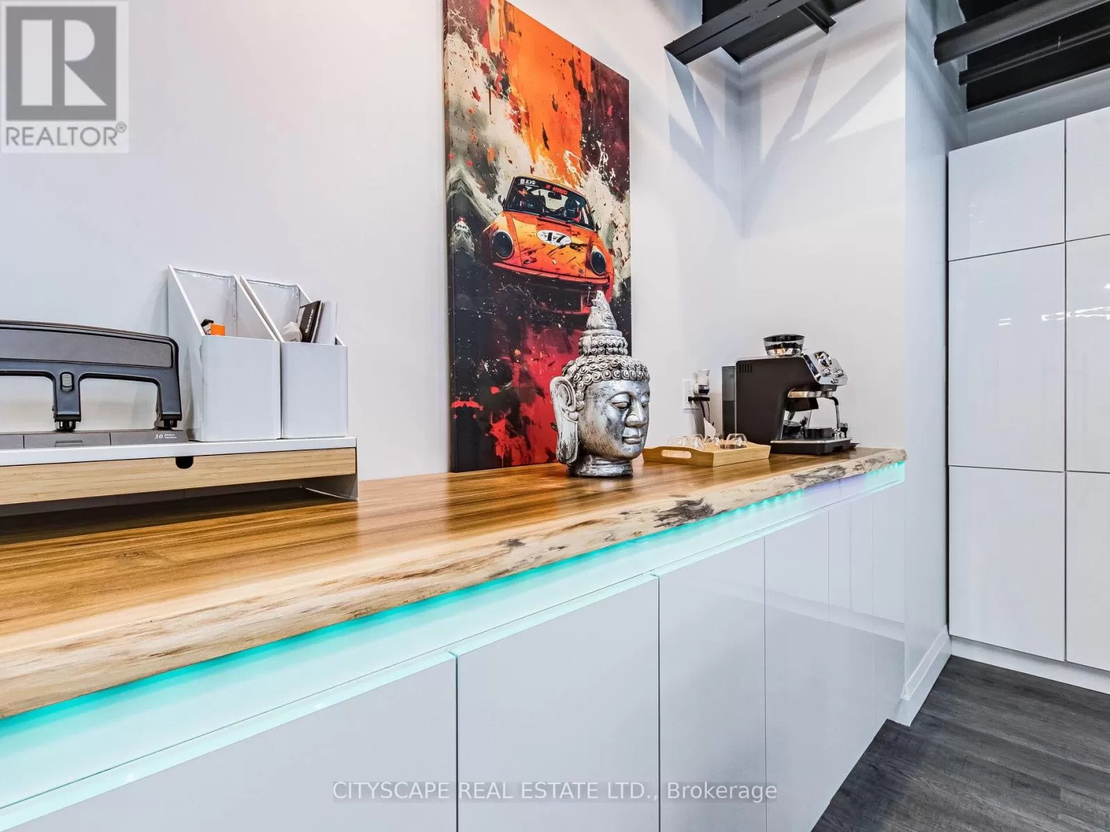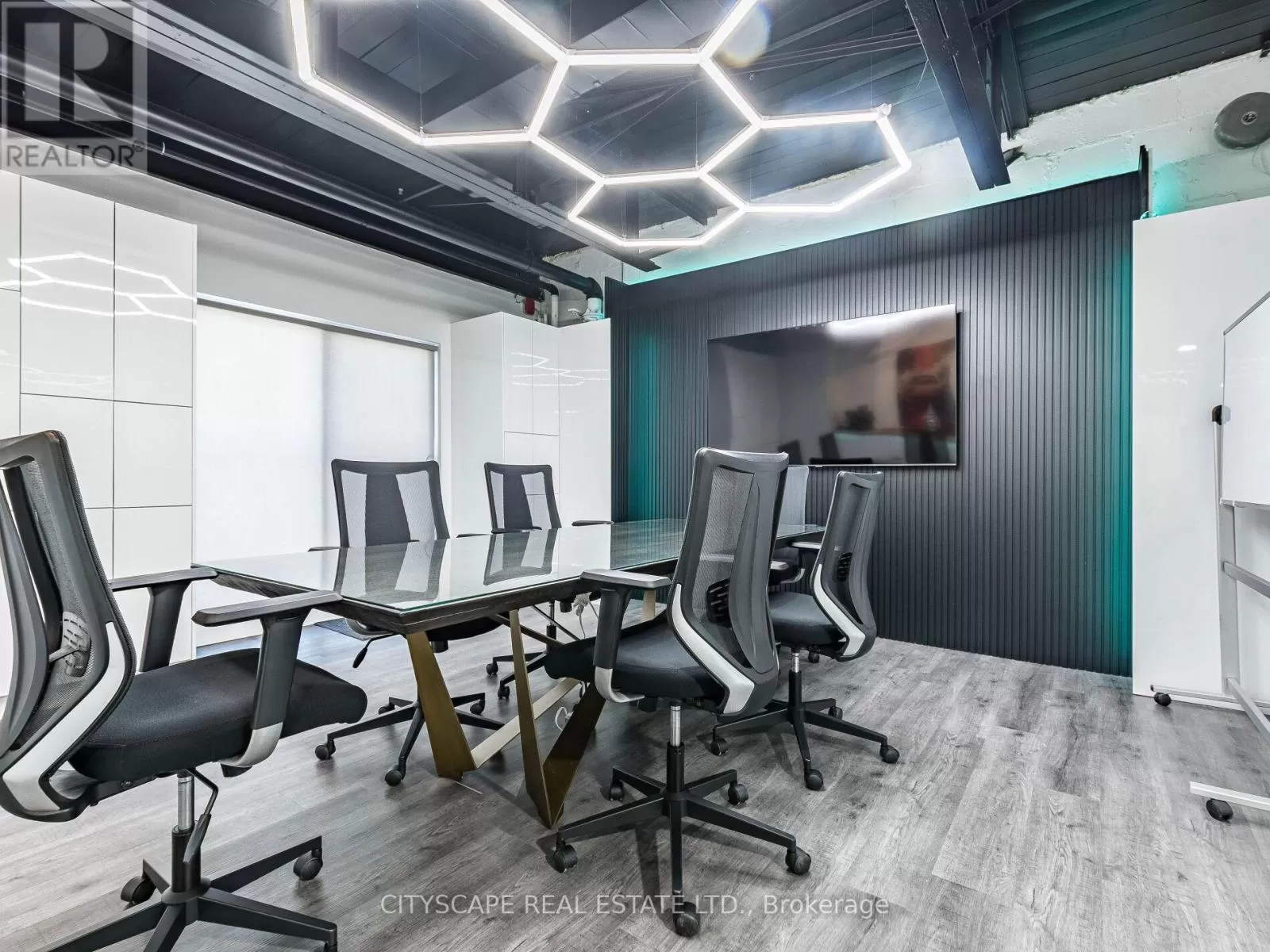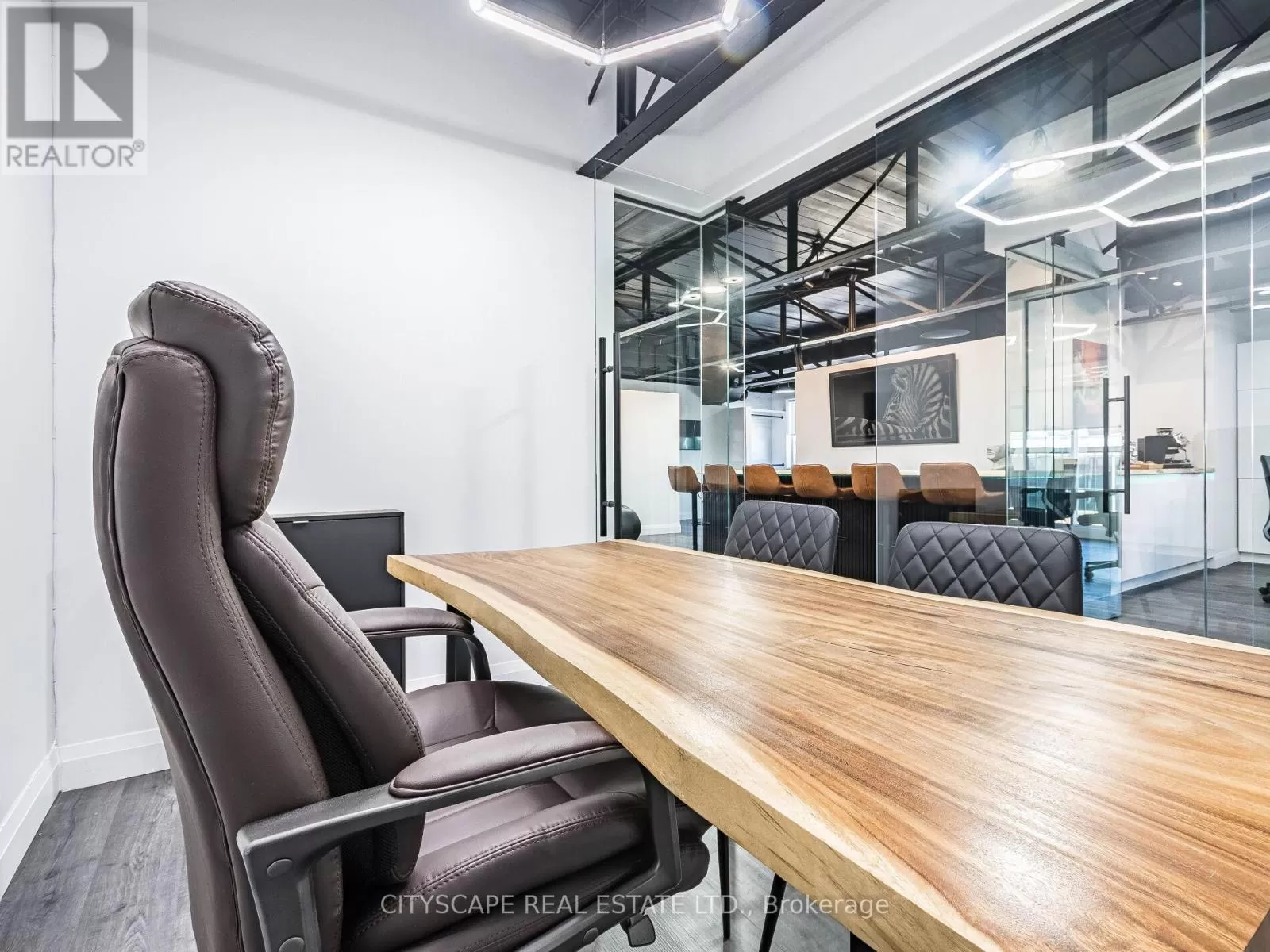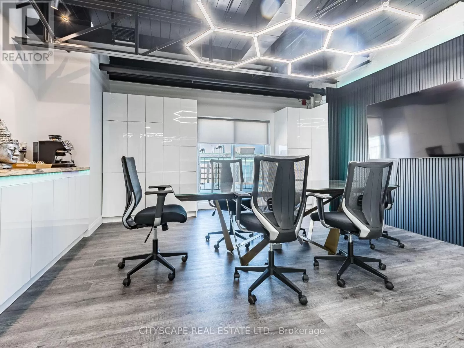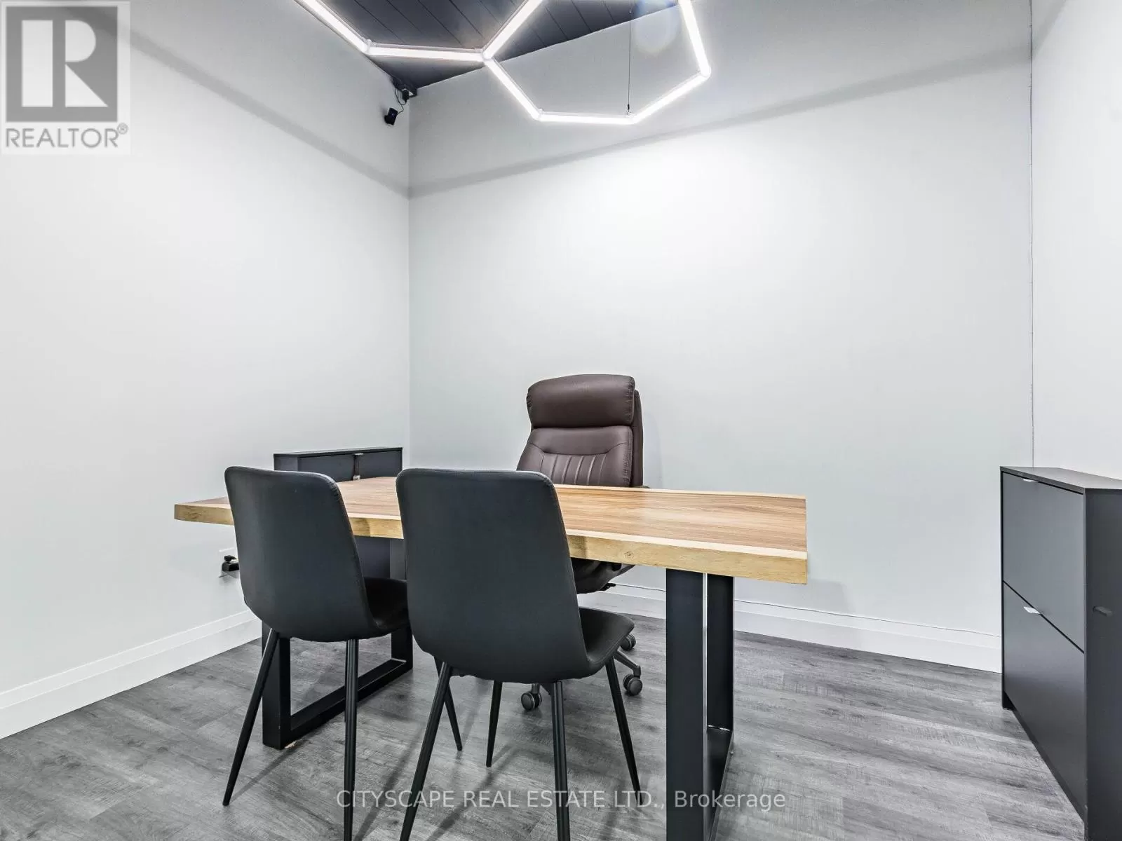 427 / Evans Located in prime South Etobicoke, this newly renovated 1,306 sq. ft. office space offers a modern and highly functional layout, ideal for businesses seeking a move-in-ready workspace. Over $120,000 in renovations and $50,000+ in high-quality furnishings have gone into transforming this space into a turnkey professional environment. The layout features a glass-walled executive boardroom with a built-in kitchenette, a separate glass-walled office, a spacious open-concept area, two change rooms or closets, a bar ledge with seating, and a comfortable lounge area with couches. With high ceilings, an abundance of natural light, and freight elevator access, the space is bright, open, and welcoming. Its thoughtfully designed layout maximizes usability, making it suitable for a wide range of professional needs. Additional features include signage availability above with highway frontage, on-site parking, and 24/7 access, offering visibility, convenience, and flexibility for tenants. Previously used for consulting and suit alterations, the space is ideally suited for creative industries, consulting firms, fashion studios, and more. Available fully furnished for $6,000/month + HST (all-inclusive, as-is). Flexible tenancy options available. (id:27476)