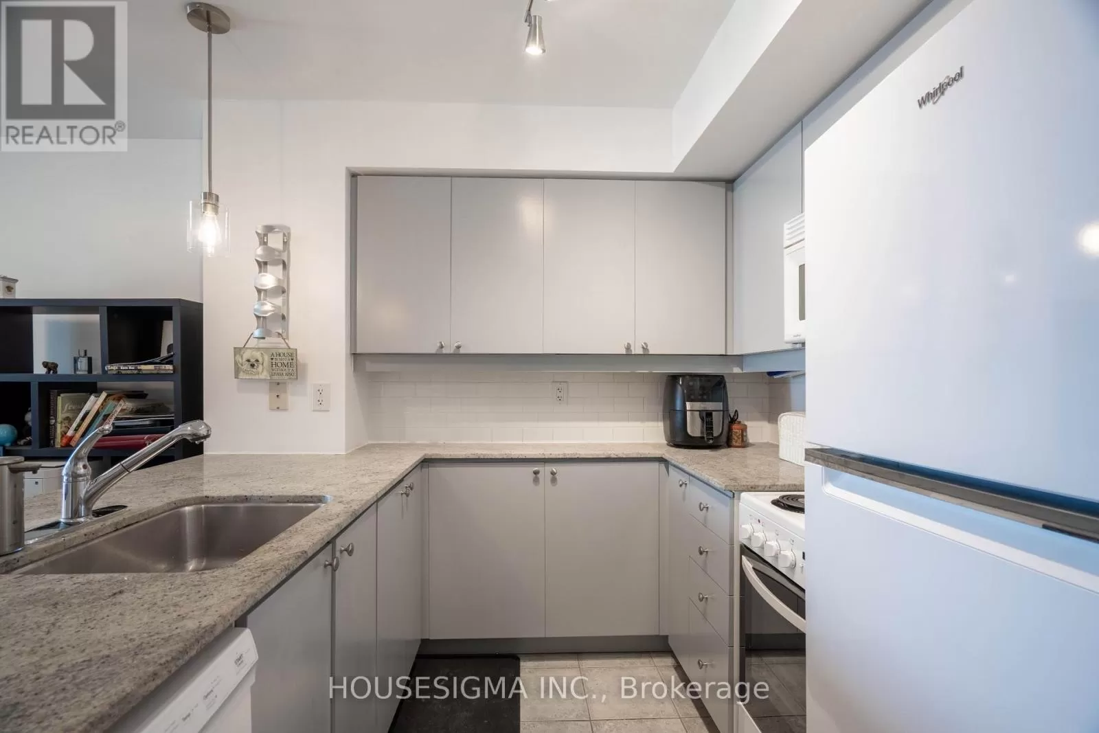 KING & STRACHAN If you've been waiting for a unit at Battery Park condos, here's your chance to scoop up this nicely laid out 1 bedroom unit! This thoughtfully designed unit features a clear southwest facing view, an open-concept layout with smooth ceilings, laminate flooring throughout, that creates a warm and inviting atmosphere. The kitchen is finished with granite countertops, offering both style and functionality perfect for entertaining and prepping meals.Enjoy plenty of natural light and a walk-out to a large balcony, perfect for enjoying the Liberty Village skyline. The layout of this unit is efficient and functional, ideal for first-time buyers, investors, or anyone looking to live in one of Torontos most vibrant neighbourhoods.You will love living in a vibrant area that offers a dynamic lifestyle with popular cafes, shops, restaurants, and easy access to transit, all just steps away.Pop in, pop and offer and pop champagne to celebrate your new place! (id:27476)