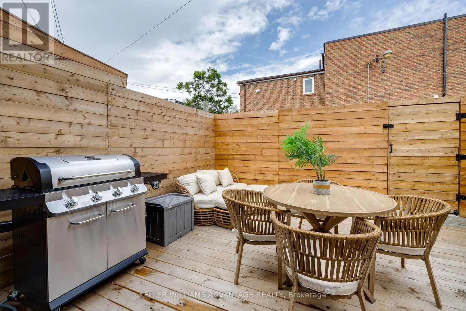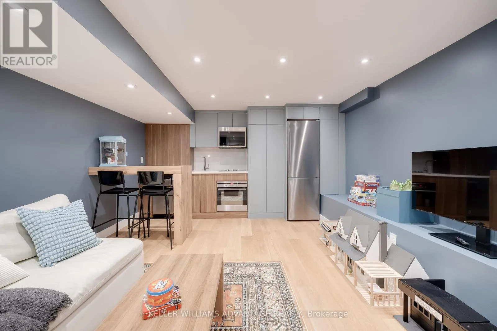 Cross Streets: Ossington & Queen St W. ** Directions: Just off Ossington. Welcome to the Mystic Cottage, situated on one of the most sought-after streets in Toronto's Trinity Bellwoods! Located just a short walking distance from shops, parks, and restaurants on Ossington and Queen West, we're ideally situated with quick access to posh stores, top-notch restaurants, and the busy intersections of King, Queen, and Dundas Streets. Totally renovated in 2022, this fully furnished home combines the charm of a Victorian townhouse with modern, high end finishes and features. The open concept main floor has a living area, dining area and fully-stocked kitchen, with a powder room near the front door. The kitchen opens onto the furnished back deck and your private parking space, accessed off the laneway. On the second floor you'll find the master bedroom, which features a queen-sized bed and an ensuite bathroom, plus a second bedroom with a queen-sized bed, and the 3rd bedroom with two single-sized bunk beds. This level also includes another full washroom and your full-sized washer and dryer. The basement has a fully fitted secondary kitchen, plus a 4th bedroom with a double Murphy bed, and a large recreation room, accessible from either inside the home or via a side stairwell with a separate entrance. If you're looking for a stylish, family friendly furnished home in Toronto, you've found it! (id:27476)