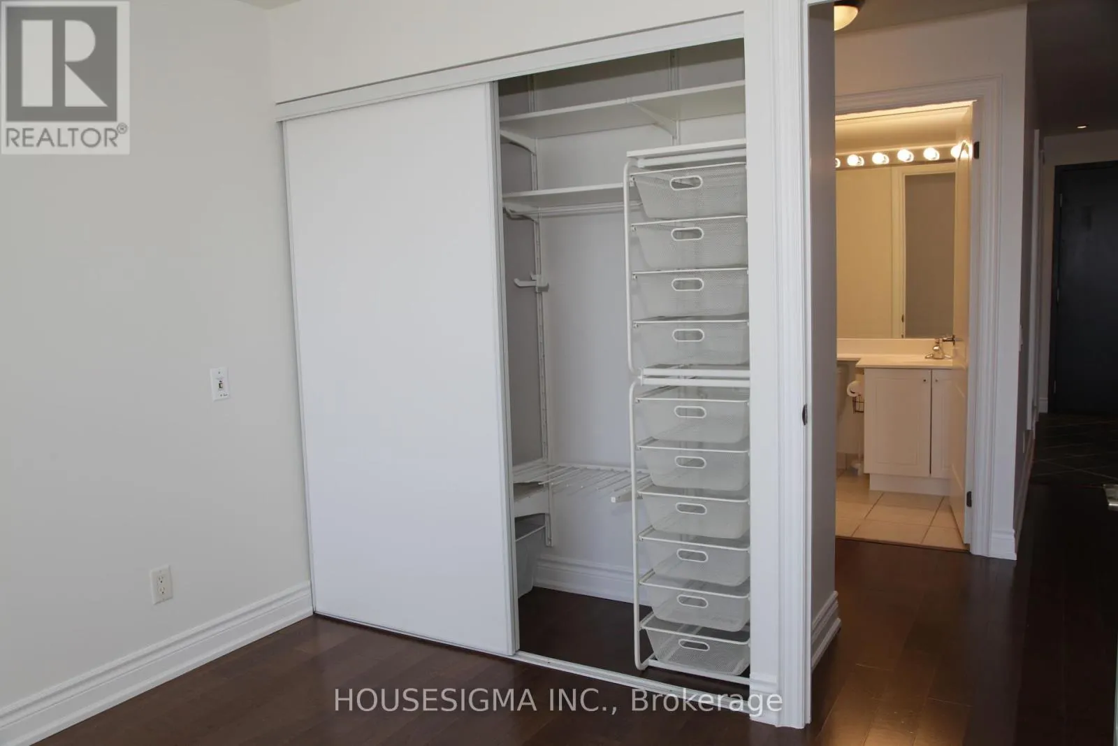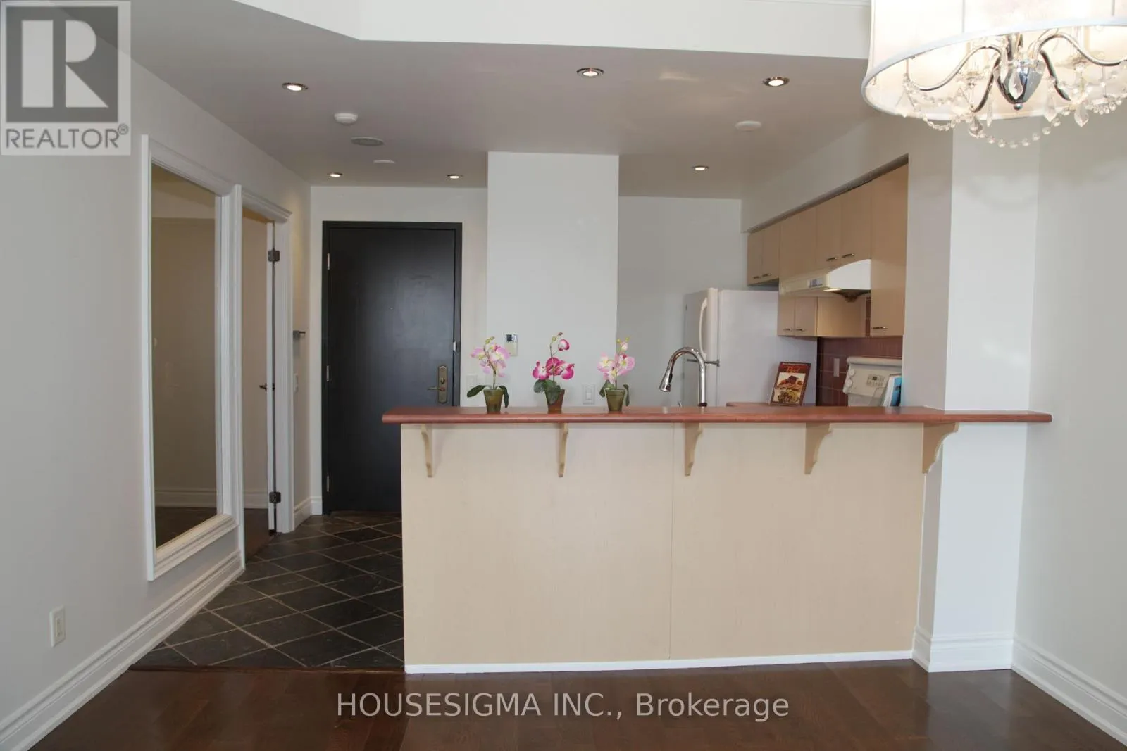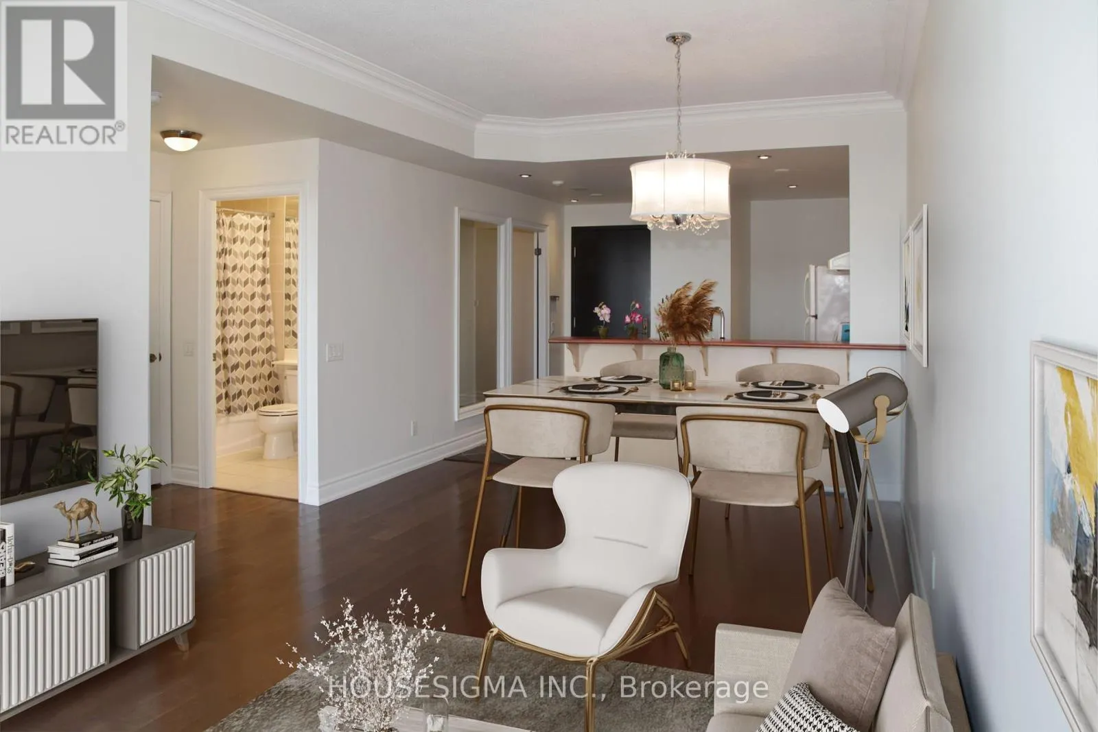 Bayview/Sheppard Luxurious living at Bayview Mansion, a Boutique style mid-rise condo building, located in one of Toronto's most prestigious neighborhood. This exceptionally bright & spacious unit faces South with a stunning unobstructed view of the skyline & CN Tower. Large 1 bedroom + den with 9' ceiling & big windows open to balcony. The marble tiles & pot lights at entrance welcome you to the clean kitchen with ample cabinet space, breakfast bar & tile floor. Newer fridge ('19). The unit is carpet free with wood floor throughout, crown moulding, freshly painted (2021) newer washer/dryer & dishwasher (2021), Master bedroom with closet organizer. The den has a door with greenhouse window which can be a home office or works as a 2nd bedroom. Enjoy shopping at the upscale Bayview Village mall, Loblaws; YMCA across the street; gourmet restaurants close by. Steps to parks, Bayview subway, TTC, mins to major hwy (401,404/DVP & 407). Great schools area: Earl Haig, short walk to Hollywood P.S. and St. Gabriel Catholic School is just mins away. A well managed & safe building with 24 hrs concierge. Residents can enjoy incredible amenities including, exercise room, a party/meeting room, sauna, rooftop deck/garden & abundance of underground visitor parking (id:27476)