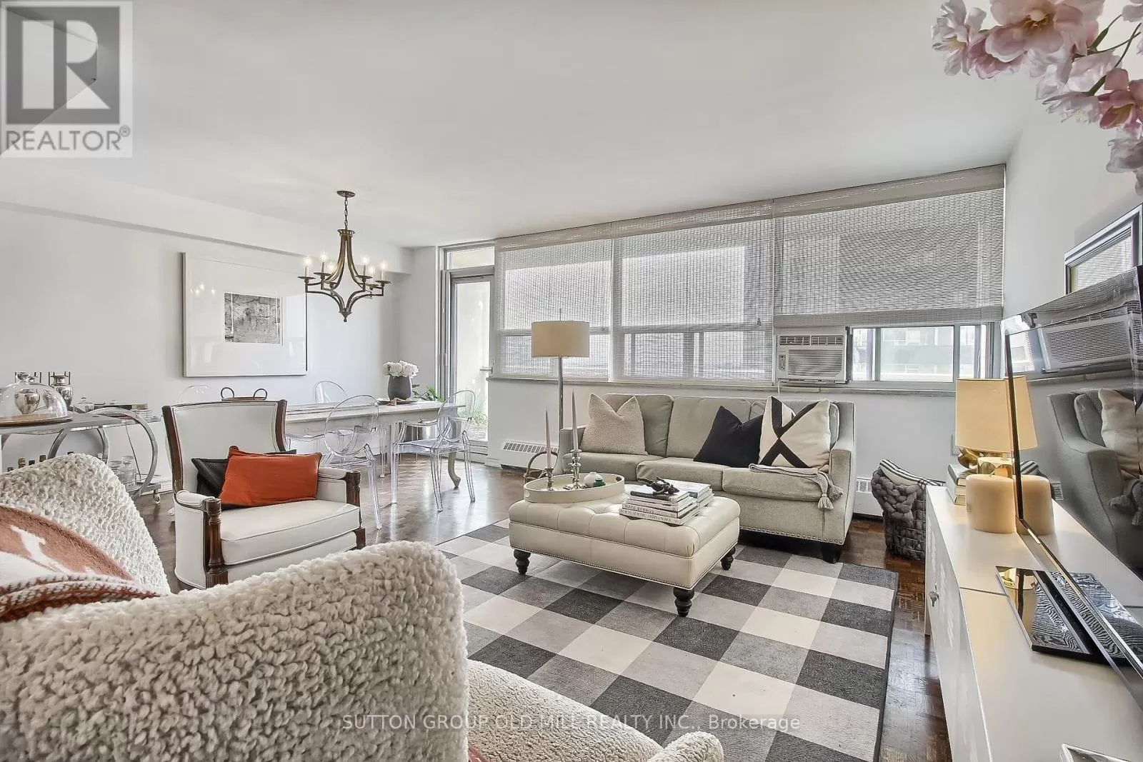 Cross Streets: MARLEE AND RIDELLE. ** Directions: Eglinton and Marlee. Prime midtown location! This spacious and bright 2-bedroom suite offers plenty of storage and stylish designer touches throughout. Beautifully renovated with an open-concept living, dining, and kitchen area, it also features a walk-out to a large west-facing balcony. Building amenities include an indoor pool, sauna, rooftop patio, fitness room, and library. Conveniently surrounded by restaurants, cafés, and shops, with groceries right across the street. Just a 4-minute walk to Glencairn Station and minutes to Yorkdale Mall, Allen Expressway, and Highway 401.This suite comes fully furnished and is available for a 6-month rental. (id:27476)