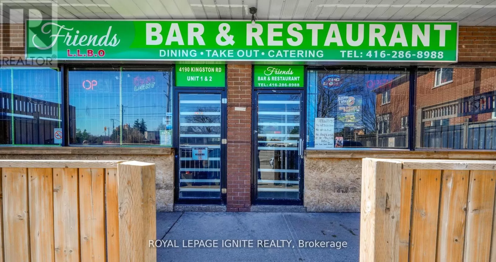 Kingston road /Galloway road Friends Bar & Restaurant presents an exceptional business opportunity now available for sale in a highly desirable location, nestled within a vibrant residential and commercial neighborhood. Known for its stellar reputation, this well-regarded establishment has earned glowing reviews and cultivated a loyal customer base over the years. With a strong foundation and consistent patronage, Friends Bar & Restaurant offers an ideal blend of location and popularity, making it a promising venture for continued growth and success. Whether you're a seasoned entrepreneur or venturing into the hospitality industry for the first time, this turnkey operation provides the chance to step into a thriving business with a solid track record and excellent market presence. (id:27476)