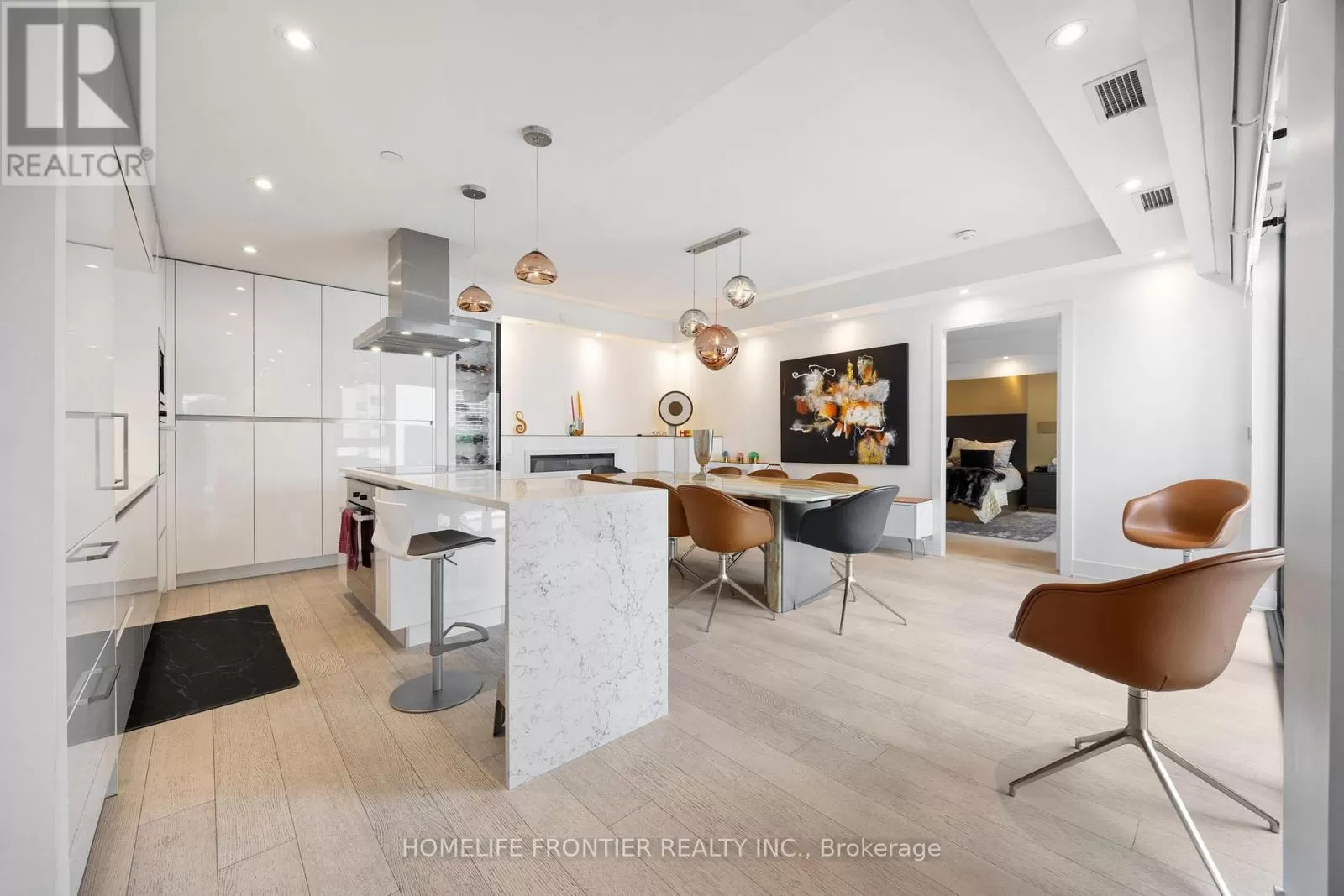 Cross Streets: Yonge St & St Clair Ave. ** Directions: Through Front Entrance. Experience refined luxury in this exceptional two-bedroom, three-bathroom residence in one of Midtowns most prestigious buildings. Thoughtfully designed for both elegance and comfort, this rare layout includes soaring 9-foot ceilings and a spacious family room in addition to open living and dining areas ideal for entertaining or everyday living. The primary suite offers the feel of a private retreat, complete with two custom walk-in closets and a spa-inspired ensuite featuring upgraded tile and vanities, heated floors, dual sinks, a large walk-in shower, a soaker tub, and a private water closet. The split-bedroom plan ensures privacy, with the second bedroom featuring its own ensuite. A discreet powder room with designer hand-painted walls and elegant ceiling lighting adds a sophisticated touch. Throughout the suite, upgraded wide-plank hardwood floors, recessed pot lighting, and remote-control curtains create a seamless and elevated ambiance. The kitchen is fully customized with upgraded cabinetry, designer lighting over the island and dining area, andtop-of-the-line Miele appliances, including a built-in coffee machine and microwave. The family room is enhanced with a bespoke TV wall unit, while a mirrored entrance wall provides a dramatic, welcoming impression. Two private balconies extend the living space outdoors. The residence also includes valet parking and professional valet services, adding everyday ease and convenience. Residents enjoy a full-service concierge and world-class amenities, including a state-of-the-art fitness centre, stylish party room, and a beautifully landscaped rooftop terrace. Located just steps from the shops, dining, and conveniences of Yonge & St. Clair, this home offers the ultimate in urban luxury living. (id:27476)