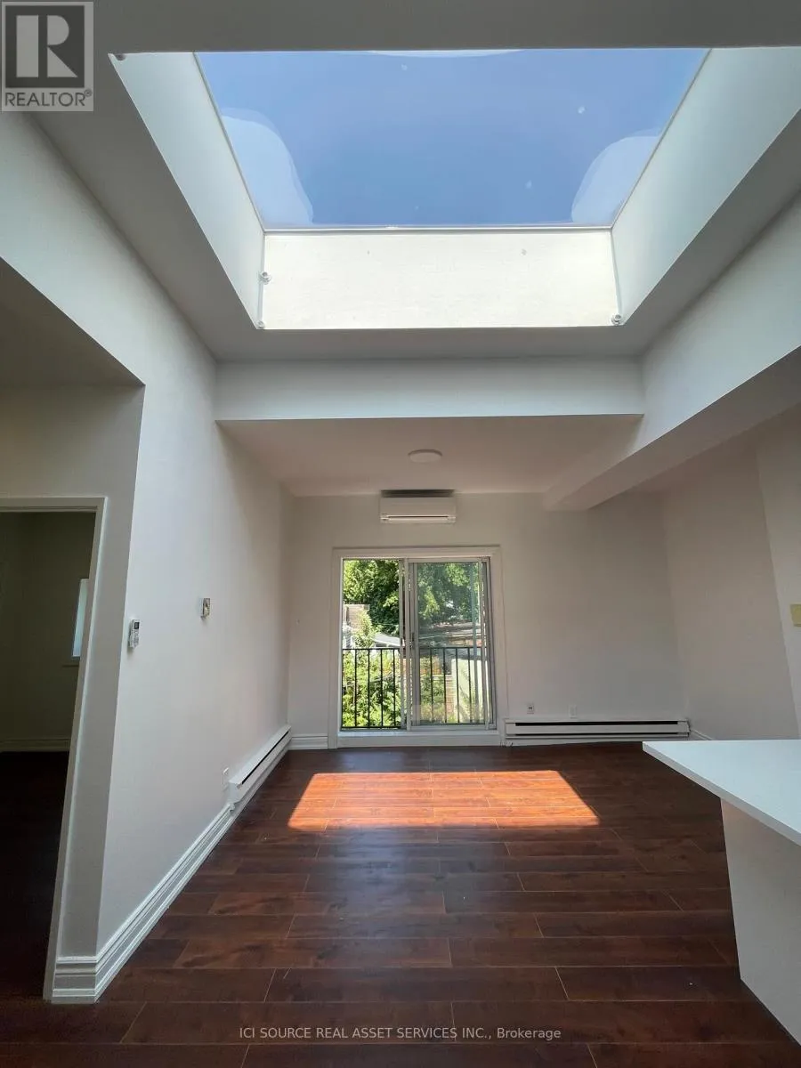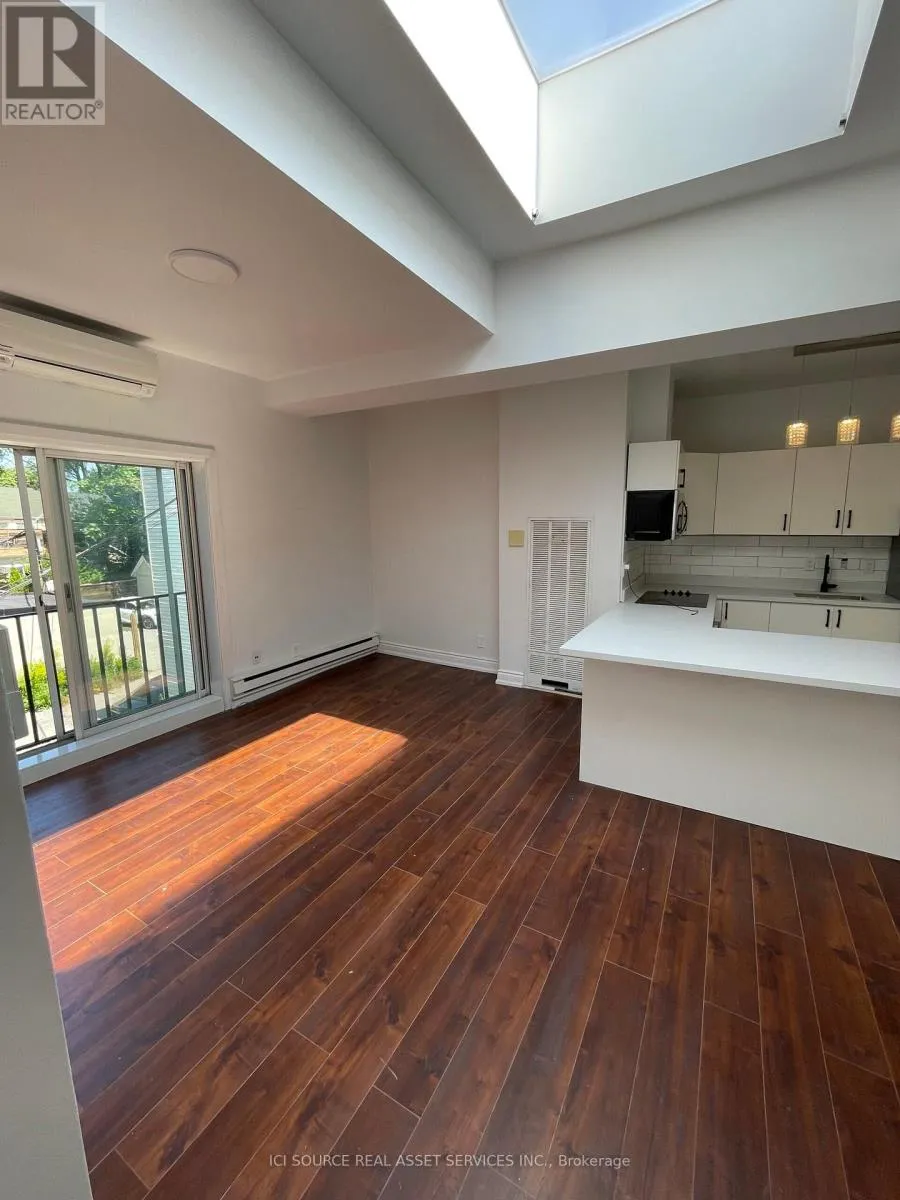 Cross Streets: Queen Street East and Broadview Avenue. ** Directions: Travel east along Queen Street from downtown Toronto. Past Broadview Avenue on north side. Sun-filled, Loft Style 2 bedroom apartment in the heart of Leslieville. 1200 Square feet Corner unit, with 10 foot ceilings, skylight, and french balcony. X-large living room, lots of windows and large closets. Laminate and tile flooring throughout. Large kitchen with solid wood cabinets and quartz countertops for those whose love to cook! ALL New appliances. Gas furnace, Ductless AC/Heat Pump as well. Ensuite laundry closet with NEW stacking full size washer and dryer. Plenty of ensuite closets as well as a large storage locker on the ground floor. Energy Saving LED Lights through-out. Freshly painted. Small and medium sized pets OK. Vacant, Easy showings. *For Additional Property Details Click The Brochure Icon Below* (id:27476)