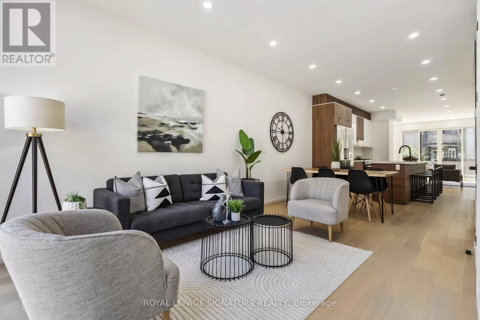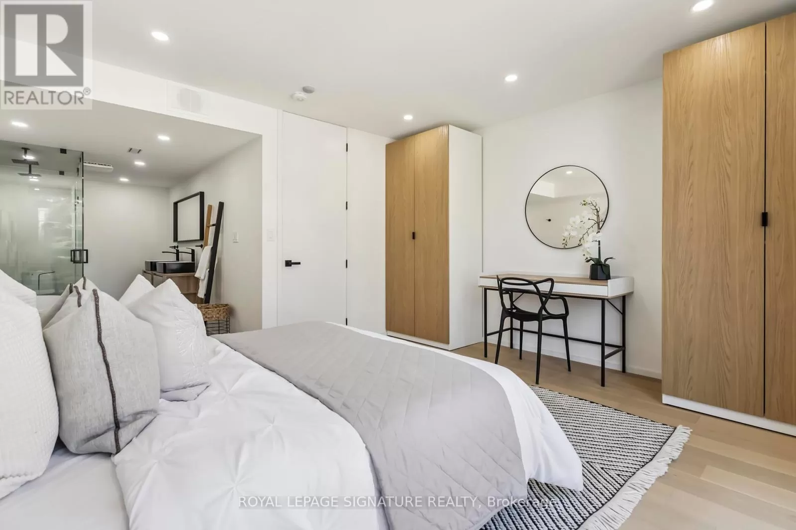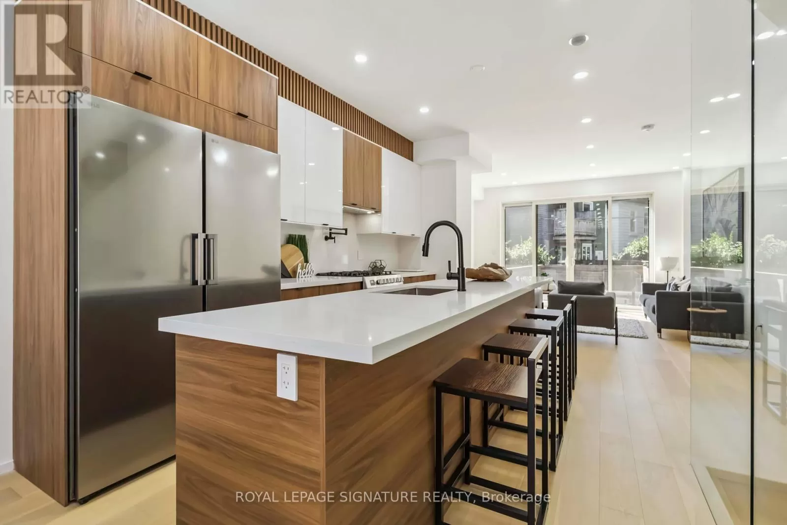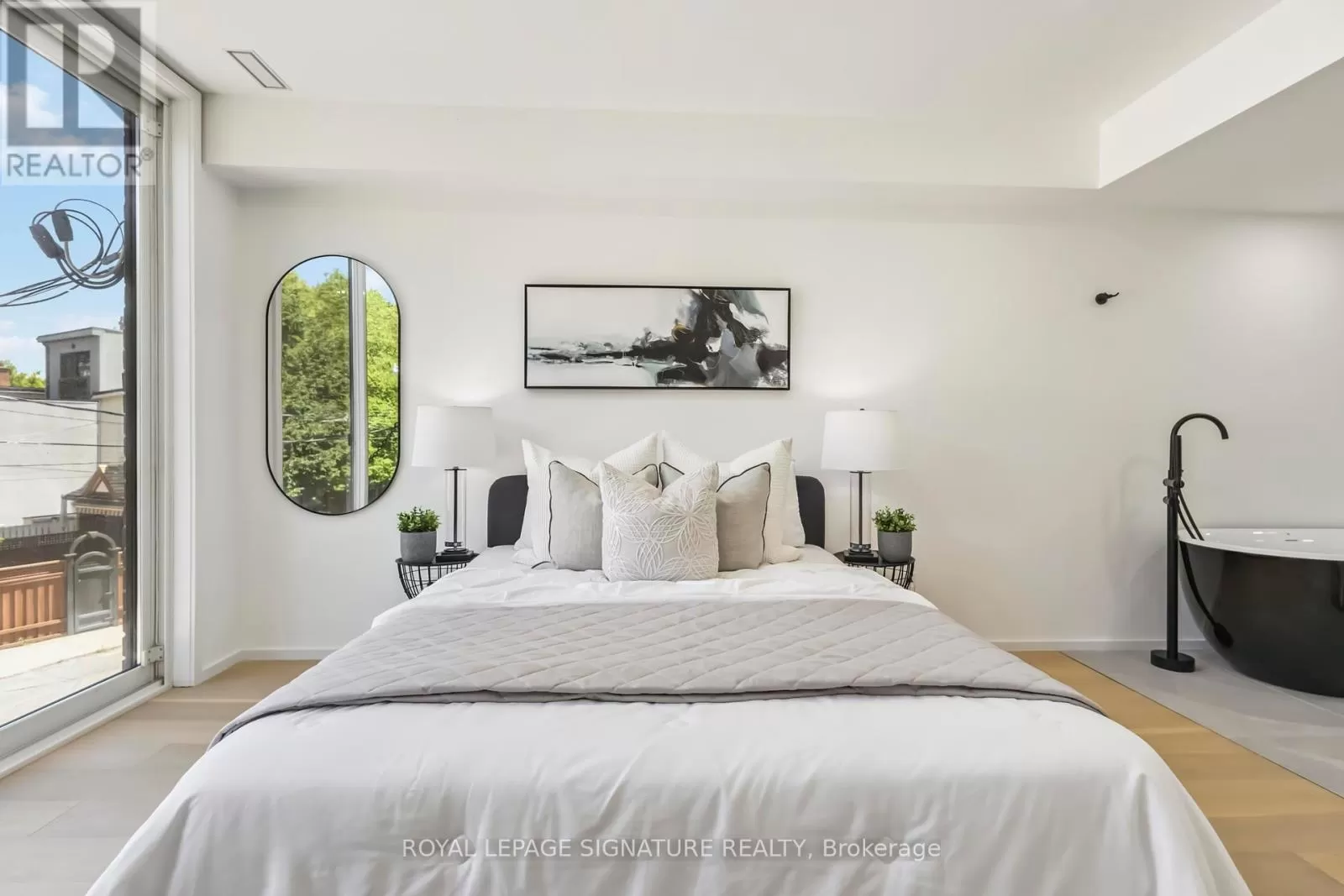 Broadview Ave & Dundas St E Fully Furnished!! Rare Lease Opportunity! Be the first to live in this stunning, brand-new 3-storey townhouse in the heart of South Riverdale offering over 2,000sqft of thoughtfully designed, stylish living space in one of Toronto's most vibrant communities. The bright, open-concept main floor boasts 9-foot ceilings, floor-to-ceiling windows, engineered hardwood floors, and sleek LED lighting throughout. At the centre of it all is a modern chefs kitchen featuring quartz countertops, matching backsplash, an impressive 11-foot island, stainless steel appliances including a gas stove, built-in dishwasher, fridge & freezer, and beverage cooler. The spacious family room opens through oversized sliding doors to a private deck and fenced backyard great for seamless indoor-outdoor living and entertaining. The second floor includes a luxurious primary suite with double closets and a spa-inspired open-concept 7-piece ensuite including a soaker tub, double vanity, glass-enclosed shower, and water closet. This level also includes a generous second bedroom with a Juliet balcony, a full 4-piece bathroom, and a convenient laundry area. The third floor is flooded with natural light from skylights and features two additional bedrooms each with their own balcony, 3-piece ensuite, and a dedicated A/C unit for maximum comfort. Located just steps from Dundas St E., Queen St. E and the best of Leslieville, you'll enjoy a short walk to trendy cafes, restaurants, shops, parks, and the Jimmie Simpson Recreation Centre. With easy access to transit, top schools, and downtown Toronto, this location truly has it all. (id:27476)
