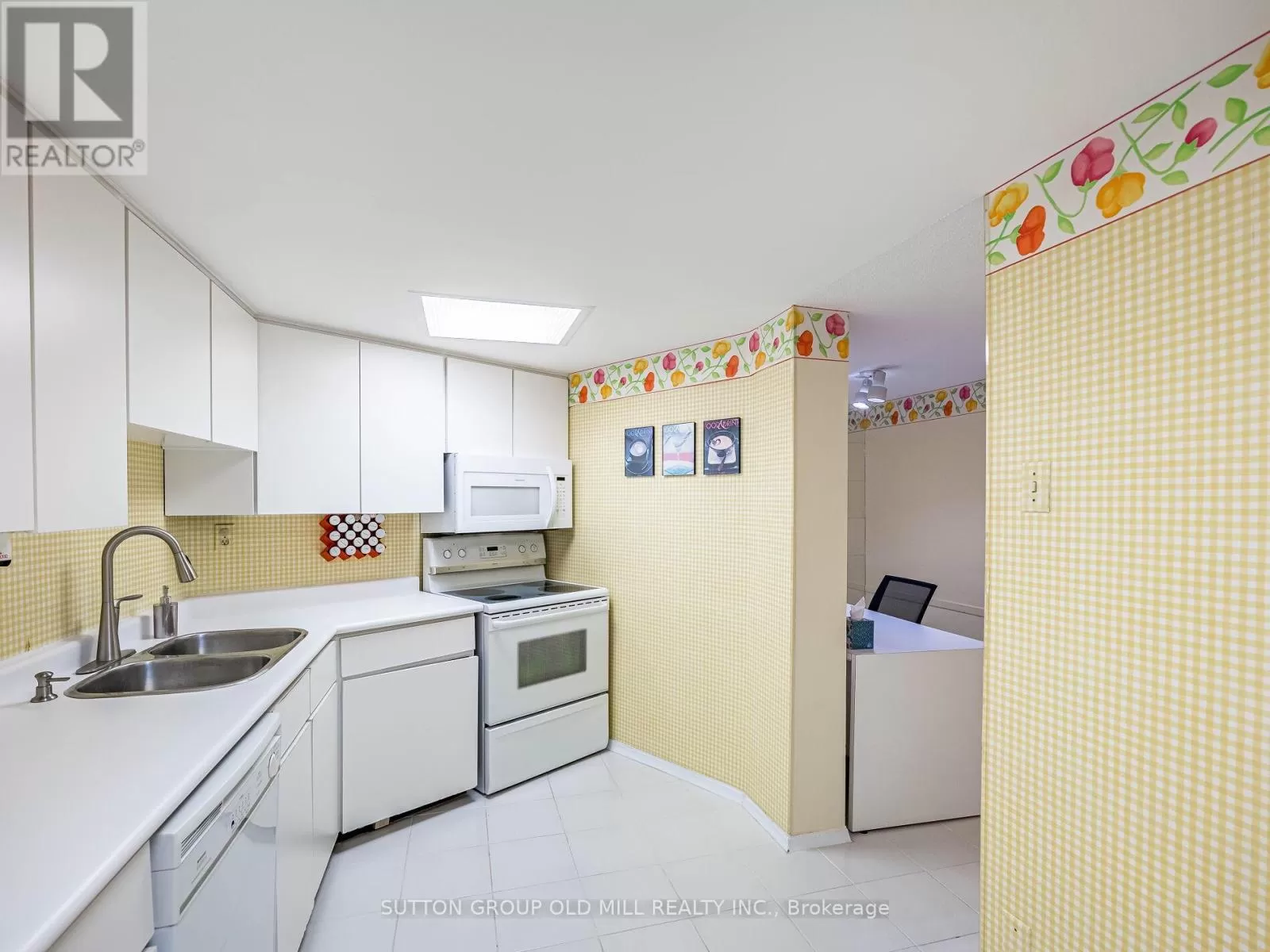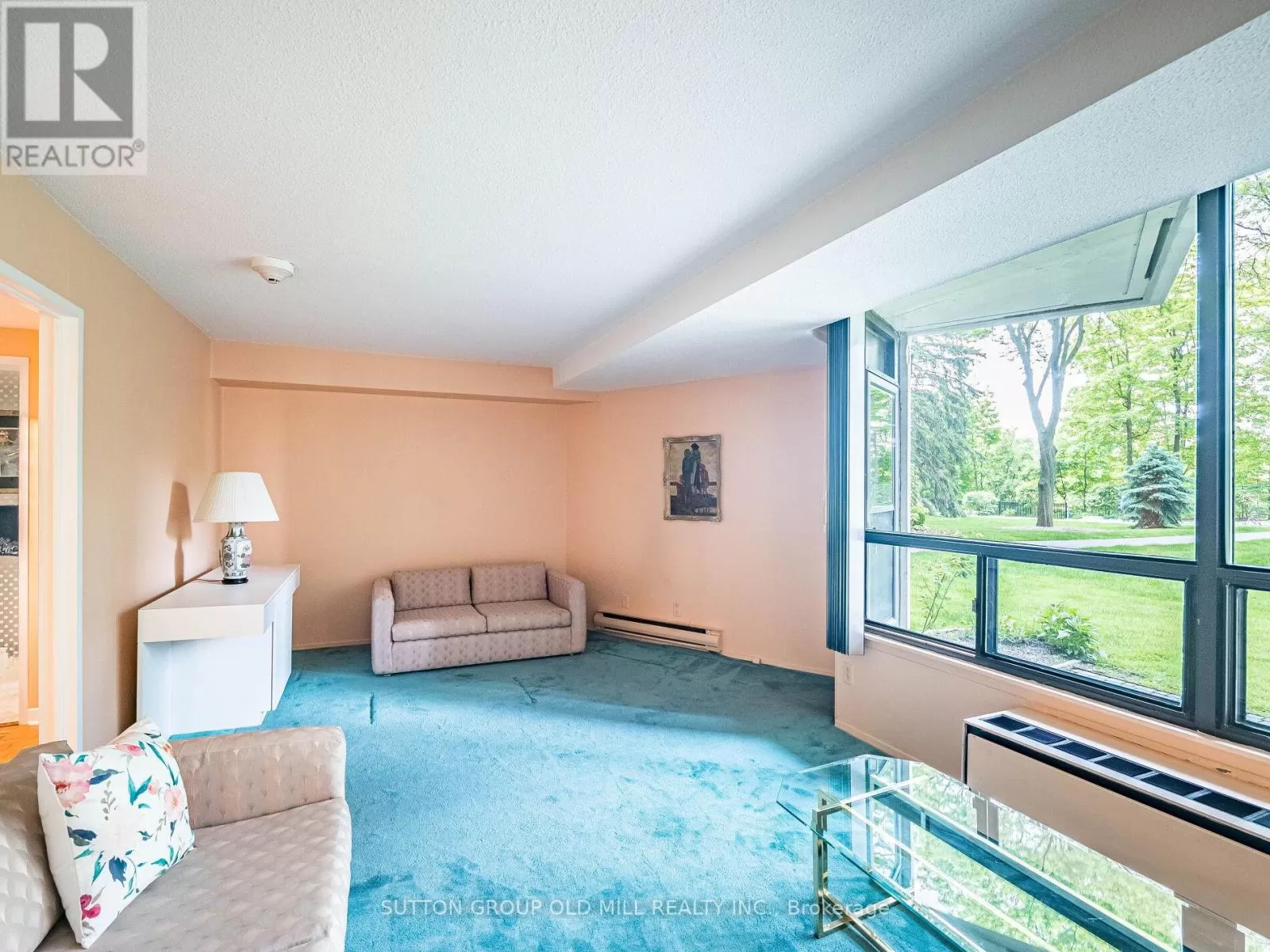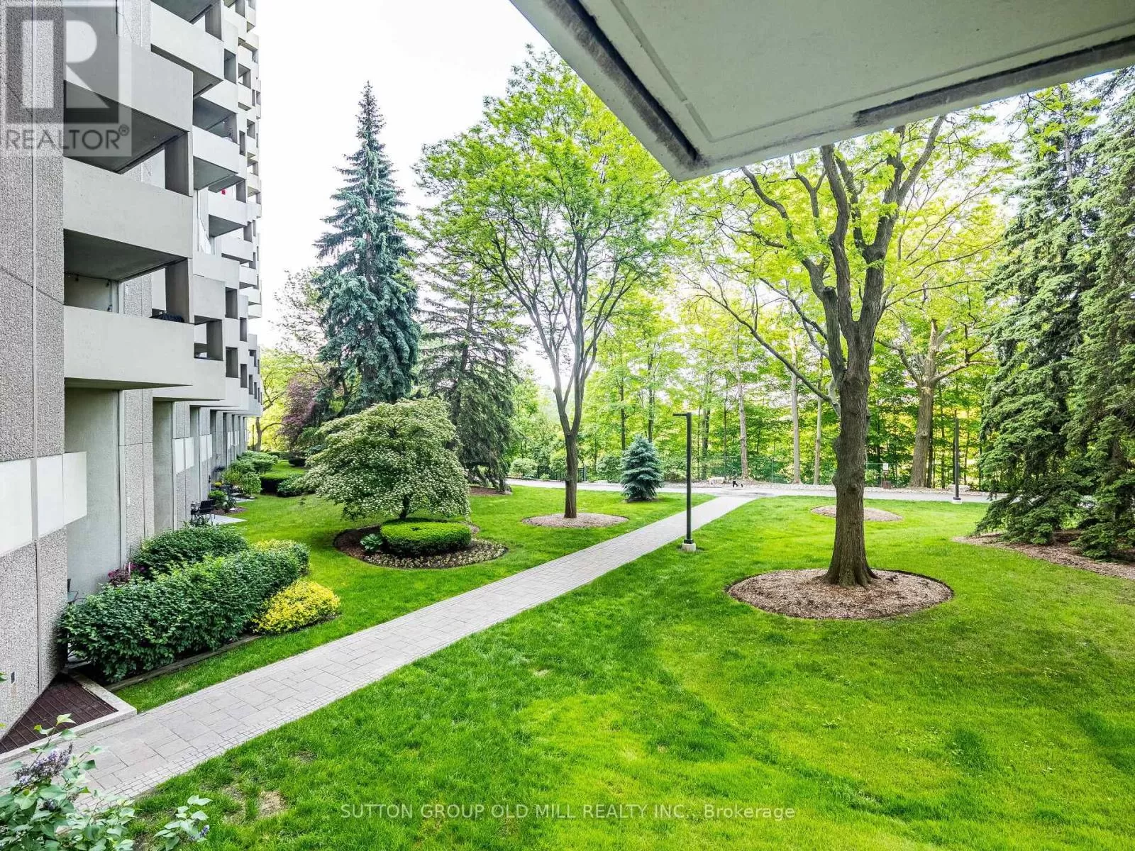 Cross Streets: Burnhamtorpe/Mill Rd. ** Directions: West of 427 Hwy.-Burnhamtorpe West to Mill Rd South. Discover a truly unique layout in this spacious 3-bedroom, 2.5-bathroom ground floor suite overlooking the lush west-facing gardens of The Masters and backing directly onto prestigious Markland Wood Golf & Country Club. Enjoy your own private terrace - perfect for relaxing or gardening. This thoughtfully designed suite offers rare features including an oversized two-level laundry and storage room with exceptional potential, and deep main floor closet ideal for luggage or seasonal items. A dedicated home office on the main level provides a quiet space for work or study. Or could be a pass thru to a Breakfast Bar; Large Pantry; or open to your renovator's impagination. The generous living room opens onto the terrace and gardens, while a formal dining room sits adjacent to the kitchen, perfect for entertaining. The spacious primary bedroom features a walk-in closet, a 4-piece ensuite, and walk-out access to a private balcony. Two additional bedrooms share a 4--piece bathroom. Set on 11 beautifully landscaped acres, The Masters offers residents access to walking paths, tranquil benches, and breathtaking views along the edge of the private golf course. Resort-style amentities include indoor and oudoor pools, tennis and pickleball courts, a gym, clubhouse and more. This pet-friendly community also permits BBQ's adding to the lifestyle appeal. The Masters is presently undergoing a complete Moderniztion which is has been funded. (id:27476)