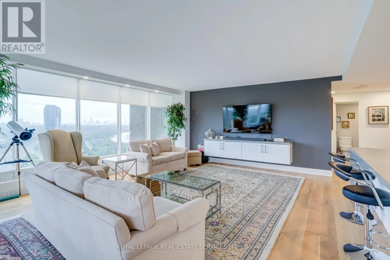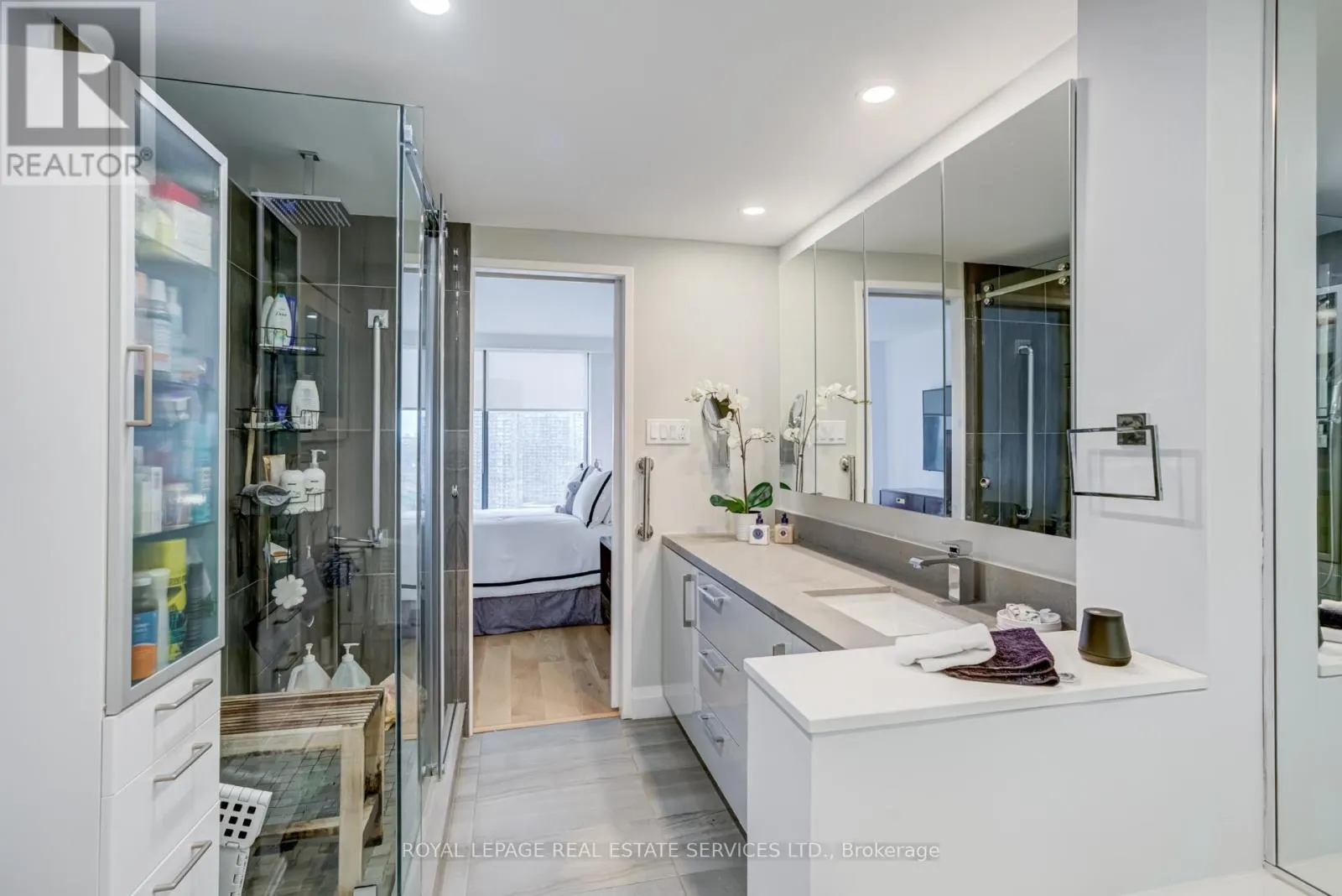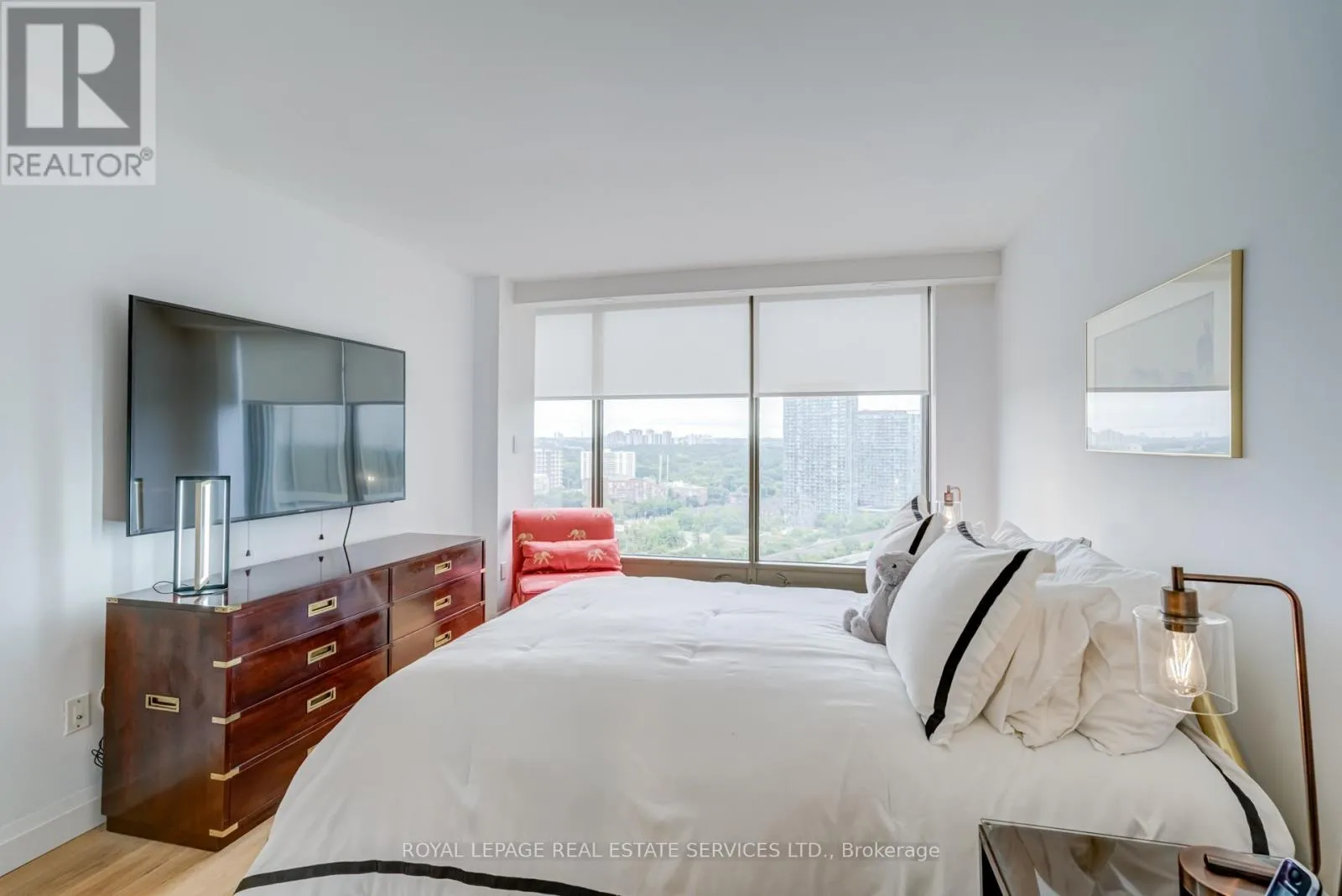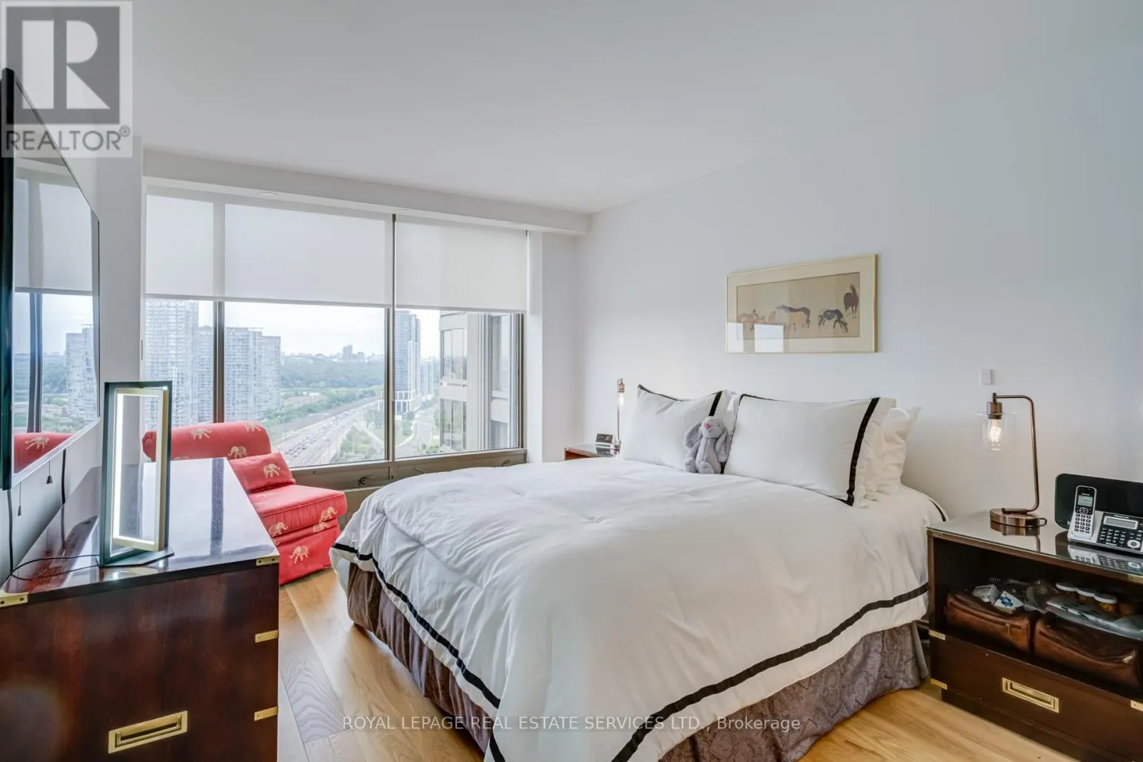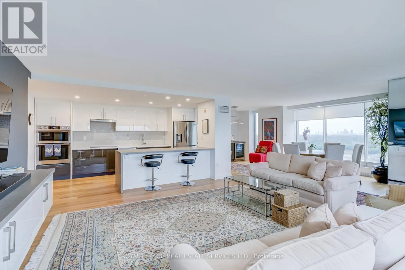 Park Lawn & Lake Shore Welcome to Toronto's luxury landmark high rise, Palace Pier, located on the shore of Lake Ontario. Rarely available, this 1,890 sq.ft. three bedroom, two and a half bath residence is move in ready. Upon entering, to your right, the first or primary bedroom or bonus room, is spacious, and totally private from the rest of the suite. A three piece bath, with walk in shower completes this area. A separate wing, if you will. Proceeding down the hall into the principle living area, floor to ceiling windows frame the views of parkland, the Humber River, particularly beautiful in Autumn and partial view of the city skyline. The living and dining rooms size is accentuated by the open concept kitchen, oversized Caesarstone preparation island, surrounded by German manufactured, white acrylic cupboards and drawers, lots of them, and upscale gleaming Samsung and Bosch S/S/appliances. The kitchen counter has been extended to the dining area for additional storage, bar and wine fridge. The backsplash is unique. Punched stainless steel which compliments the white granite counter tops. Engineered floors of Honey Bleached Oak, easy to maintain, are throughout. The other "primary" ensuite, depending on which you choose, has been made into a mini spa with soaker tub, walk-in rain shower and Icera, toilet/bidet. The additional bedroom is bright and cozy adjacent to a two piece powder room. The full sized LG washer and dryer, have been removed from the kitchen and now tucked away in the hall giving easier access. All this along with grand lobbies and ***** Five Star Amenities: Concierge, 24 hr. security, Valet parking, Private Shuttle to City, Restaurant, Tennis court, BBQ's, Guest Suites, Full service spa, Sports simulator, Gourmet shop, State of the art gym and much more. (id:27476)