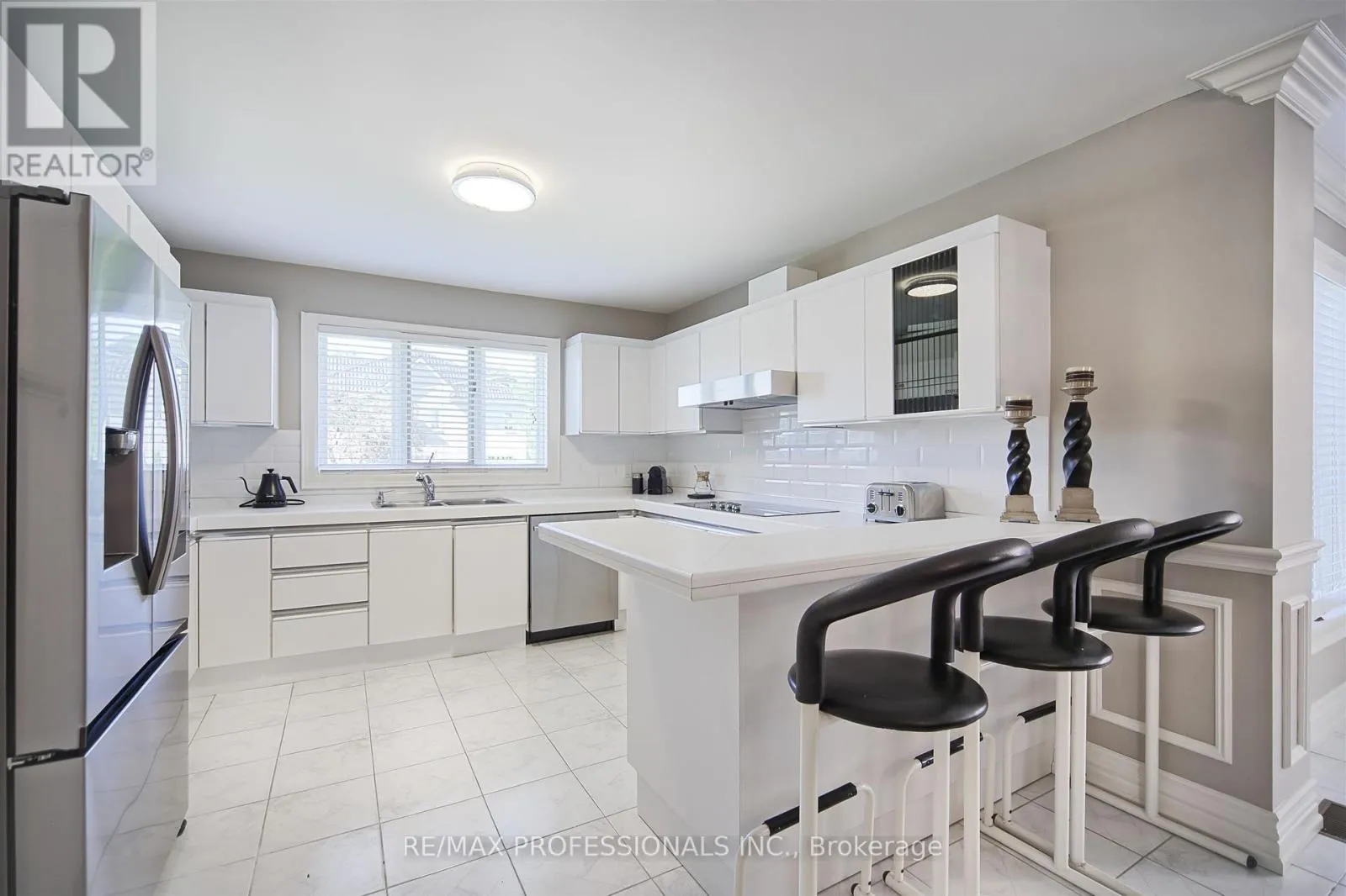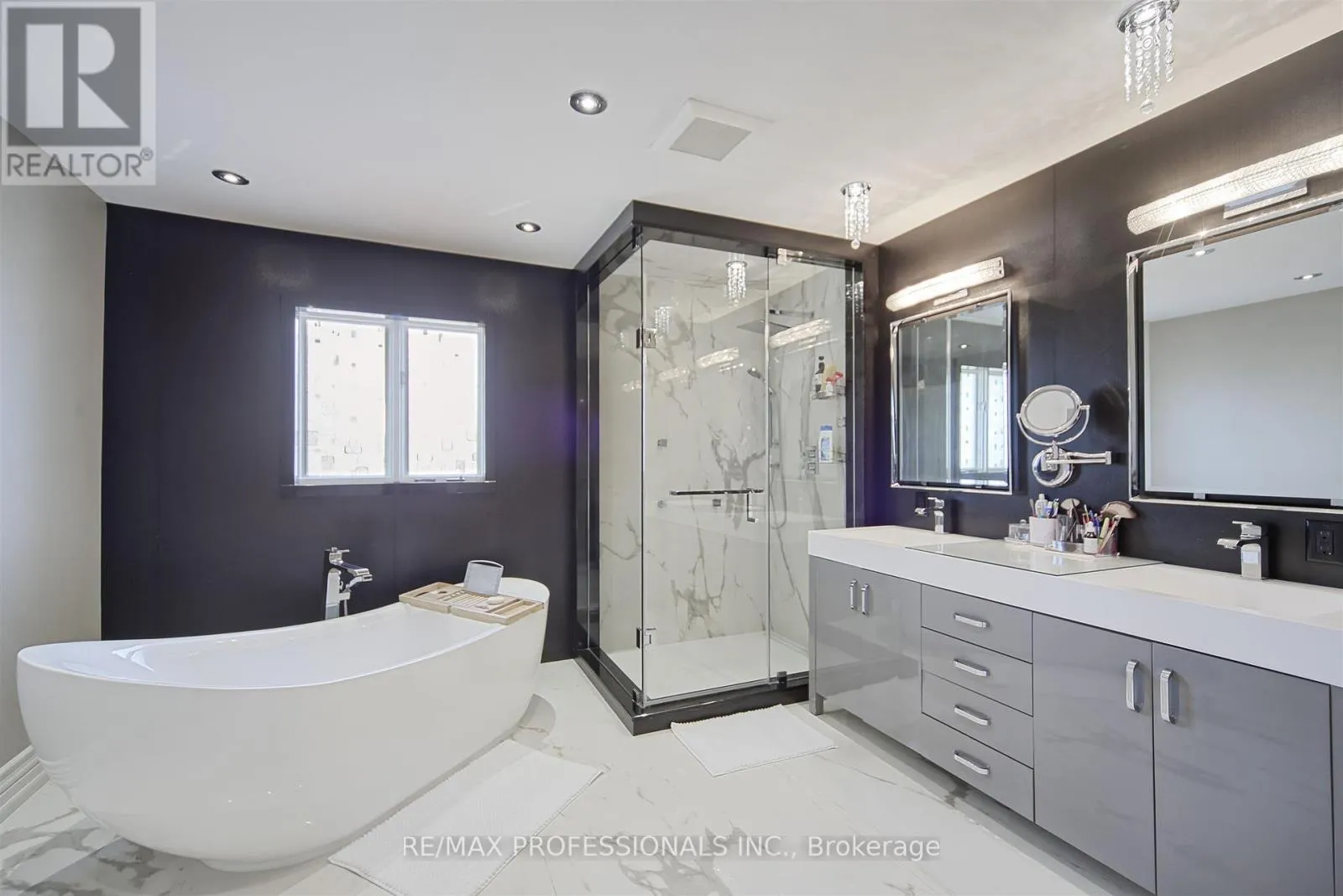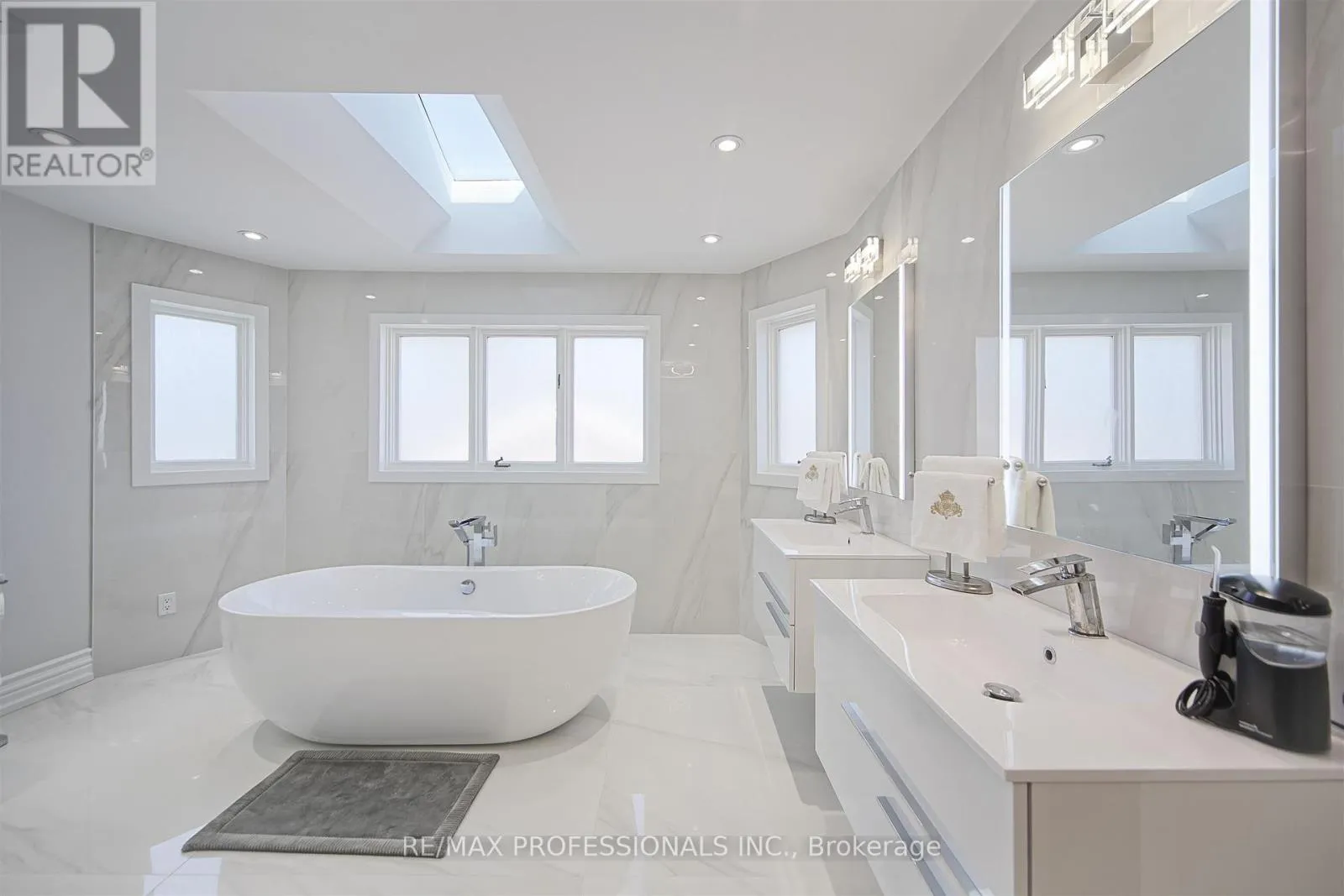 Cross Streets: Lawrence Ave W. and Keele Street. ** Directions: Lawrence Ave. W. and Keele Street. Come see this amazing home at our Open House 2:00 to 4:00 Saturday Nov 22 and Sunday Nov 23. You have to see it to believe it. Nothing left to be desired. As you approach the front entrance you are greeted and impressed by a 8ft wide 2" thick arched double door front entrance featuring an impressive foyer with an 18 ft high ceiling an incredible chandelier and unbelievable winding oak open stairs leading to the second floor. On the left you have the formal Living and Dining room with broadloom, on the right you have a nice office with parquet floor.The kitchen is huge with all new modern stainless steel appliances, triple door fridge with water and ice supply, built-in oven, built-in microwave, built-in cooktop, built-in dishwasher, Stainless Steel exhaust hood, open concept, with eating counter and overlooking a huge dining room. A large family room with built-in wood burning fireplace, a large sitting area with skylights and walkout to the beautiful rear yard leading to a custom built brick BBQ. Completing the main floor are the laundry room and 2 piece bathroom. Walk up the winding oak stairs 4 bedrooms. The primary bedroom is huge with walk-in closet and a 5 piece ensuite bathroom with heated floor soaker tub and separate shower. Another bedroom with a 3 piece ensuite bathroom. The basement is equally impressive with a huge kitchen all new stainless steel appliances, fridge with ice & water supply stove, electric fireplace, including exhaust hood over stove. Basement also has walkout to a large well maintained side yard. (id:27476)
