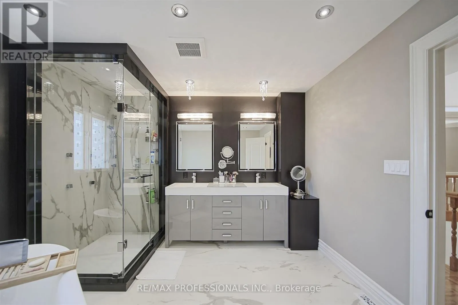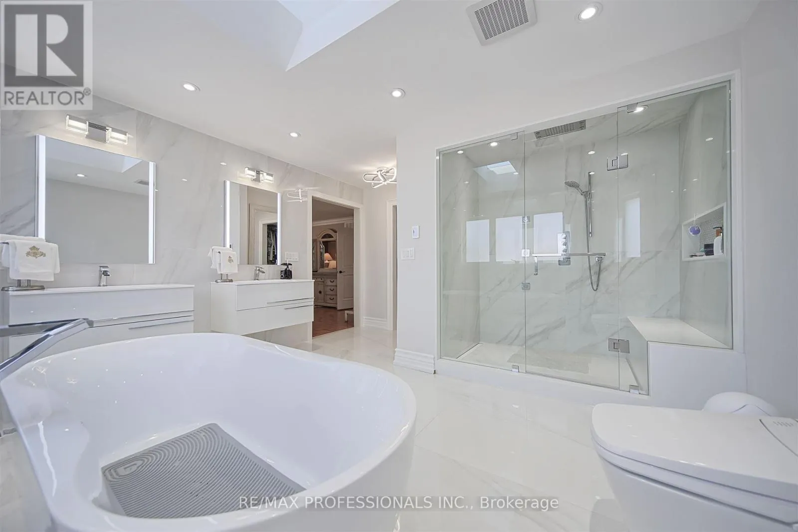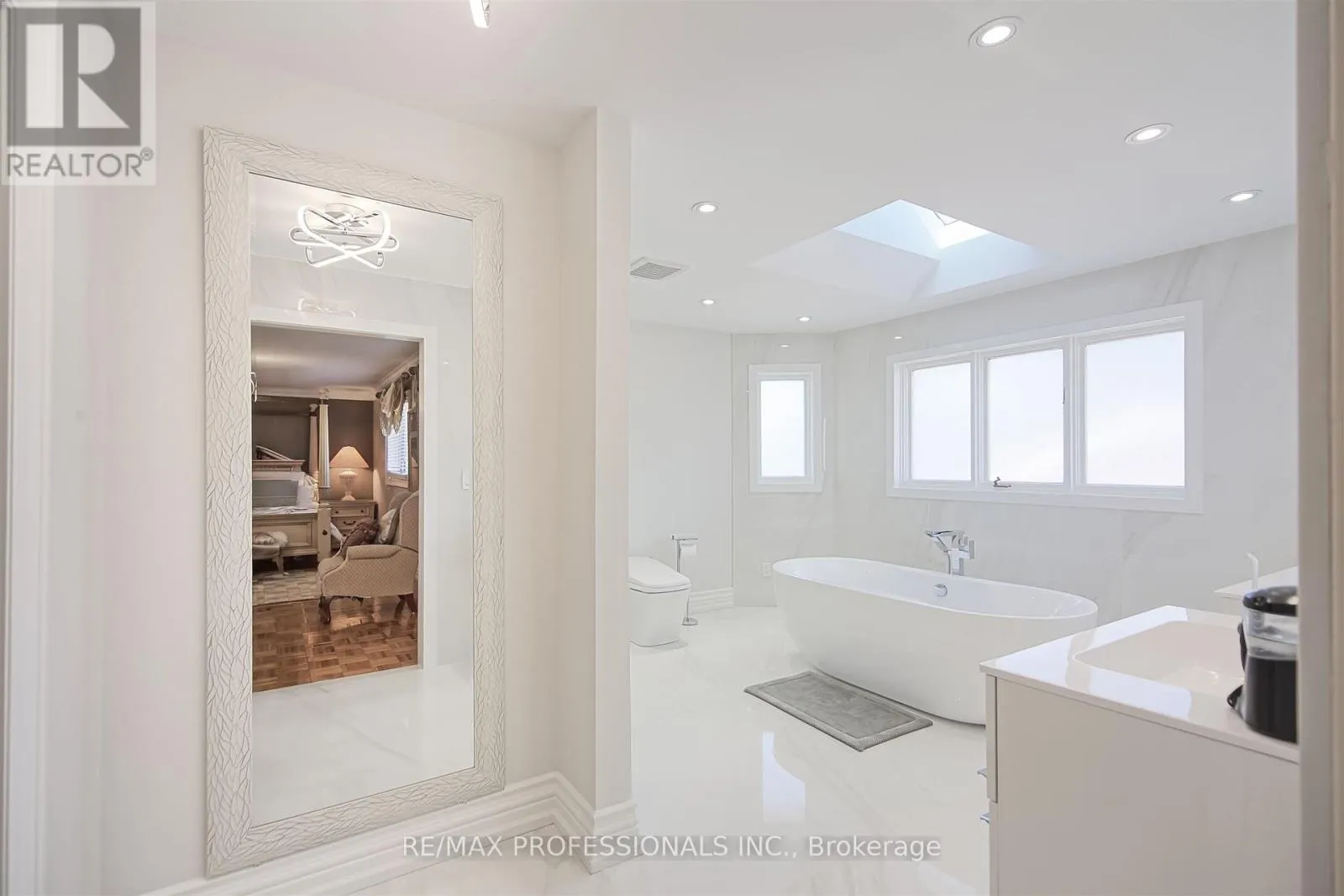 Cross Streets: Lawrence Ave W. and Keele Street. ** Directions: Lawrence Ave. W. and Keele Street. Come see this amazing home at our Open House 2:00 to 4:00 Saturday Nov 22 and Sunday Nov 23. You have to see it to believe it. Nothing left to be desired. As you approach the front entrance you are greeted and impressed by a 8ft wide 2" thick arched double door front entrance featuring an impressive foyer with an 18 ft high ceiling an incredible chandelier and unbelievable winding oak open stairs leading to the second floor. On the left you have the formal Living and Dining room with broadloom, on the right you have a nice office with parquet floor.The kitchen is huge with all new modern stainless steel appliances, triple door fridge with water and ice supply, built-in oven, built-in microwave, built-in cooktop, built-in dishwasher, Stainless Steel exhaust hood, open concept, with eating counter and overlooking a huge dining room. A large family room with built-in wood burning fireplace, a large sitting area with skylights and walkout to the beautiful rear yard leading to a custom built brick BBQ. Completing the main floor are the laundry room and 2 piece bathroom. Walk up the winding oak stairs 4 bedrooms. The primary bedroom is huge with walk-in closet and a 5 piece ensuite bathroom with heated floor soaker tub and separate shower. Another bedroom with a 3 piece ensuite bathroom. The basement is equally impressive with a huge kitchen all new stainless steel appliances, fridge with ice & water supply stove, electric fireplace, including exhaust hood over stove. Basement also has walkout to a large well maintained side yard. (id:27476)