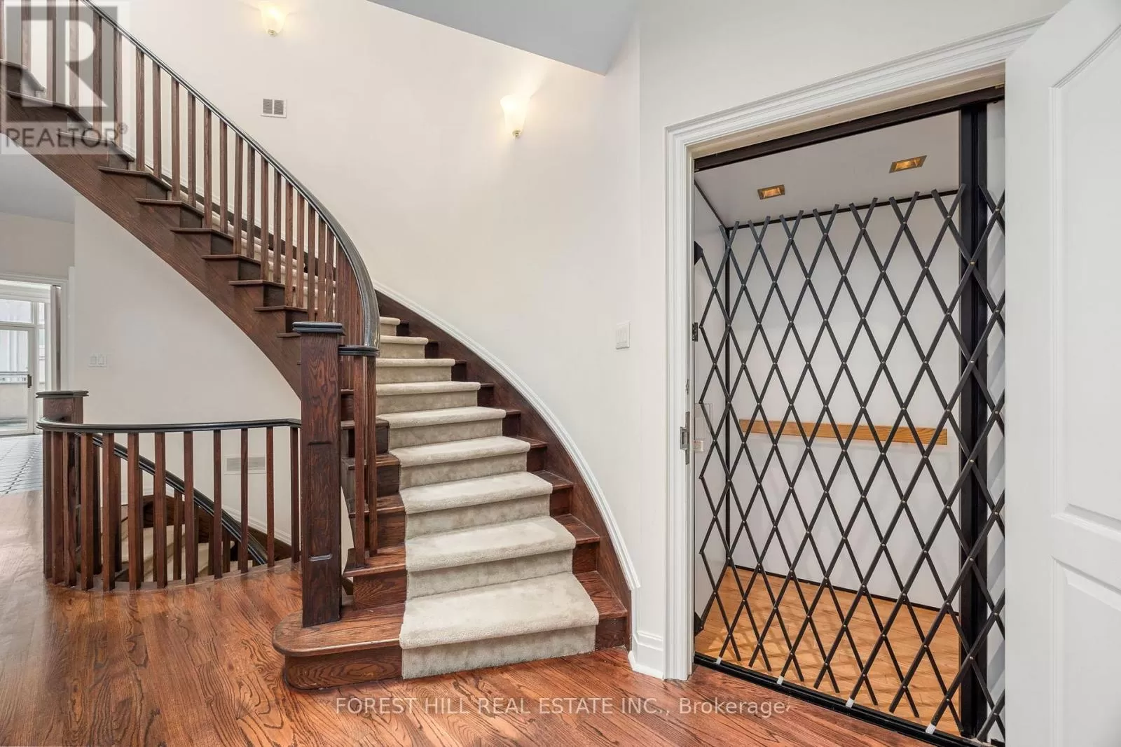 Spadina & Davenport Rare Castle Hill Executive Townhouse. One of the larger Townhomes in Castle Hill Approx 4000 sq.ft. including bsmt with an abundance of space and storage. Entertain your guests, while sitting beside a sweeping circular staircase going up 3 floors topped with a skylight. Its blend of 12 ft tall ceilings and great open spaces. Open concept Living room & dining room are well appointed with hardwood floors. Beautiful dark wood eat-in kitchen walk-out to balcony. Third floor primary watch the CN fireworks on your private deck. This beautiful townhome includes a private elevator, generous principal rooms, and abundant of parking, which is rare for the area. Whether you're hosting family or working from home, there's space for everyone to live, work, and relax in comfort. Located just minutes from top private schools, UCC, BSS and York. Walking distance to the University of Toronto. Walking distance to the subway. This home is especially ideal for families or professionals in town on contract or who just love to travel, this home is vacation friendly. (id:27476)
