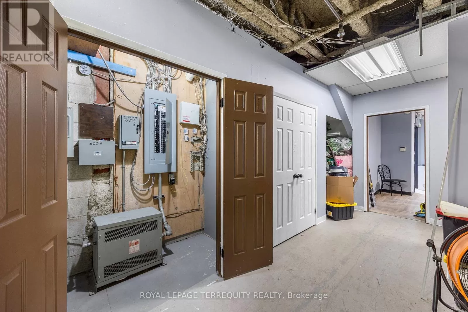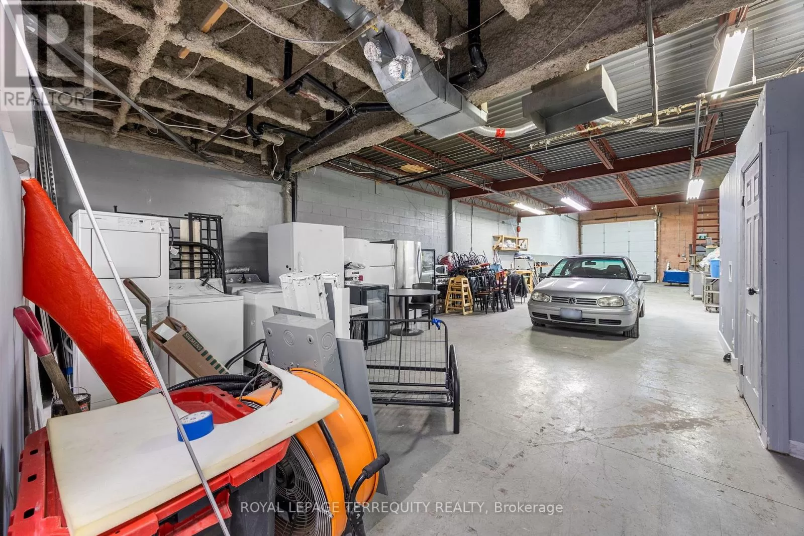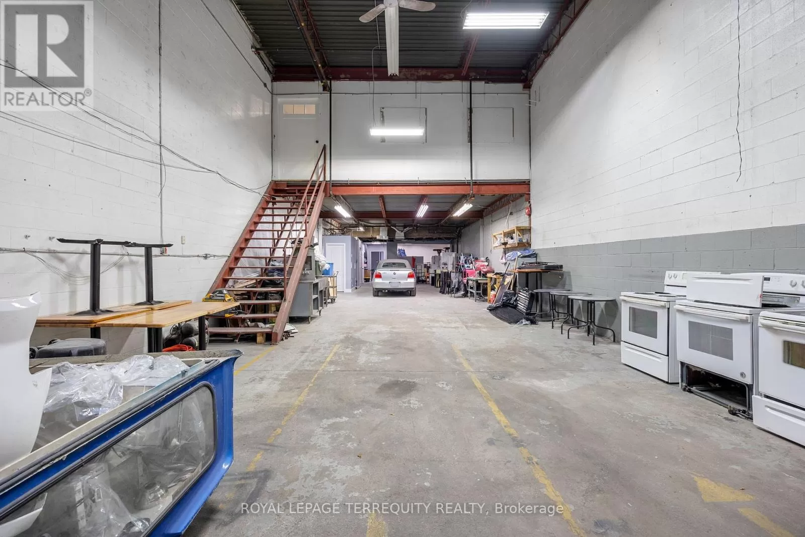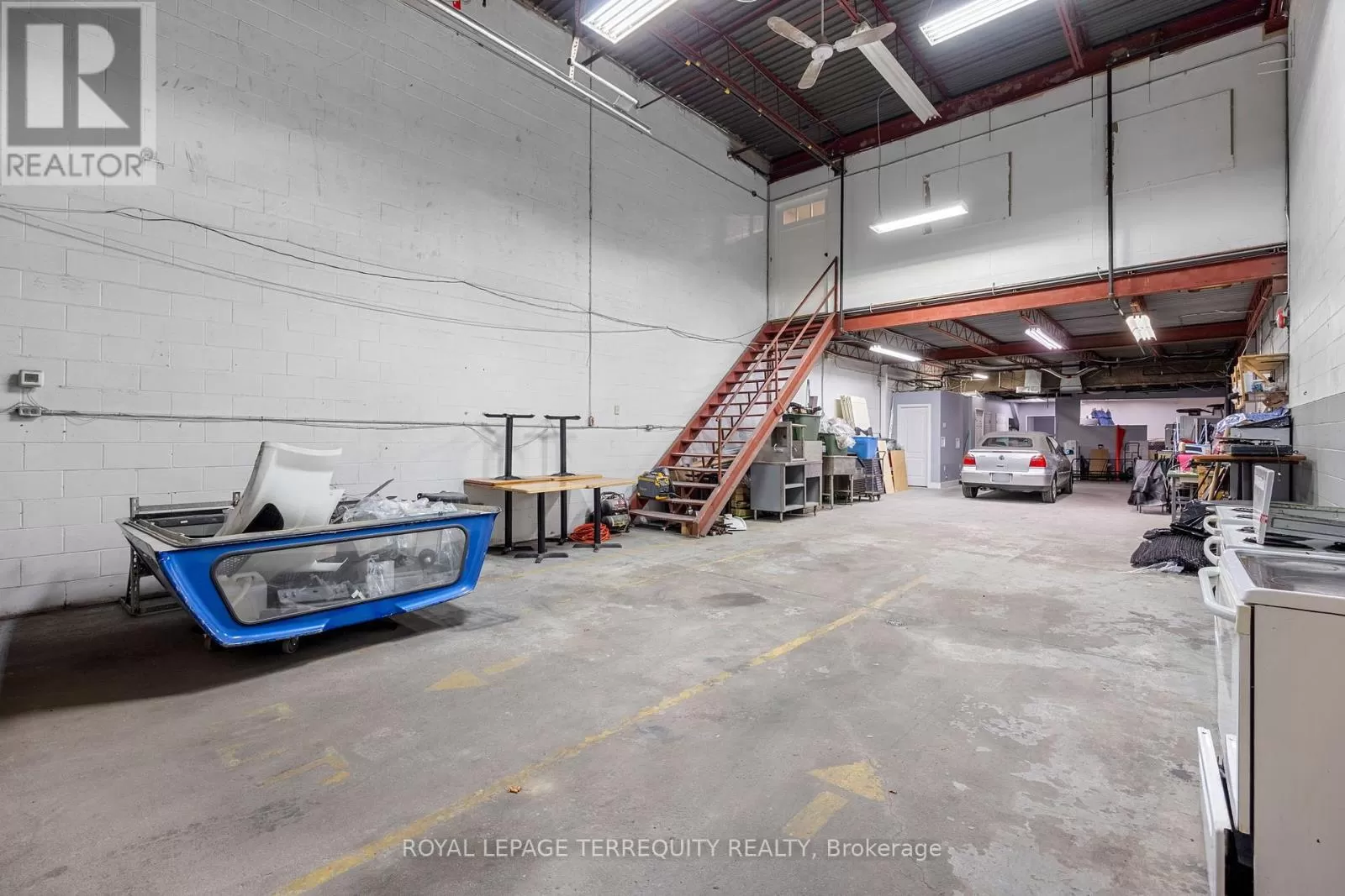 Weston Rd and Steeles Ave Seize a remarkable and unique opportunity in a centrally located industrial complex in North York. This industrial condo, with favorable EH1 zoning, is suitable for many industrial uses. The property features a rare oversized drive-in garage door with a 20-foot clear height and robust 600-amp power. The space is thoughtfully designed, including a separate entrance to a 1,300 sq ft mezzanine on the second floor. This level offers a finished office space, storage, a kitchenette, and two full bathrooms. The lower level features a warehouse for storage and an additional bathroom. Located just minutes from Highways 400, 407, and 7, this site provides exceptional access to major transportation routes. The property also includes four parking spaces. With a total area of 3,700 square feet, the building is equipped with gas forced-air heating, air conditioning, and sprinklers. This is a fantastic opportunity for both end-users and investors looking for a prime industrial location. (id:27476)