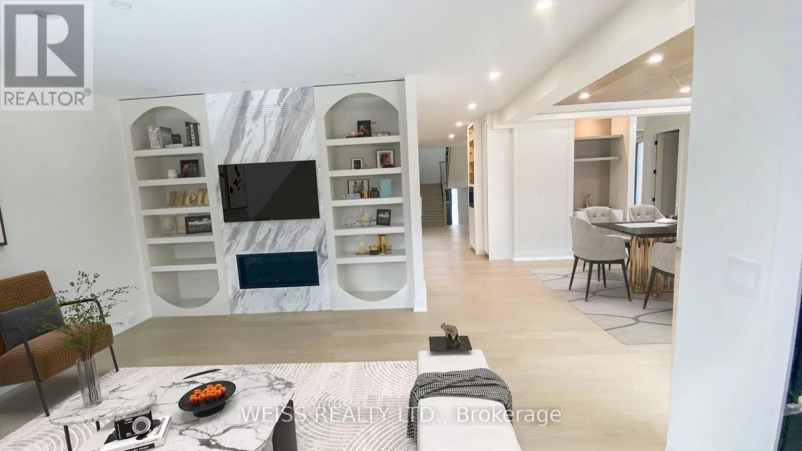 Cross Streets: Bathurst /Bannockburn/Sunshine. ** Directions: East of Bathurst. Exquisite large Residence in this desirable location. Premium Finishes Beautifully-Executed Custom Features At Every Turn. Generous 4 +1 bedrooms, 7 bathrooms, finished basement with two separate walkouts. 4 Car Driveway & attached Garage. HEATED/snow melt system for both front and side exterior stairs, with automatic weather sensor. Extraordinary Fenced Backyard corner lot -AMENABLE TO BUILD A POOL-see pool rendering ** Outstanding Principal Spaces Presenting Extra High Ceilings, beautiful-wide plank engineered hardwood Floors and decorated ceiling treatment. Family Room W/ Gas Fireplace, Built-In Bookshelves & Bay Windows. Beautiful Dining Room, Gracious Chefs Kitchen W/ Marble Countertops, High-End Appliances, 2 sinks stations. Central Island & Breakfast Area. Walk out to a large deck with natural gas BBQ connection. Rough-in for electric awning over deck . Family Room and basement with Walk-Outs To Backyard. Stylish Office Featuring Integrated Bookcases & Bay Window. Impeccably Conceived second floor with Wet Bar & built in bar fridge. Primary Suite with 6-Piece Ensuite Of Spa-Like Quality, heated floors; full size stacked washer and dryer. Wired wi-fi booster; Smart Home controlled Hub, Multiple wall mounted Alexa Screen for smart home control. Main floor smart WiFi switches, Nest Thermosts, Integrated security camera system with 6 cameras and NVR recorder, Sonos system with built in ceiling speakers. All bedrooms have ensuite bathrooms. Well-Appointed Basement W/ 10 ft+ High Ceilings, Vast Entertainment Room W/ Adjoining Recreation Area, Nanny Suite, two 4-Piece Bathroms & Fitness Room with rock climbing wall. Rooms virtually staged. So many more Features- all detailed in the Schedule below. Superb Location Short Walk To everything.... This Home Exemplifies Elegant & Luxury Family Living which cannot be rebuilt at the present asking price. *** A VENDOR TAKE BACK FIRST MORTGAGE UP TO $2,000,000 IS AVAILABLE TO QAULIFIED BUYER AT REASONABLE RATE***. (id:27476)
