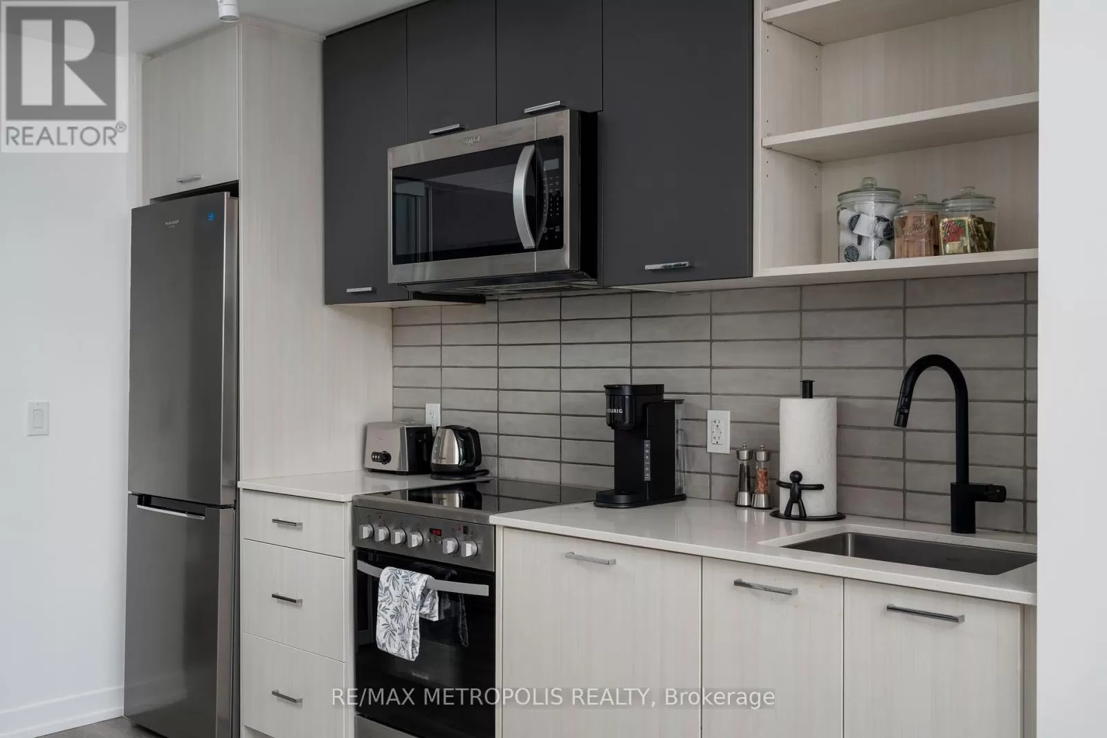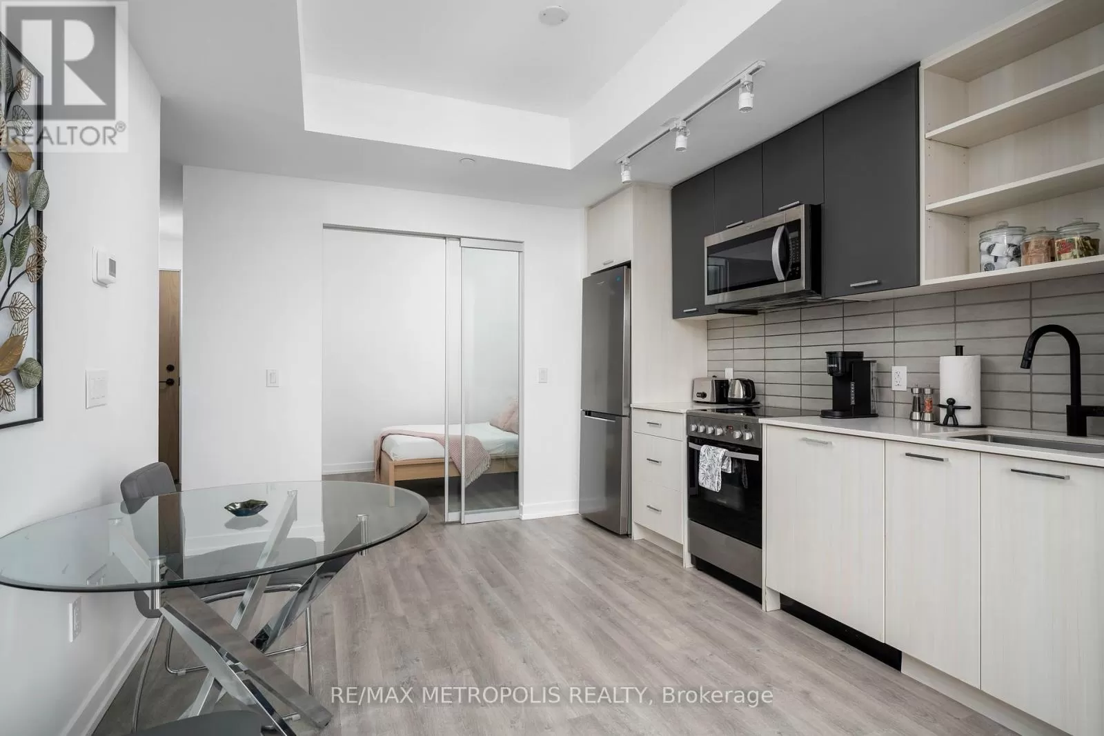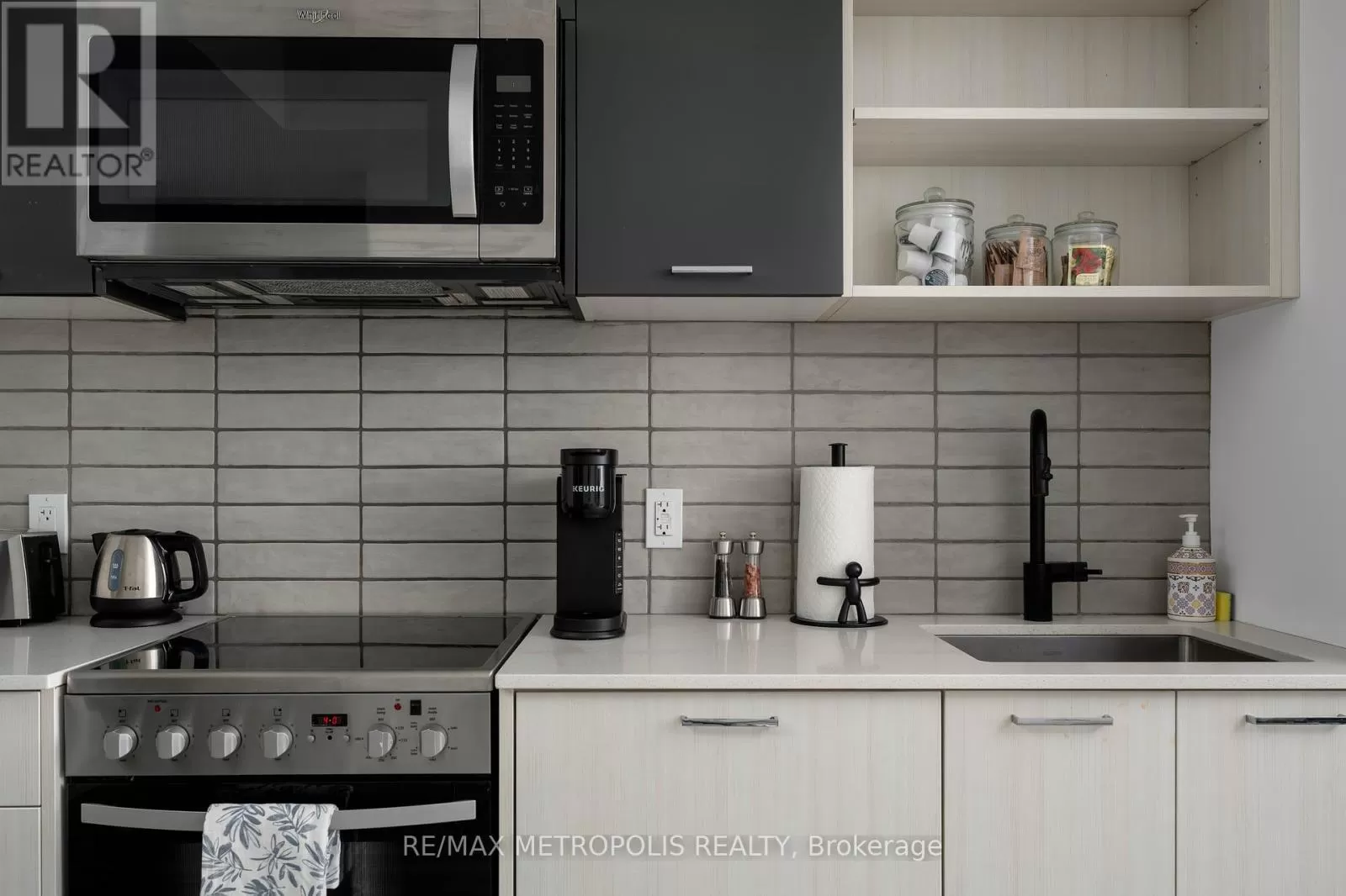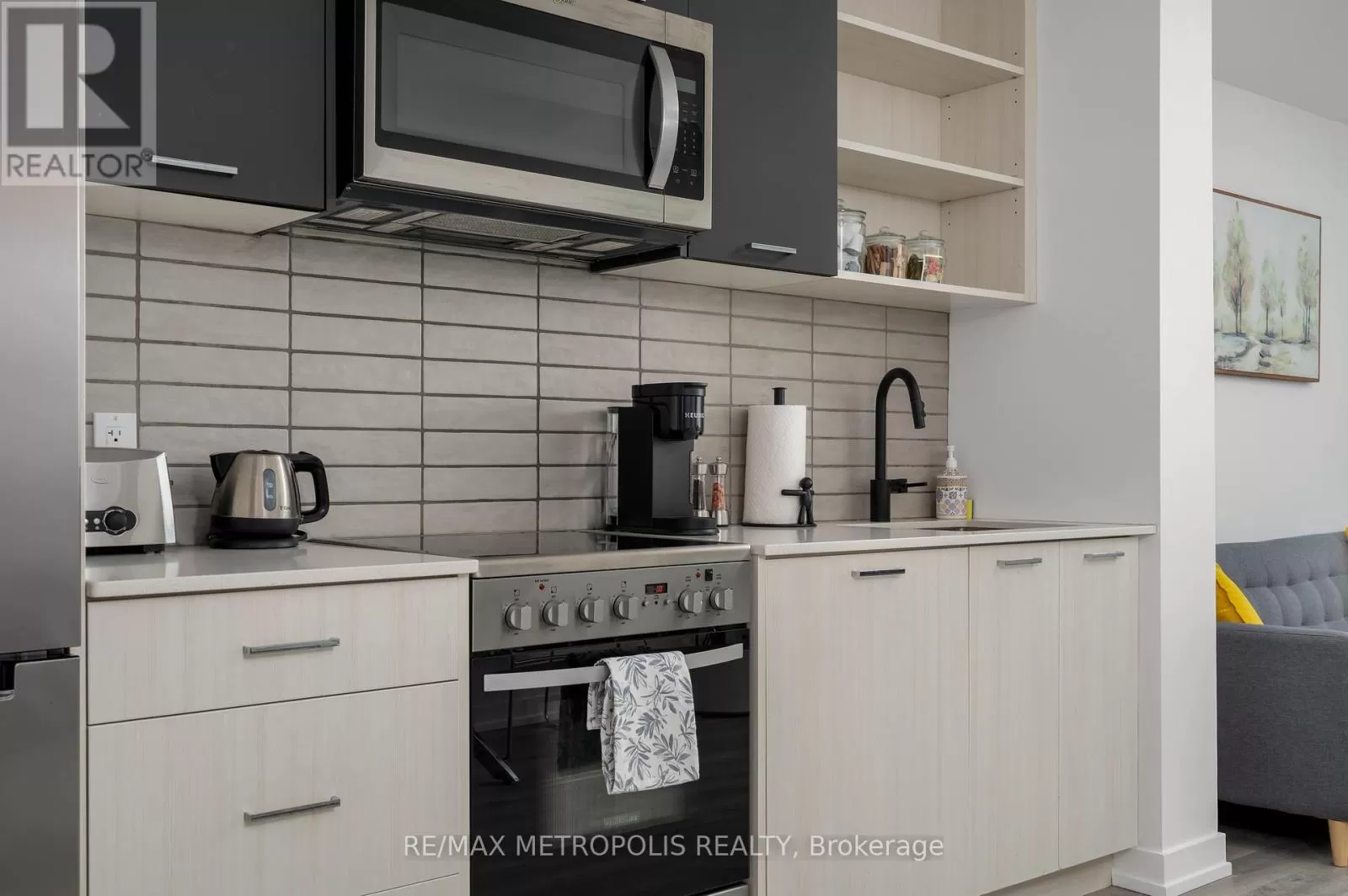 ST CLAIR W / WESTON RD (Open house every Sat/Sun 2-4pm by appointment only.) Welcome to Stockyard Condos by Marlin Spring Developments nestled in the heart of The Junction a prestigious Toronto neighbourhood. Located on the 3rd floor with a South exposure, this spacious 2 bedroom suite offers 607 sq ft of living space, tons of natural light, modern finishes, laminate flooring throughout, ensuite laundry and an open concept balcony to unobstructed city views. The inviting open-concept living and dining areas are perfect for relaxation and entertainment. Enjoy the chef's kitchen that's equipped with contemporary stainless steel appliances, quartz countertops, and a stylish backsplash. The spacious bedroom features a sizeable closet and a walk out to balcony. The second bedroom features sliding doors and convenient closet space. The unit comes with 1 parking space and 1 locker. Building amenities include a 24-hr concierge, gym/exercise room, party/meeting room, outdoor terrace with BBQ area, visitors parking, electric car charging stations, games room and more. Conveniently located near TTC public transit, Stockyards Village, grocery & shopping plazas, restaurants, cafes, parks, banks & other local area amenities. Building allows short-term rentals. Vendor Take Back (VTB) is available. (id:27476)