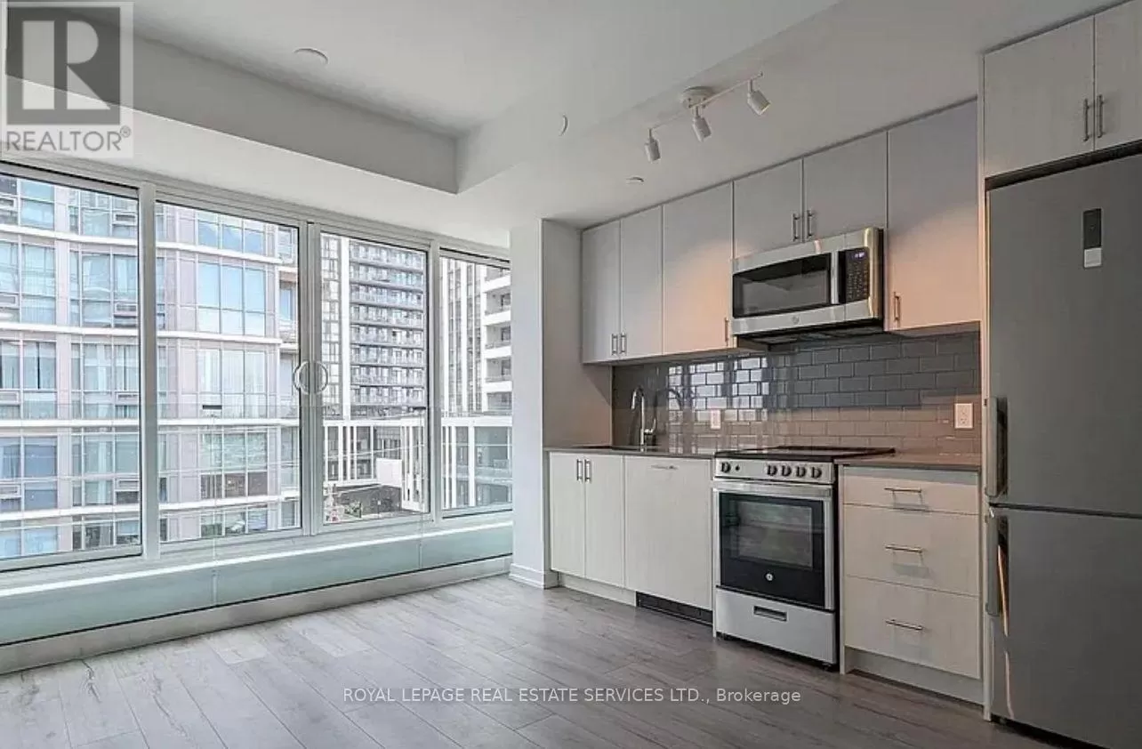 The Queensway and Islington Avenue Welcome to The Tailor Condos where modern elegance meets everyday convenience. This bright and spacious 1+Den, 560 SF suite is thoughtfully designed with soaring ~9ft ceilings, floor-to-ceiling windows, and an open-concept layout that maximizes light and functionality. The sleek kitchen features contemporary cabinetry and integrated appliances, while the versatile den offers the perfect space for a home office, study, or guest area. Located in Etobicoke's fast-growing Queensway community, you'll have gourmet dining, cafés, and everyday essentials at your doorstep with IKEA, Costco, Starbucks, and Sherway Gardens just minutes away. Transit riders will love the quick bus ride to Islington Subway Station, while motorists enjoy seamless access to the Gardiner Expressway and Hwy 427. For leisure, nearby Queensway Park and Lakeshore trails offer plenty of outdoor escapes. (id:27476)
