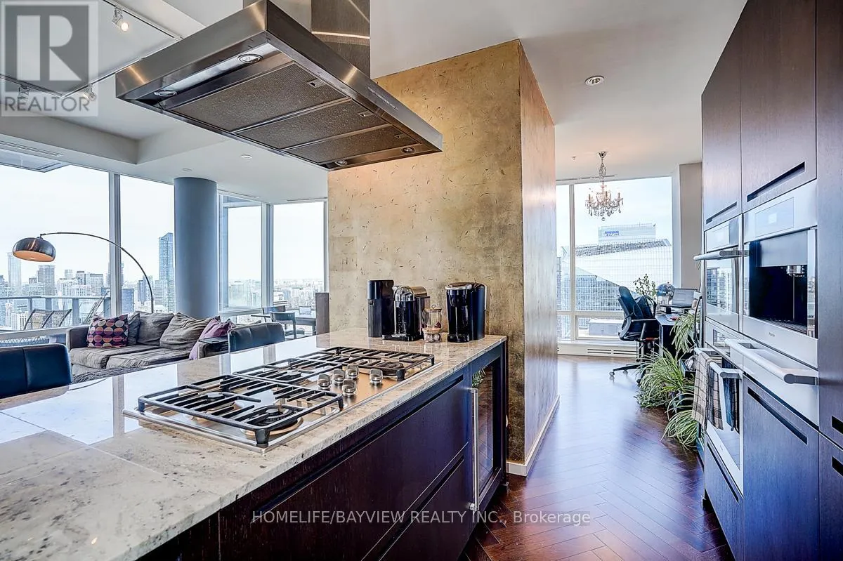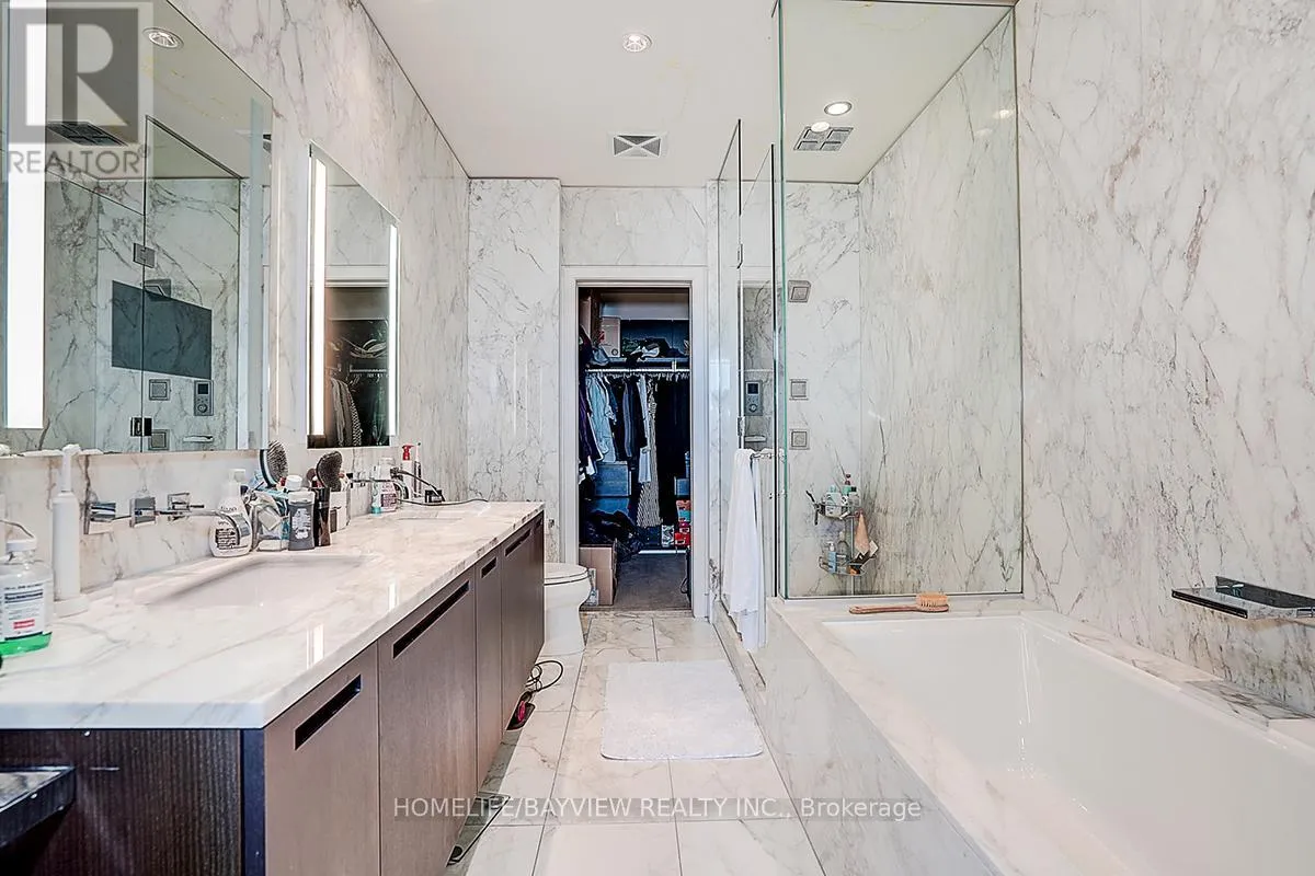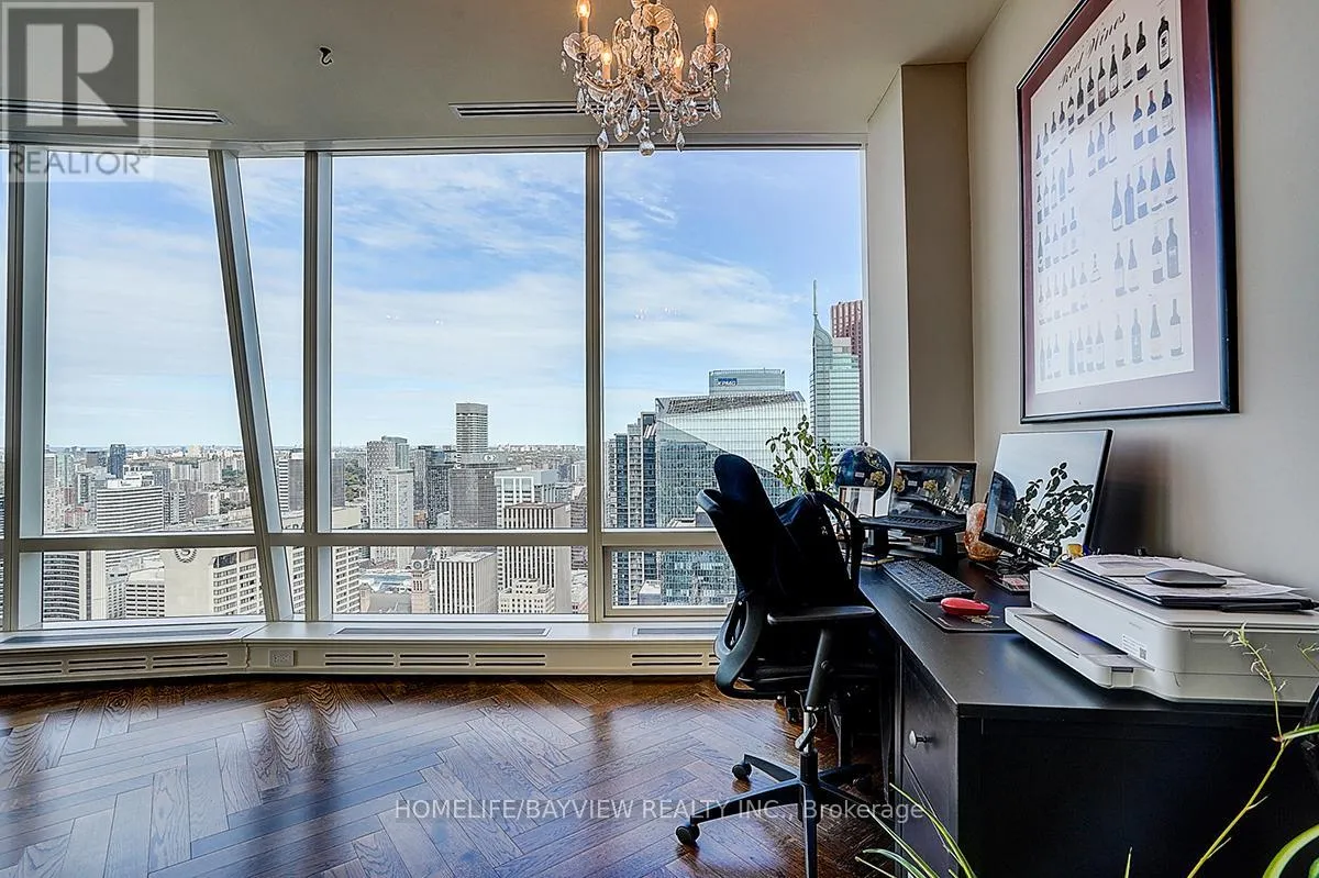 Cross Streets: University & Adelaide. ** Directions: University & Queen. Luxury 2-Bed + Den at Shangri-La TorontoStunning 54th-floor corner suite with panoramic city views, 10 ceilings, automated sunshades, and premium finishes. Features a chefs kitchen with Miele & Sub-Zero appliances, spacious primary suite with marble ensuite & Poliform walk-in, second bedroom with ensuite, and a large den. Includes private 2-car garage, storage, valet, and access to Shangri-Las world-class amenities: pool, fitness centre, sauna, steam room, and chauffeur service. (id:27476)