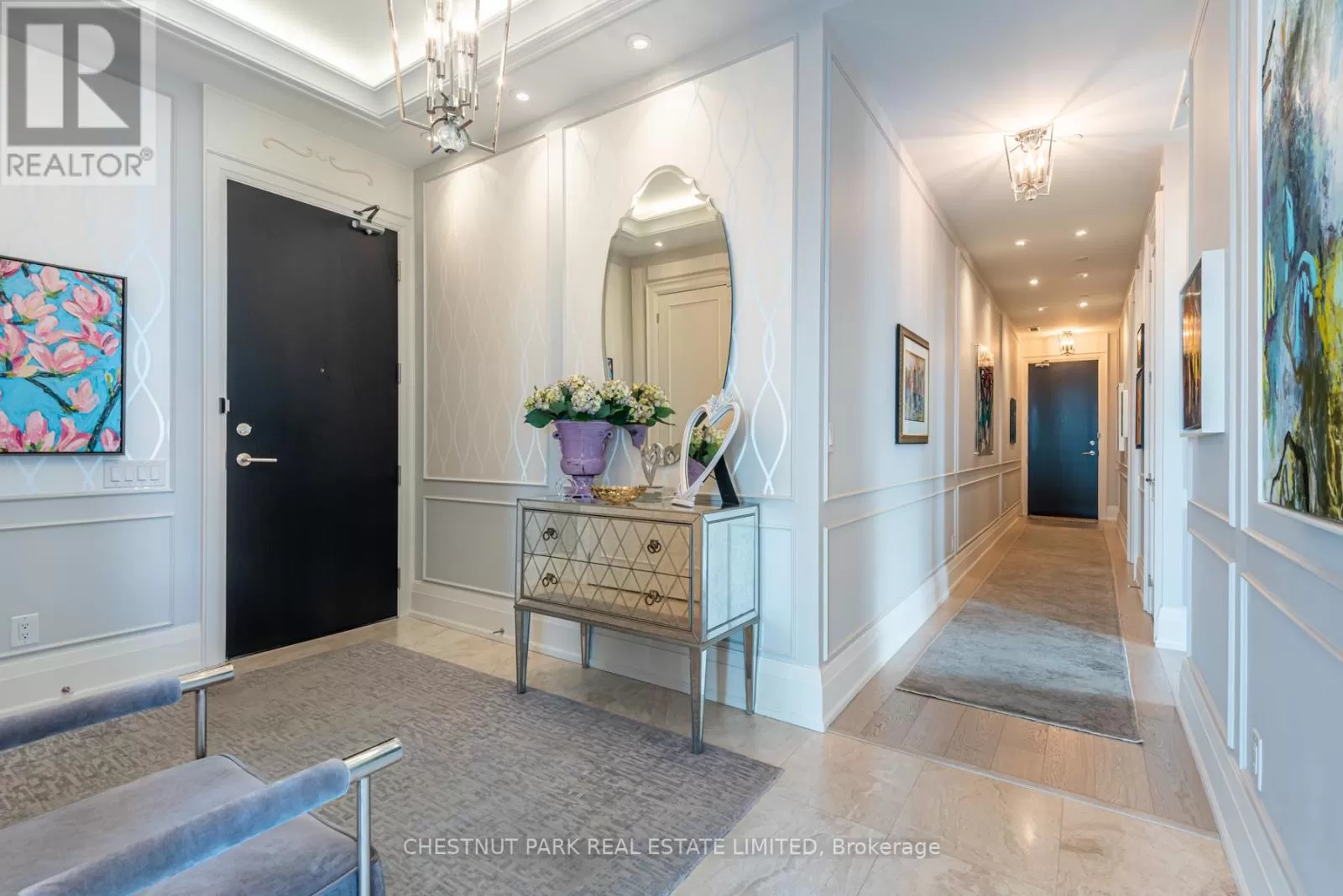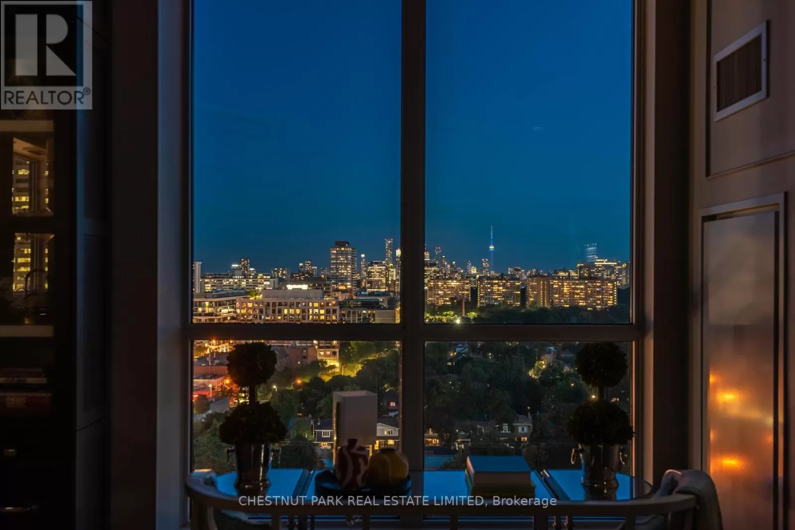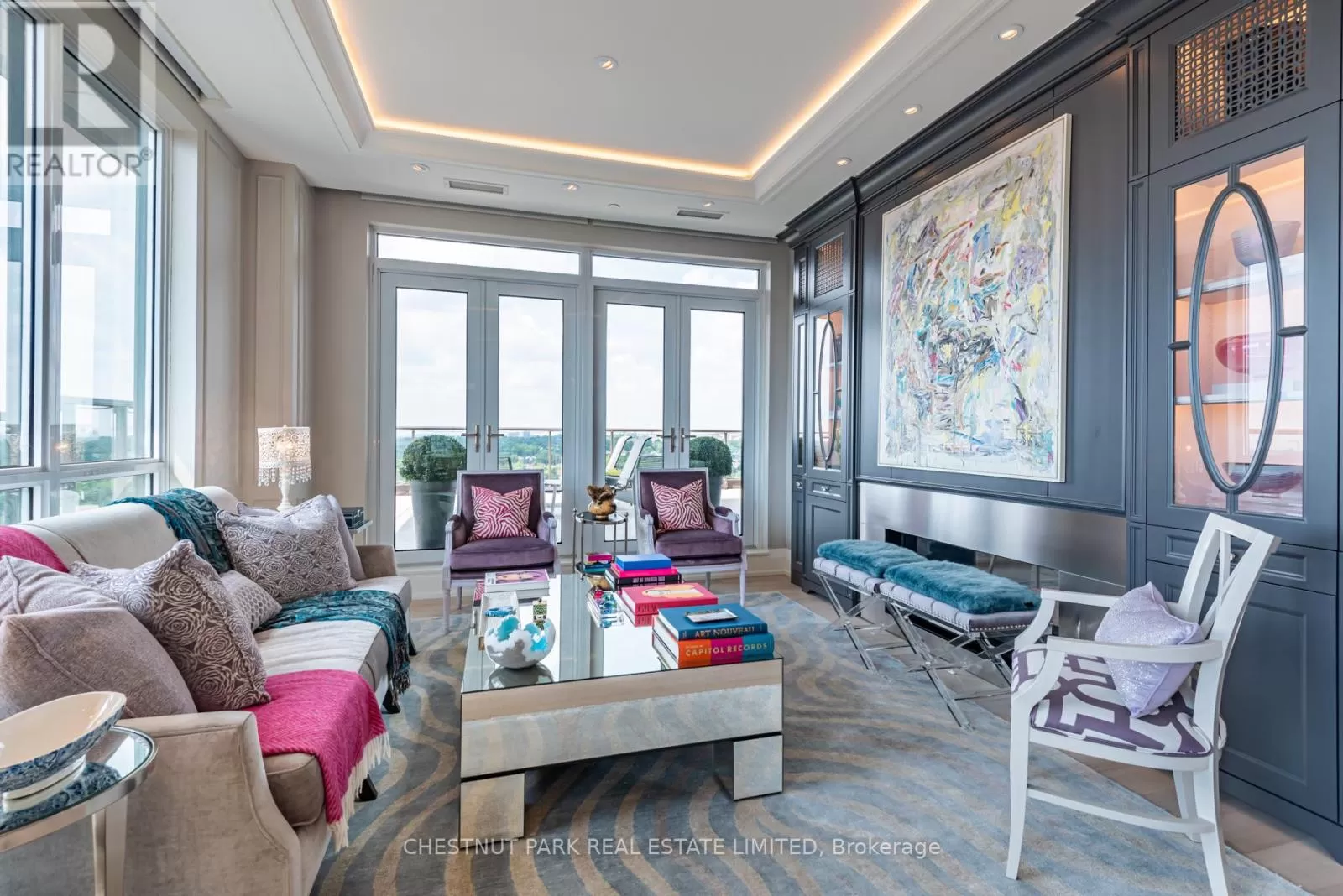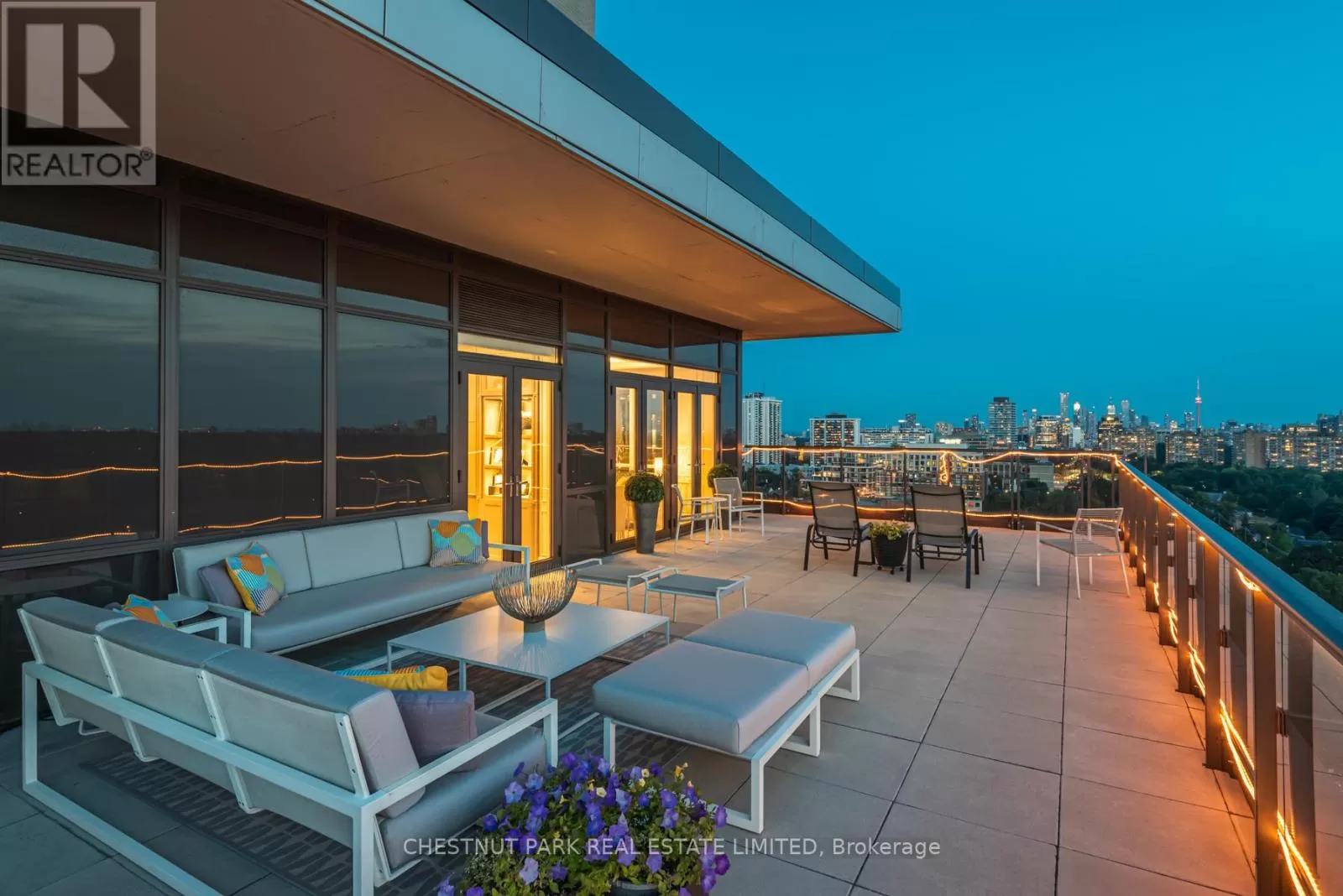 Cross Streets: Yonge & Eglinton Ave. ** Directions: Just south of Eg & West of Yonge. Stunning Midtown Penthouse with sweeping city views of the CN Tower & Lake Ontario. This 2767 sq ft suite is far from typical, with completely customized interiors, 10 ft Ceilings & a breathtaking 1005 sq ft terrace. This space was customized in consultation with the builder & is the designers own home & has been transformed into a one-of-a-kind sanctuary. Enjoy cooking in this exquisite kitchen (built by Paris Kitchens) which offers plenty of storage & an ideal flow with an open concept plan overlooking an eat-in area, & features a dining room that easily accommodates 20. The graciously appointed living areas take advantage of the south-west views in beautifully proportioned rooms. Escape to your private den with its 2-way fireplace. The built-ins & thoughtful details in this suite exude luxury & fine living. Every inch was taken into account & maximizes the space with hidden storage & natural light streaming in from every angle. The primary bedroom retreat features 2 ensuite bathrooms, a custom boudoir & a magnificent walk-in dressing room that has been custom-designed to the highest standard, with built-ins, mirrored panels & lockable drawers. With a total of 3 bedrooms plus a large private den with a walkout to your private terrace, there is plenty of space to accommodate friends & family alike. This suite is an entertainer's dream perched just above the rooftops in Chaplin Estates. The oversized terrace offers breathtaking south-west views & is the perfect spot for hosting an outdoor gathering with a retractable awning & el fresco dining area. Bonus- Midsize building with 3 elevators (221 units). Only 2 units on the PH level & Low Maintenance fees. 24 hr Concierge. 2 Car Parking (1 EV) & 4 Lockers! Custom Home Automation, Custom Recessed Lighting & Sound System. 4 Zone Heating. Spend evenings admiring the CN tower views & stunning sunsets. Truly, this suite is like nothing you have ever seen before. Incomparable quality & design. (id:27476)