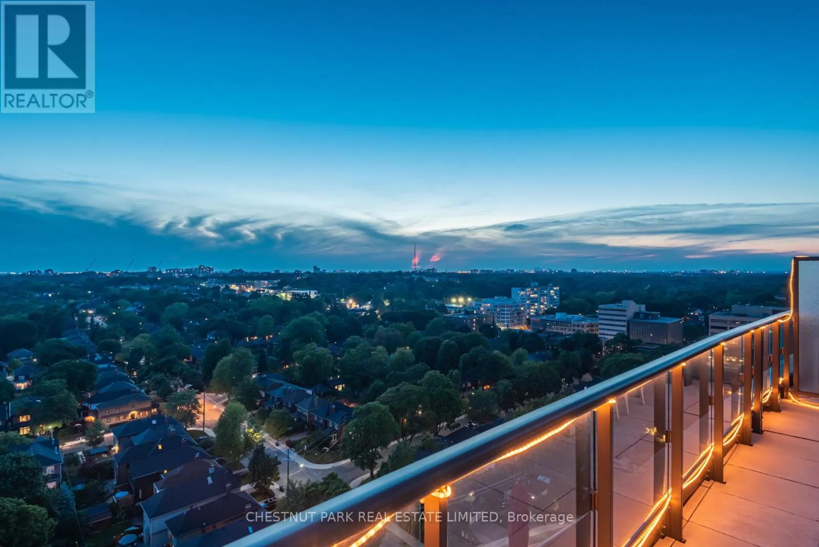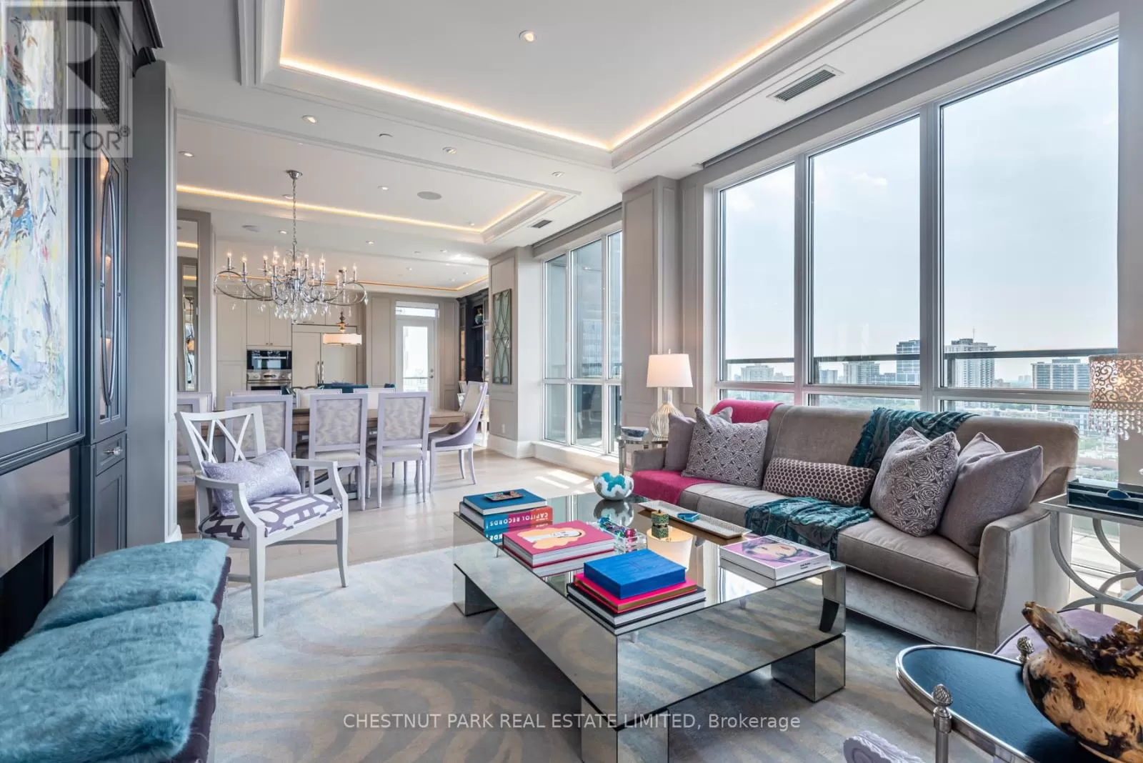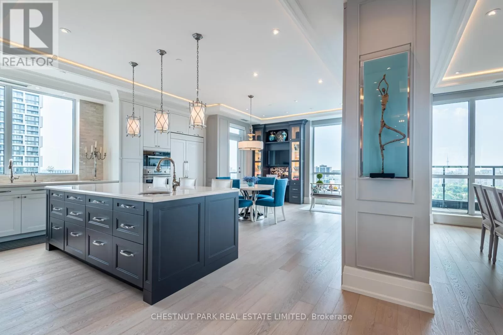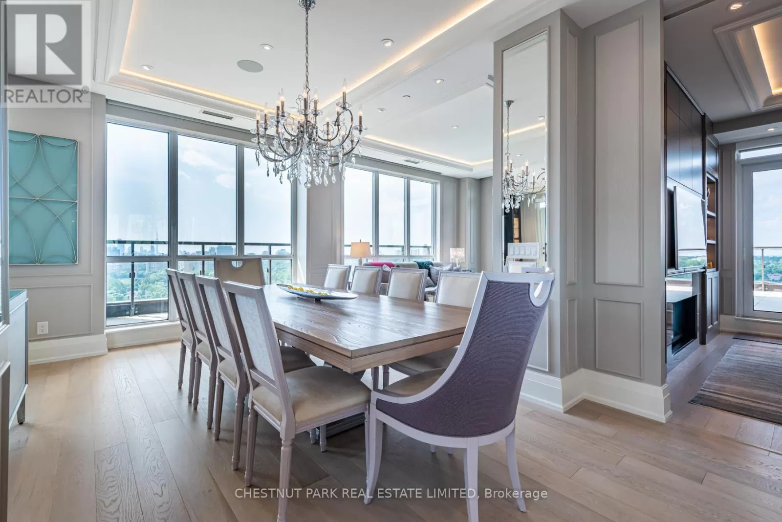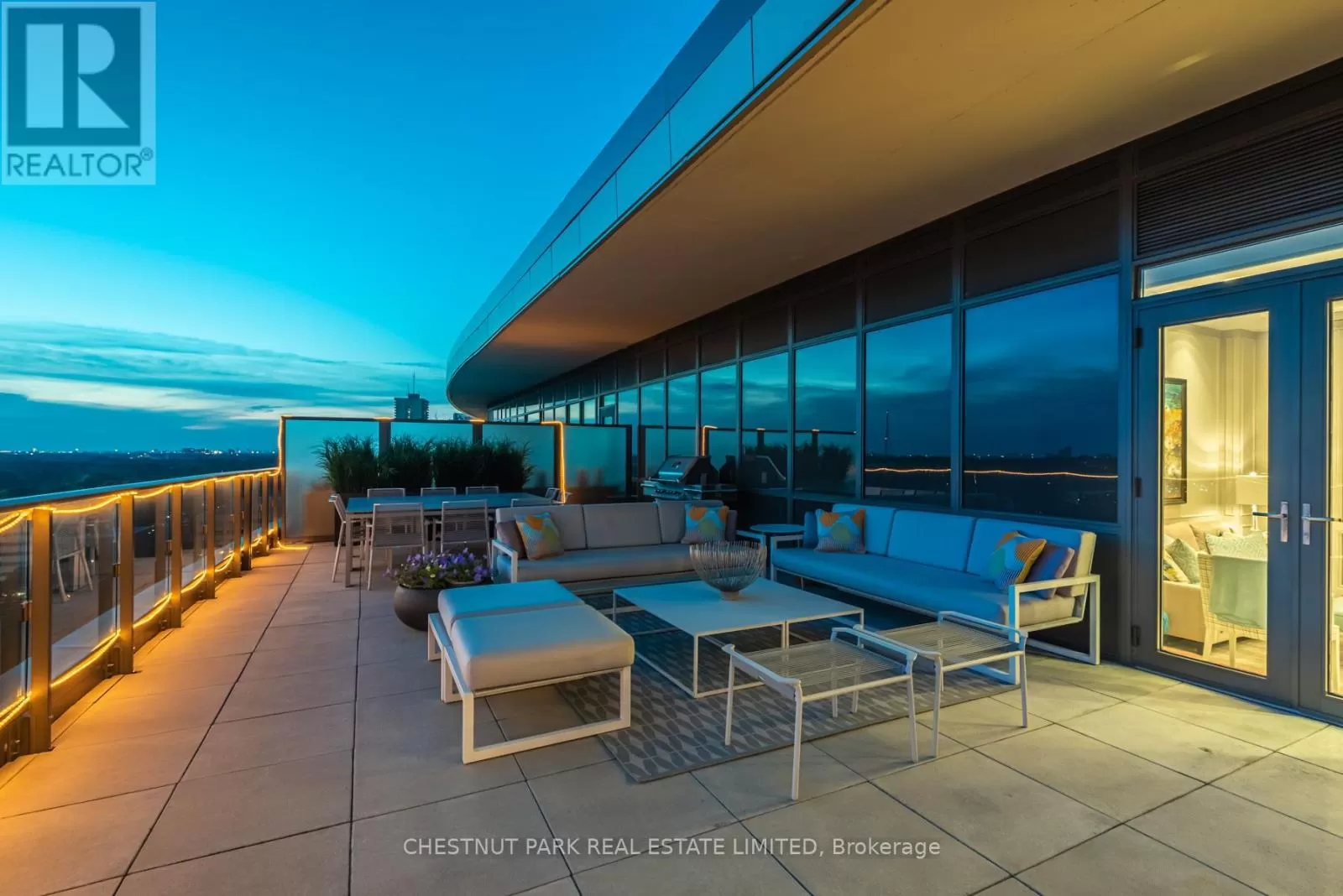 Cross Streets: Yonge & Eglinton Ave. ** Directions: Just south of Eg & West of Yonge. Stunning Midtown Penthouse with sweeping city views of the CN Tower & Lake Ontario. This 2767 sq ft suite is far from typical, with completely customized interiors, 10 ft Ceilings & a breathtaking 1005 sq ft terrace. This space was customized in consultation with the builder & is the designers own home & has been transformed into a one-of-a-kind sanctuary. Enjoy cooking in this exquisite kitchen (built by Paris Kitchens) which offers plenty of storage & an ideal flow with an open concept plan overlooking an eat-in area, & features a dining room that easily accommodates 20. The graciously appointed living areas take advantage of the south-west views in beautifully proportioned rooms. Escape to your private den with its 2-way fireplace. The built-ins & thoughtful details in this suite exude luxury & fine living. Every inch was taken into account & maximizes the space with hidden storage & natural light streaming in from every angle. The primary bedroom retreat features 2 ensuite bathrooms, a custom boudoir & a magnificent walk-in dressing room that has been custom-designed to the highest standard, with built-ins, mirrored panels & lockable drawers. With a total of 3 bedrooms plus a large private den with a walkout to your private terrace, there is plenty of space to accommodate friends & family alike. This suite is an entertainer's dream perched just above the rooftops in Chaplin Estates. The oversized terrace offers breathtaking south-west views & is the perfect spot for hosting an outdoor gathering with a retractable awning & el fresco dining area. Bonus- Midsize building with 3 elevators (221 units). Only 2 units on the PH level & Low Maintenance fees. 24 hr Concierge. 2 Car Parking (1 EV) & 4 Lockers! Custom Home Automation, Custom Recessed Lighting & Sound System. 4 Zone Heating. Spend evenings admiring the CN tower views & stunning sunsets. Truly, this suite is like nothing you have ever seen before. Incomparable quality & design. (id:27476)