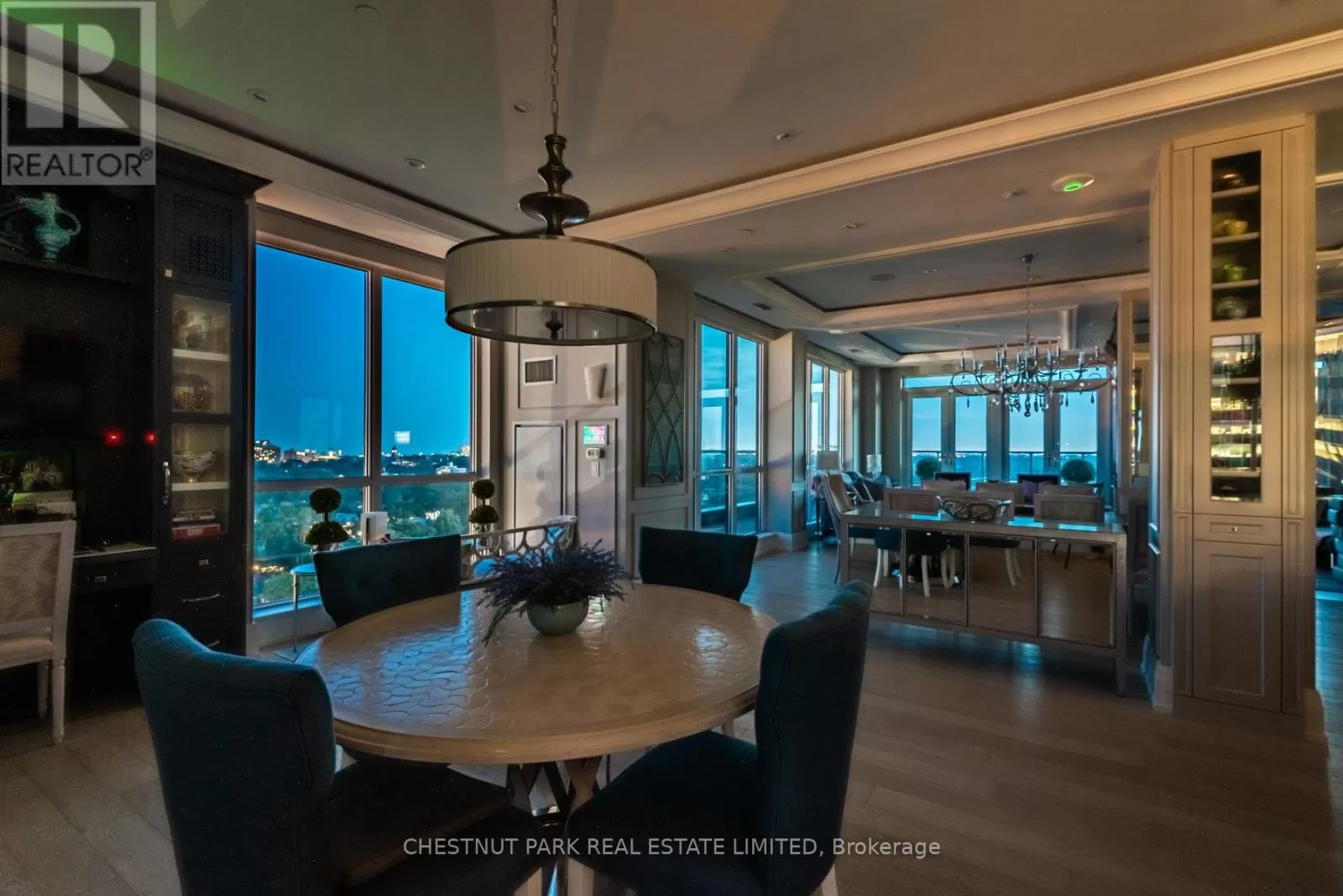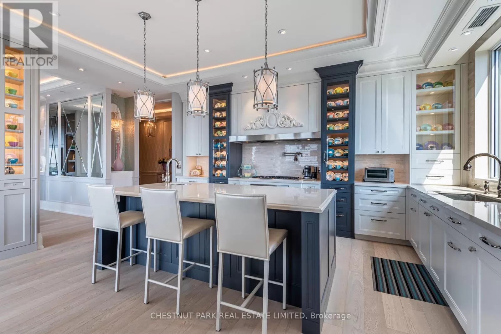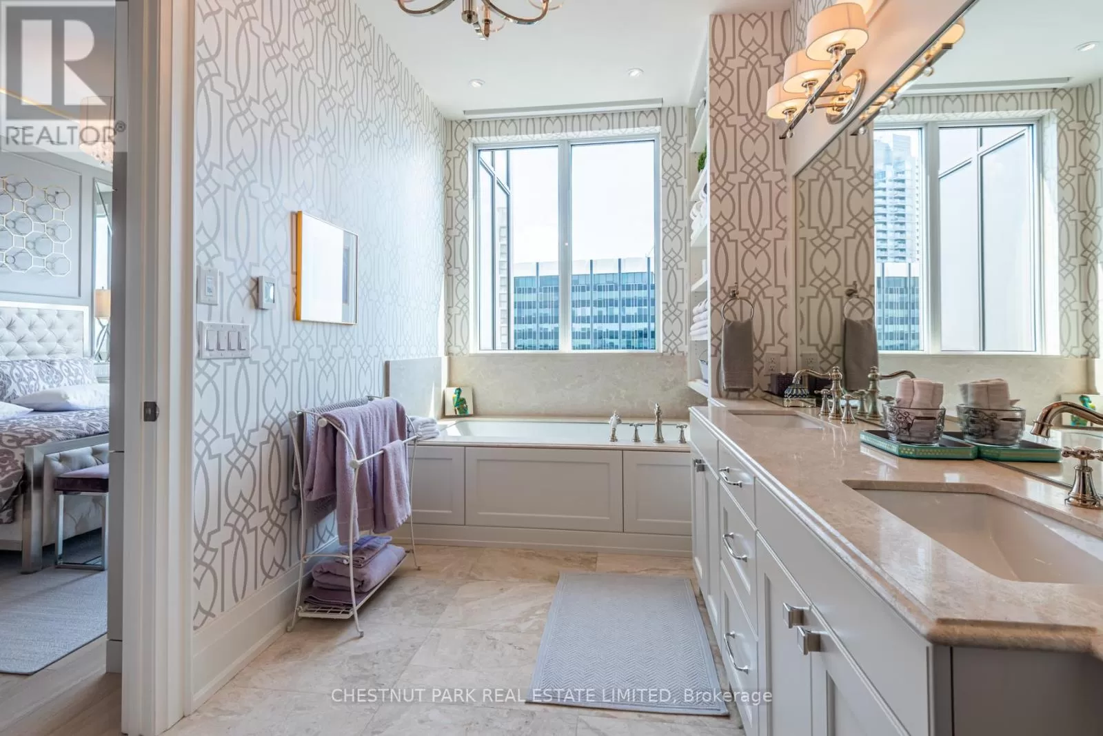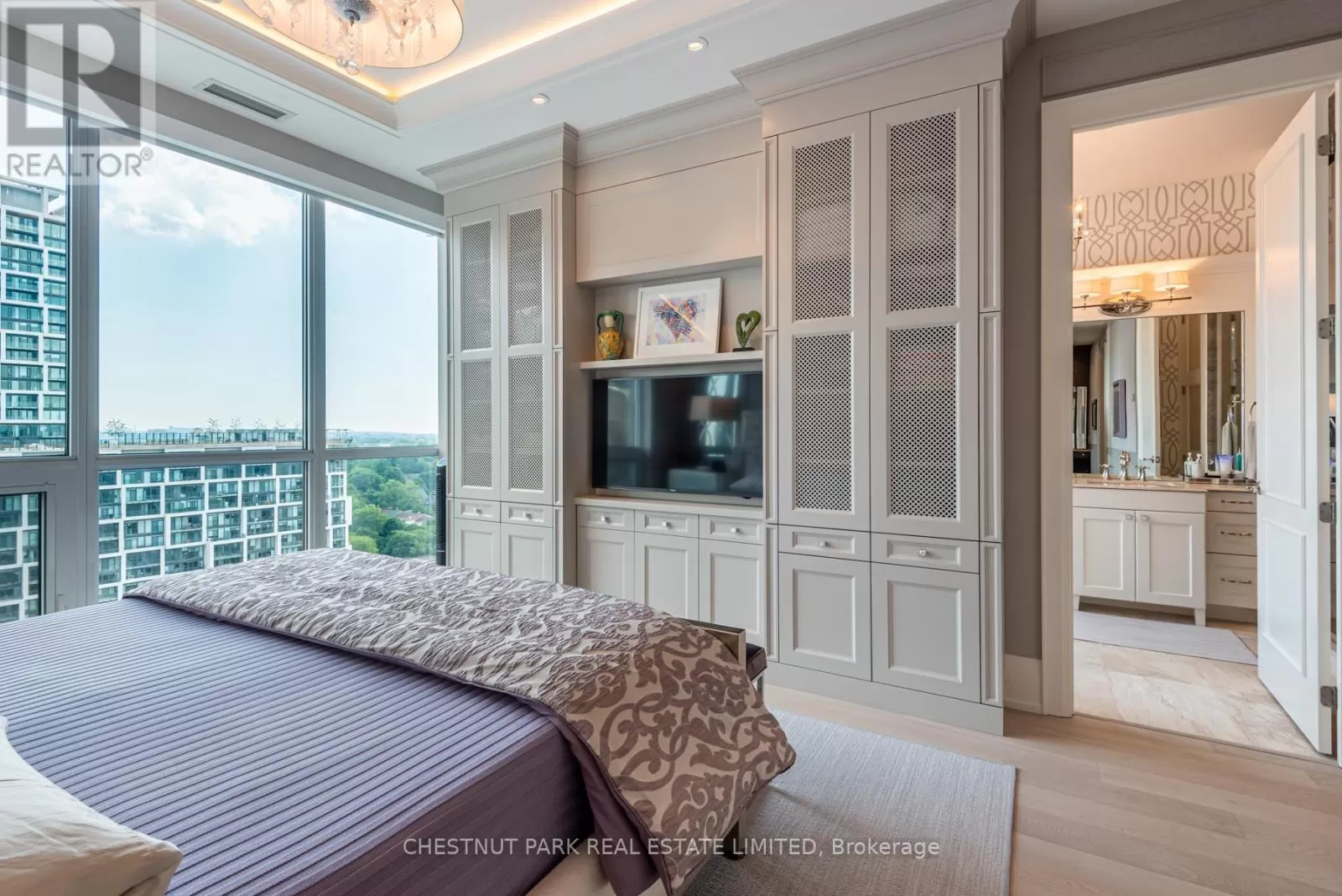 Cross Streets: Yonge & Eglinton Ave. ** Directions: Just south of Eg & West of Yonge. Stunning Midtown Penthouse with sweeping city views of the CN Tower & Lake Ontario. This 2767 sq ft suite is far from typical, with completely customized interiors, 10 ft Ceilings & a breathtaking 1005 sq ft terrace. This space was customized in consultation with the builder & is the designers own home & has been transformed into a one-of-a-kind sanctuary. Enjoy cooking in this exquisite kitchen (built by Paris Kitchens) which offers plenty of storage & an ideal flow with an open concept plan overlooking an eat-in area, & features a dining room that easily accommodates 20. The graciously appointed living areas take advantage of the south-west views in beautifully proportioned rooms. Escape to your private den with its 2-way fireplace. The built-ins & thoughtful details in this suite exude luxury & fine living. Every inch was taken into account & maximizes the space with hidden storage & natural light streaming in from every angle. The primary bedroom retreat features 2 ensuite bathrooms, a custom boudoir & a magnificent walk-in dressing room that has been custom-designed to the highest standard, with built-ins, mirrored panels & lockable drawers. With a total of 3 bedrooms plus a large private den with a walkout to your private terrace, there is plenty of space to accommodate friends & family alike. This suite is an entertainer's dream perched just above the rooftops in Chaplin Estates. The oversized terrace offers breathtaking south-west views & is the perfect spot for hosting an outdoor gathering with a retractable awning & el fresco dining area. Bonus- Midsize building with 3 elevators (221 units). Only 2 units on the PH level & Low Maintenance fees. 24 hr Concierge. 2 Car Parking (1 EV) & 4 Lockers! Custom Home Automation, Custom Recessed Lighting & Sound System. 4 Zone Heating. Spend evenings admiring the CN tower views & stunning sunsets. Truly, this suite is like nothing you have ever seen before. Incomparable quality & design. (id:27476)