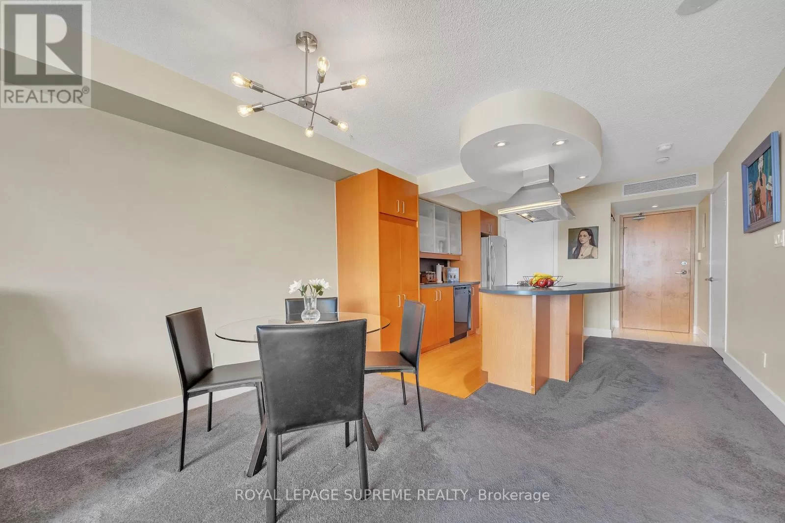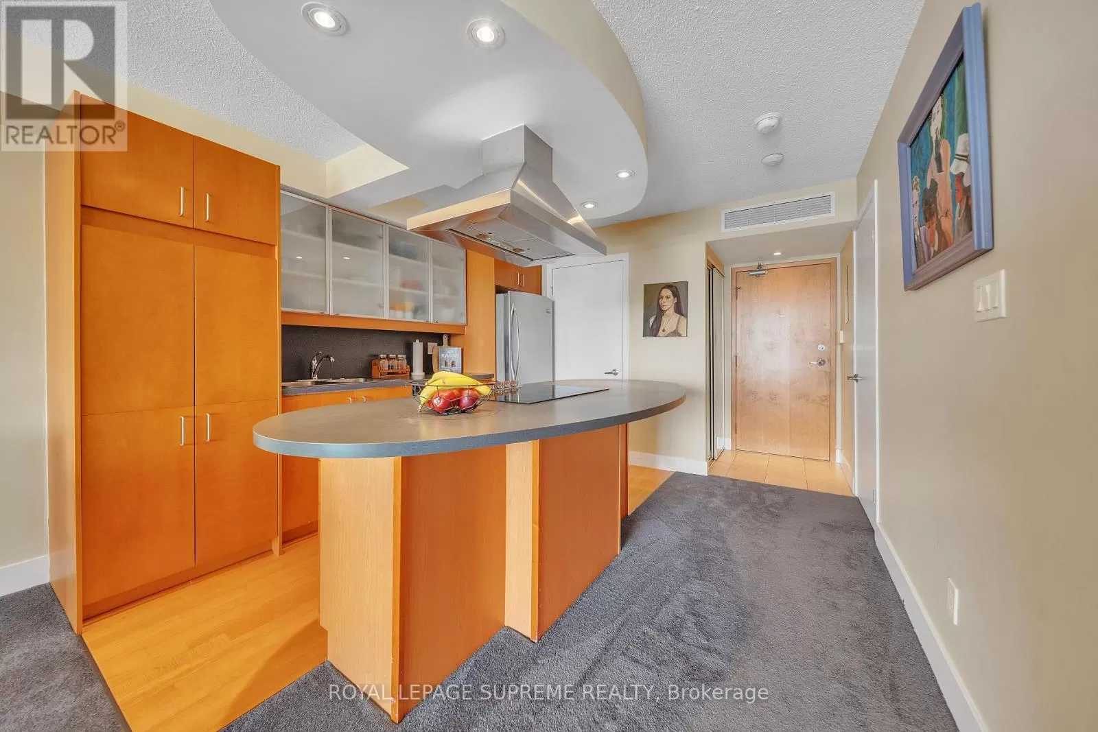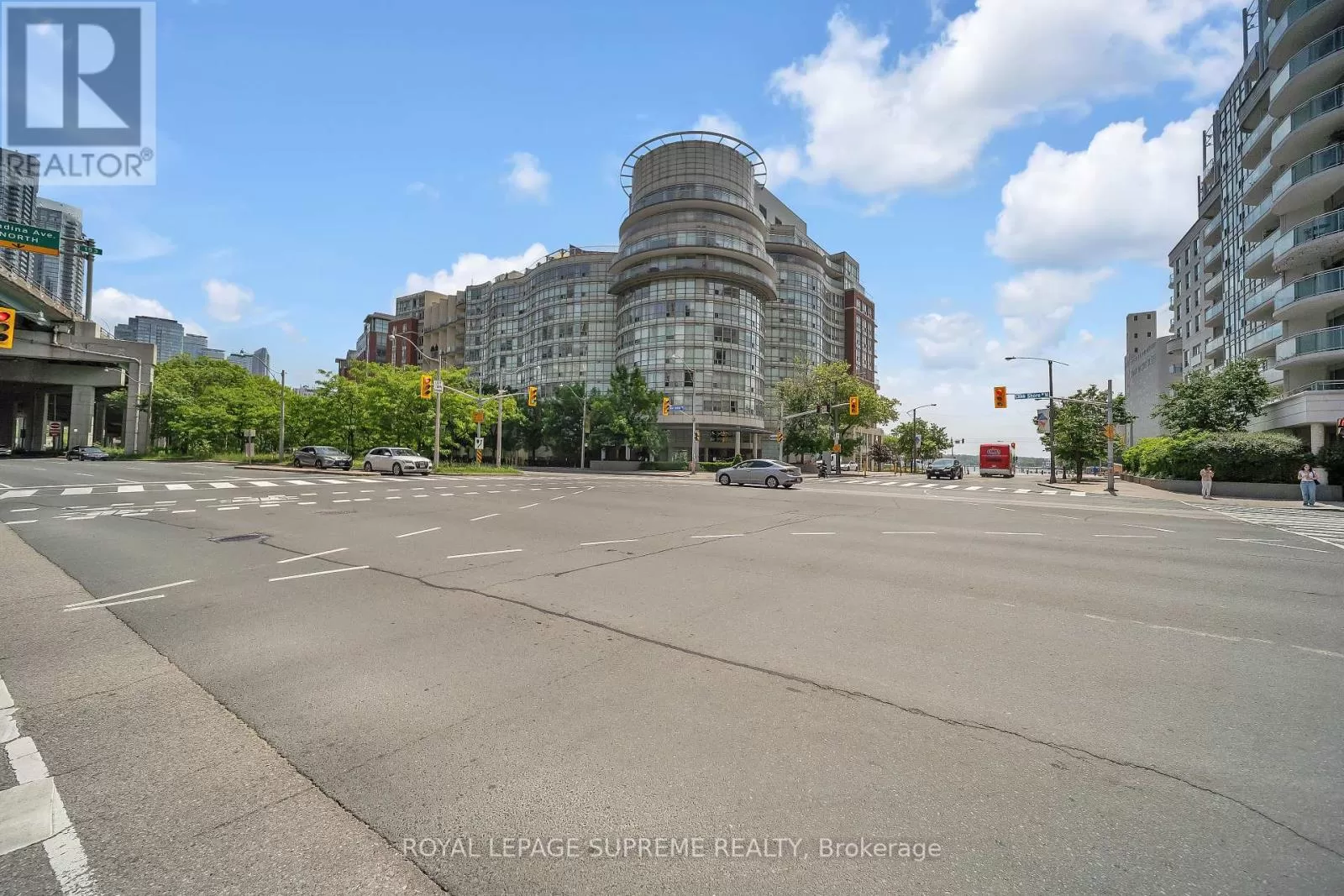 Bathurst St & Queens Quay W Step into elevated urban elegance with this sophisticated one-bedroom plus den residence, an oasis in the sky that redefines luxury living. Immaculately curated and freshly refined, this sun-kissed suite unfolds in a gracious open-concept design, offering a seamless fusion of form and function. Enveloped in floor-to-ceiling windows, every corner of the home is bathed in natural light, framing sweeping, unobstructed vistas of the shimmering lake, lush marina, and the glittering city skyline beyond, a visual symphony to behold. The gourmet kitchen is a refined culinary escape, complete with premium appliances and a spacious breakfast bar that transitions effortlessly into the grand living and dining salons. Whether hosting soirees or indulging in quiet moments, the flow of the space caters to both effortless entertaining and serene everyday cozy living.The primary suite is a private sanctuary, featuring spa-inspired finishes, elegant lighting, and a custom-fitted wardrobe. The versatile den offers flexibility as a refined work-from-home office or guest retreat. Step outside onto the private balcony to savour waterfront living, a front-row seat to sunrises over the harbour.Situated within an intimate, impeccably managed boutique building, residents are indulged with curated amenities: a designer fitness centre, glamorous party lounge, 24-hour concierge, luxury guest accommodations, visitor parking, and a rooftop terrace that rivals five-star resorts, complete with al fresco dining areas and panoramic lakefront views. Moments from Toronto's vibrant cultural heart with effortless access to the Financial District, Scotiabank Arena, Rogers Centre, Harbourfront, and Billy Bishop Airport. This rare offering includes one premium parking space and a private locker. A true gem for the discerning buyer seeking timeless sophistication with a view. Now accepting viewings for those ready to elevate their lifestyle. (id:27476)