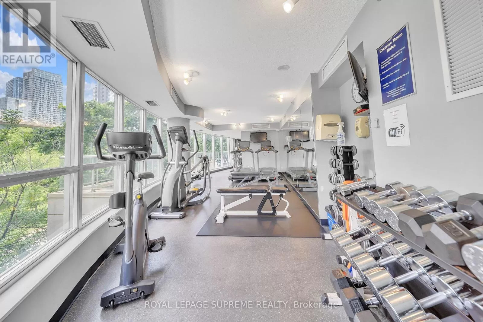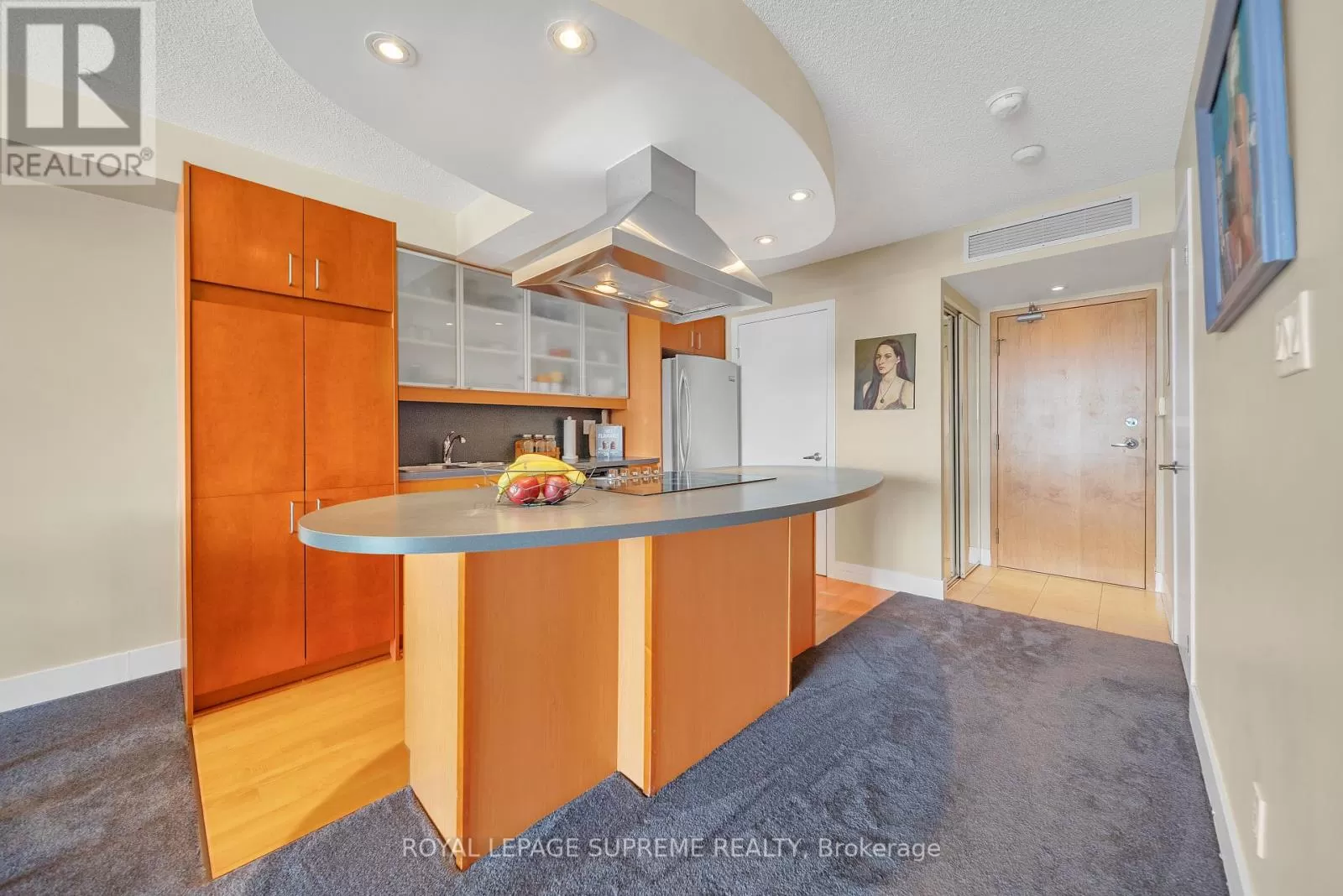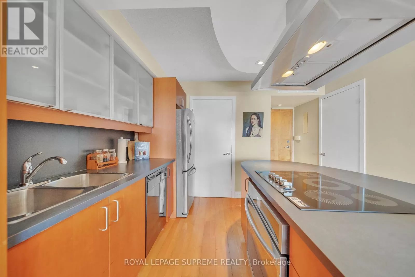 Bathurst St & Queens Quay W Step into elevated urban elegance with this sophisticated one-bedroom plus den residence, an oasis in the sky that redefines luxury living. Immaculately curated and freshly refined, this sun-kissed suite unfolds in a gracious open-concept design, offering a seamless fusion of form and function. Enveloped in floor-to-ceiling windows, every corner of the home is bathed in natural light, framing sweeping, unobstructed vistas of the shimmering lake, lush marina, and the glittering city skyline beyond, a visual symphony to behold. The gourmet kitchen is a refined culinary escape, complete with premium appliances and a spacious breakfast bar that transitions effortlessly into the grand living and dining salons. Whether hosting soirees or indulging in quiet moments, the flow of the space caters to both effortless entertaining and serene everyday cozy living.The primary suite is a private sanctuary, featuring spa-inspired finishes, elegant lighting, and a custom-fitted wardrobe. The versatile den offers flexibility as a refined work-from-home office or guest retreat. Step outside onto the private balcony to savour waterfront living, a front-row seat to sunrises over the harbour.Situated within an intimate, impeccably managed boutique building, residents are indulged with curated amenities: a designer fitness centre, glamorous party lounge, 24-hour concierge, luxury guest accommodations, visitor parking, and a rooftop terrace that rivals five-star resorts, complete with al fresco dining areas and panoramic lakefront views. Moments from Toronto's vibrant cultural heart with effortless access to the Financial District, Scotiabank Arena, Rogers Centre, Harbourfront, and Billy Bishop Airport. This rare offering includes one premium parking space and a private locker. A true gem for the discerning buyer seeking timeless sophistication with a view. Now accepting viewings for those ready to elevate their lifestyle. (id:27476)