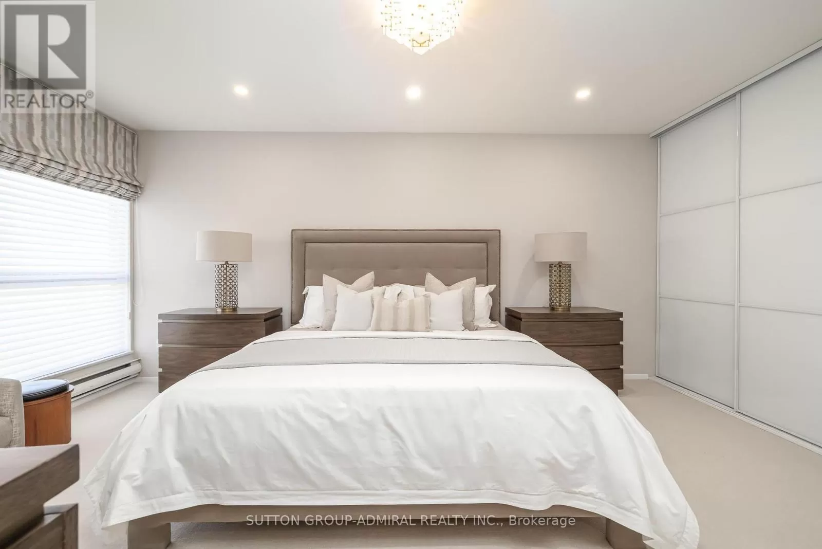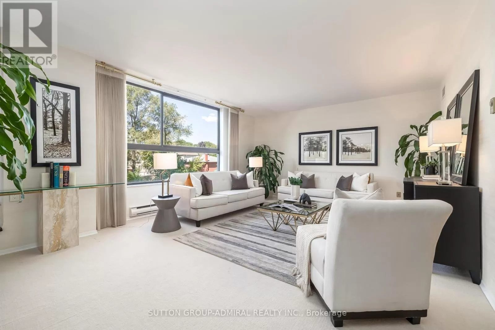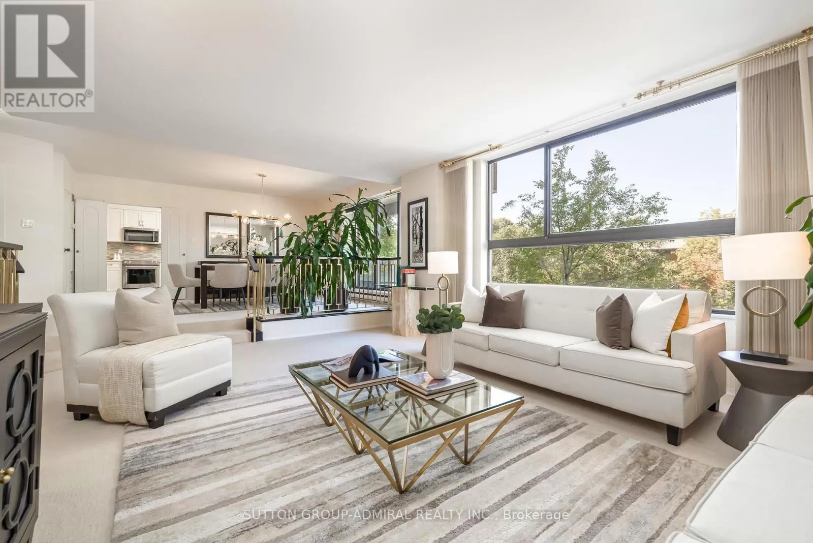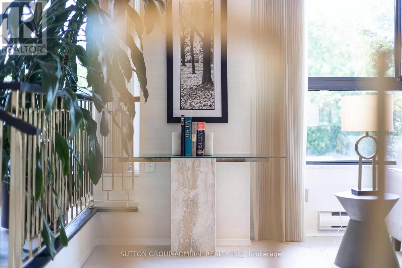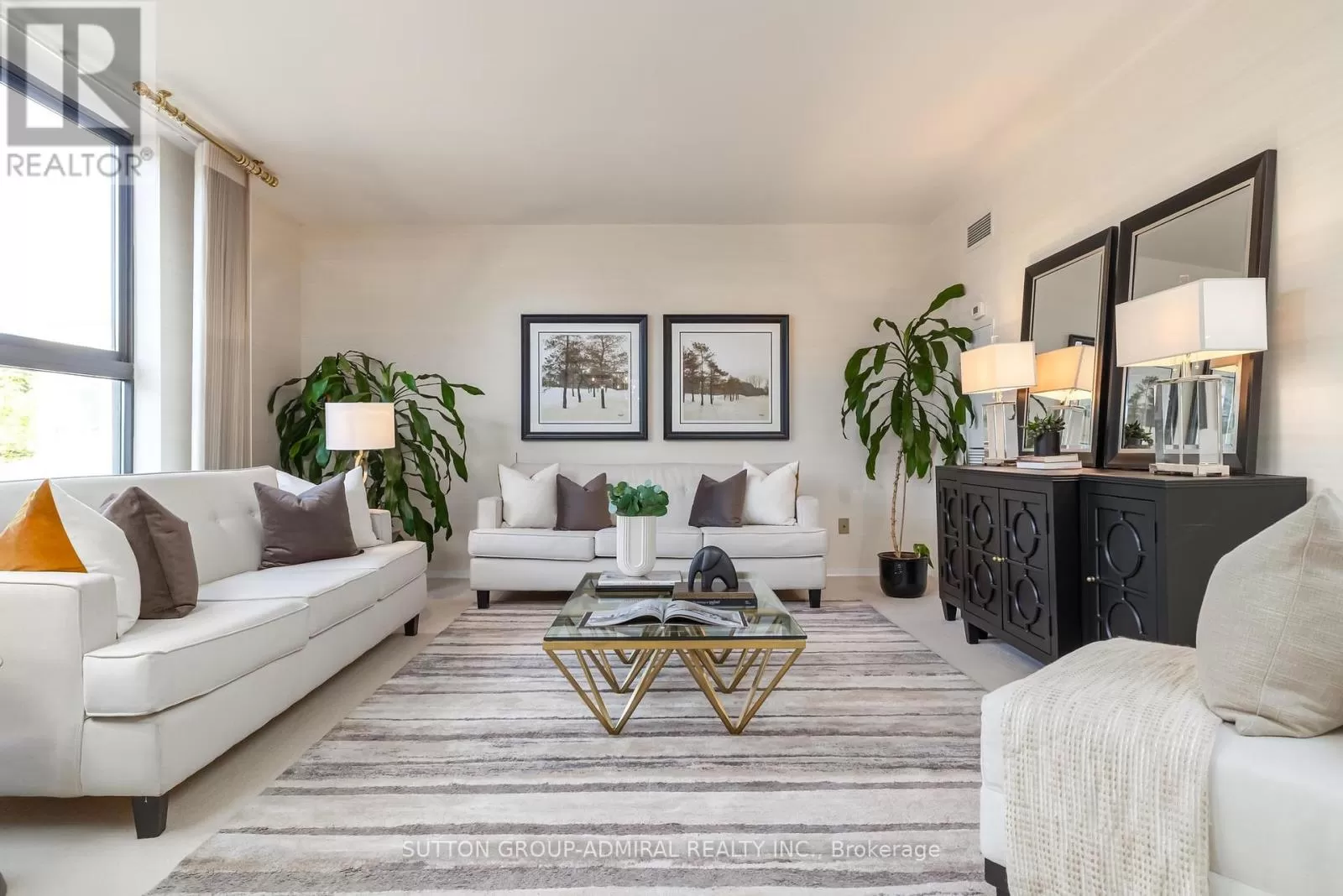 Bathurst And Eglinton This fully renovated residence offers a sophisticated blend of style and comfort in a boutique building with just three units per floor. Sunlit interiors feature smooth ceilings, designer broadloom from ELTE, and beautifully updated bathrooms with marble finishes, custom cabinetry, and high-end fixtures. The spacious kitchen includes a dedicated breakfast area, while the second bedroom showcases custom solid wood built-ins for both beauty and functionality. The large laundry room is fitted with wall to wall cabinetry for storage. Enjoy seamless indoor-outdoor living with a huge private balcony and easy guest parking. The building itself has been tastefully updated throughout, offering a welcoming and refined environment. Very well managed. Ideally located with excellent access to top schools, shopping, synagogues, transit, walking paths, and trails, this home combines modern elegance with unmatched convenience. 2 car parking and locker. (id:27476)