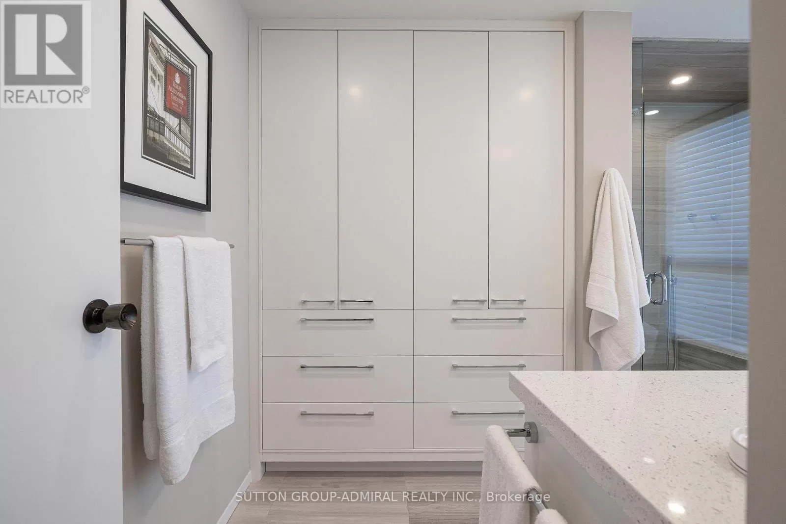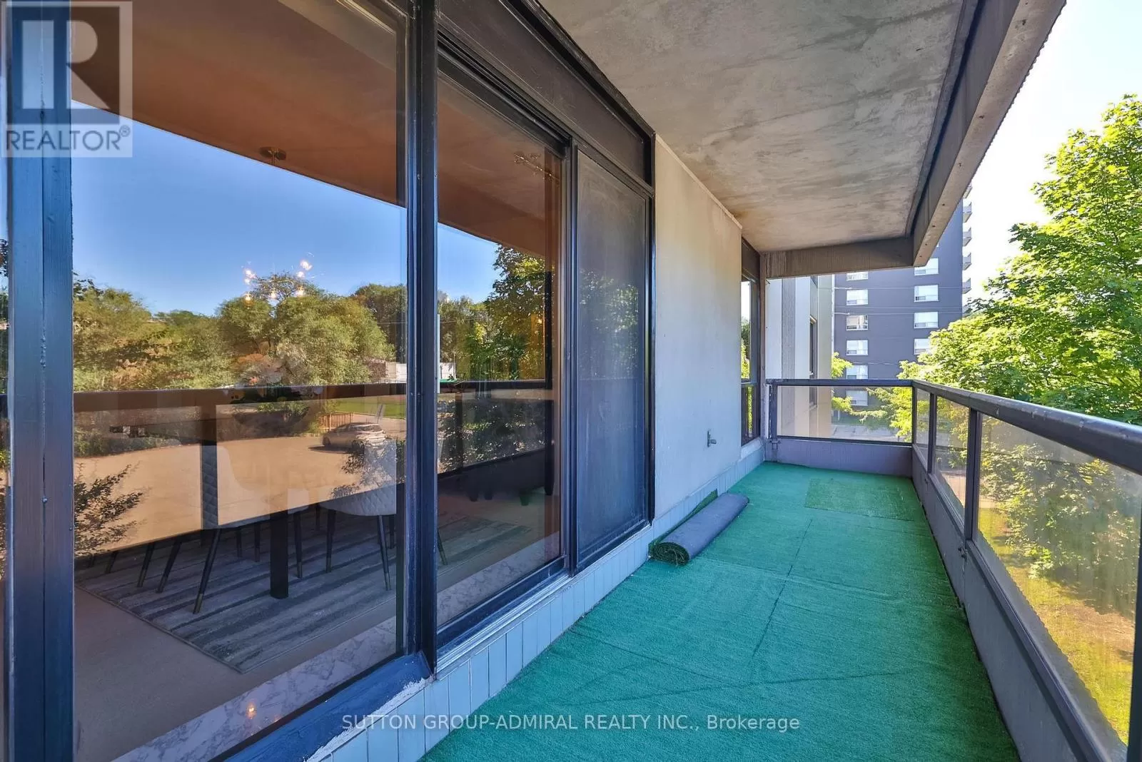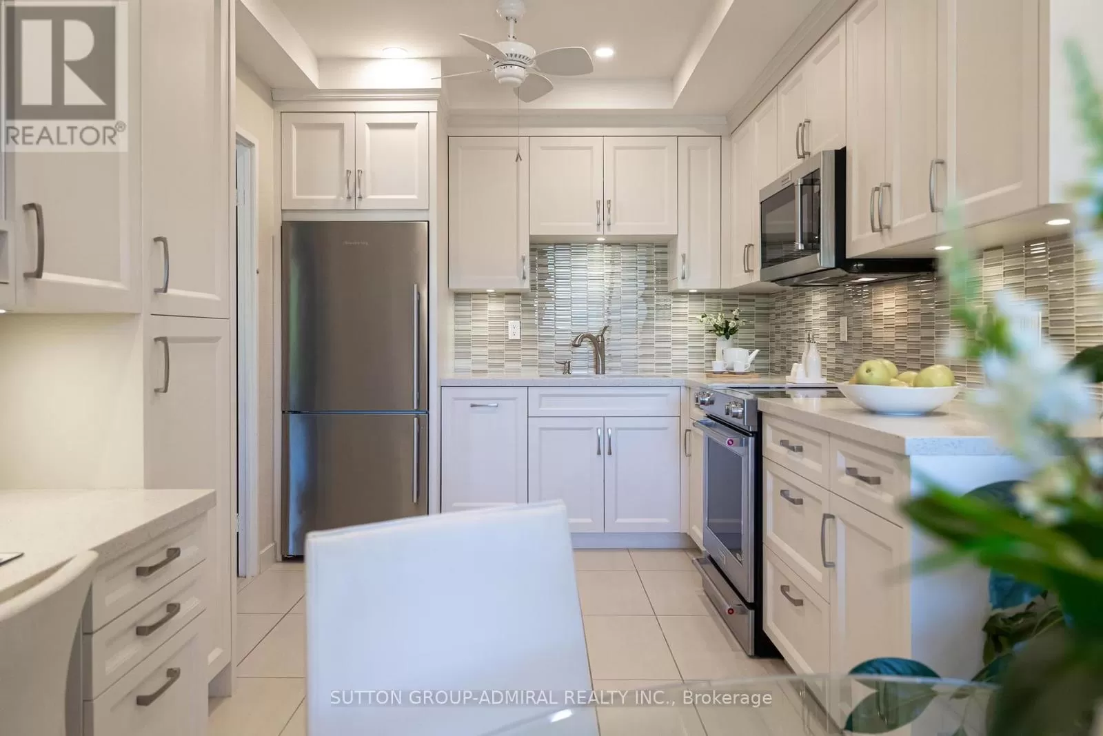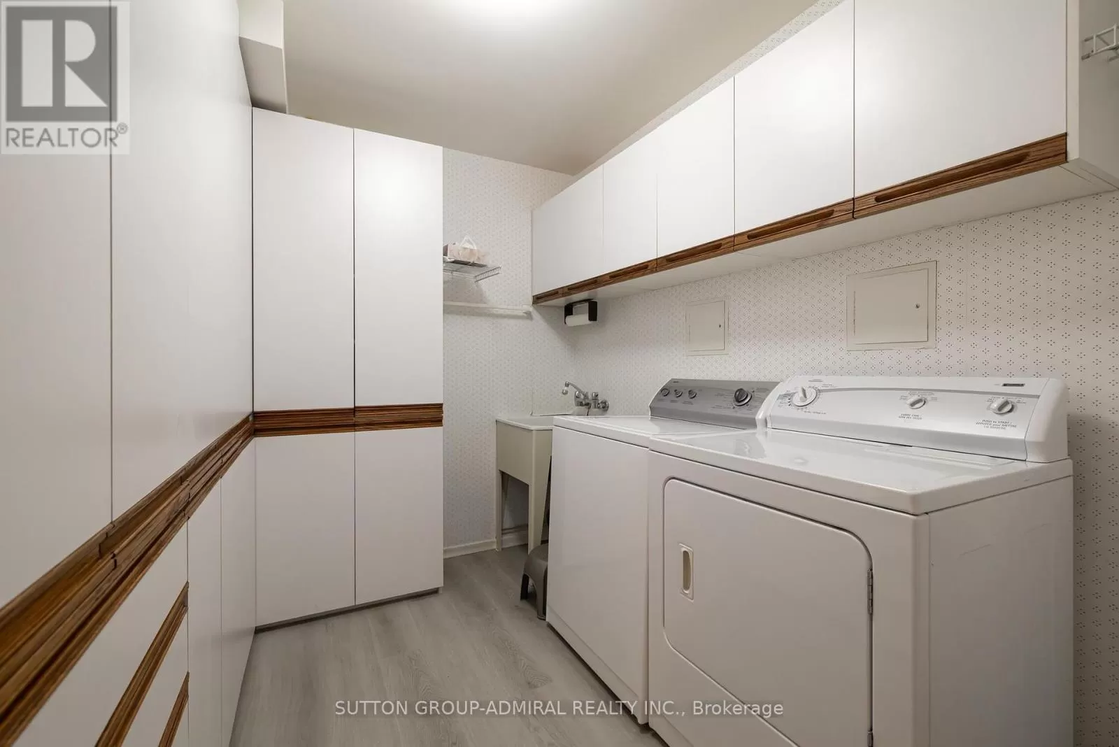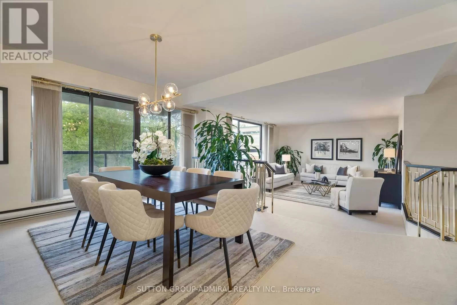 Bathurst And Eglinton This fully renovated residence offers a sophisticated blend of style and comfort in a boutique building with just three units per floor. Sunlit interiors feature smooth ceilings, designer broadloom from ELTE, and beautifully updated bathrooms with marble finishes, custom cabinetry, and high-end fixtures. The spacious kitchen includes a dedicated breakfast area, while the second bedroom showcases custom solid wood built-ins for both beauty and functionality. The large laundry room is fitted with wall to wall cabinetry for storage. Enjoy seamless indoor-outdoor living with a huge private balcony and easy guest parking. The building itself has been tastefully updated throughout, offering a welcoming and refined environment. Very well managed. Ideally located with excellent access to top schools, shopping, synagogues, transit, walking paths, and trails, this home combines modern elegance with unmatched convenience. 2 car parking and locker. (id:27476)