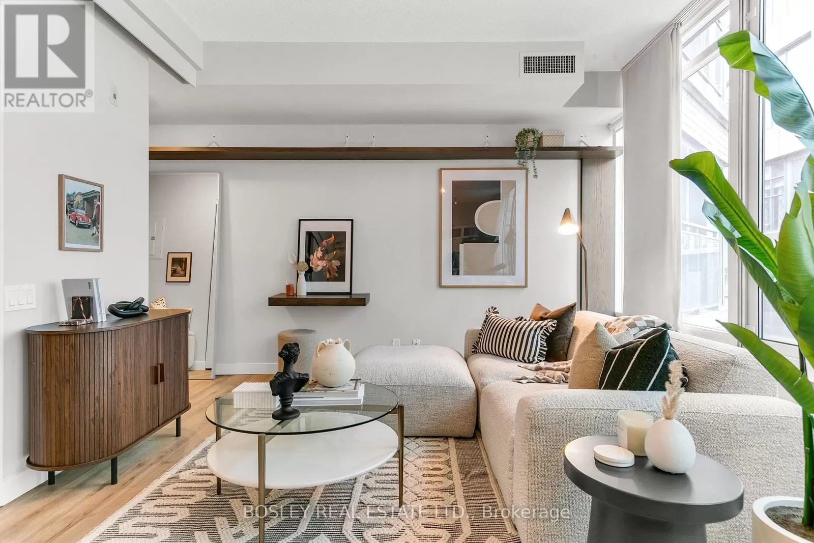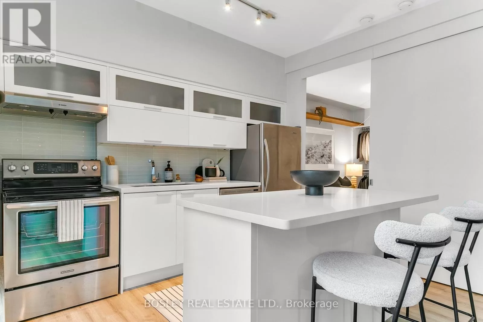 Adelaide/Spadina The Sylvia is not your average condo - and that's exactly the point. This boutique residential loft building in the heart of the Fashion District delivers character, design, city energy, and an unmistakably cool vibe. In this pocket of Toronto, lifestyle and unbeatable convenience are part of everyday life, with Waterworks Food Hall, the Ace Hotel, and St. Andrews Park just outside your door. Inside, this 1-bed, 1-bath unit offers a thoughtful layout with a modern kitchen and eat-in centre island, FULL-sized appliances, wide plank floors, a spacious bathroom with an oversized vanity, large windows, and plenty of storage throughout. Residents also enjoy access to a fitness centre, party and meeting rooms, a landscaped courtyard with BBQs, and visitor parking. With a 100 walk score, 100 transit score, and 99 bike score, getting around is effortless. Whether you're a first-time buyer, a young professional, or a savvy investor, this one delivers the perfect mix of location, layout, and style. (id:27476)