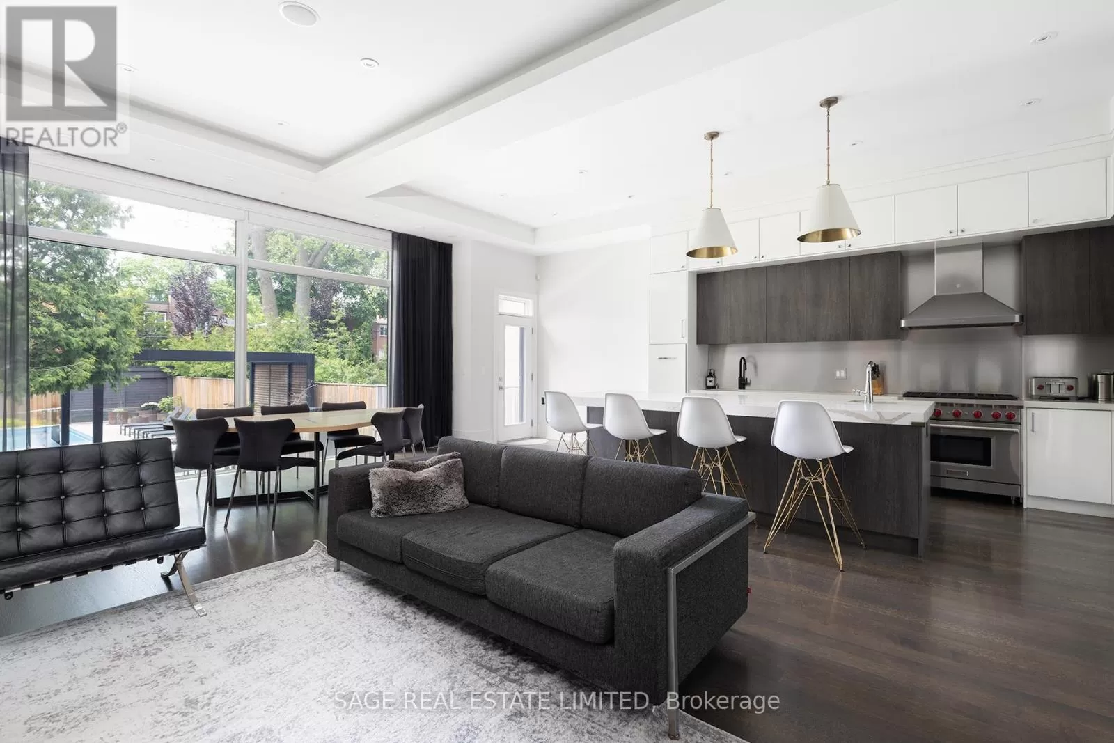 Eglinton and Bayview Welcome to 40 Hoyle Avenue a striking, modern detached home nestled in the heart of coveted Mount Pleasant East. Designed with discerning taste and built for elevated living, this exceptional 4+1 bedroom, 5-bathroom residence seamlessly blends architectural sophistication with everyday functionality. Step inside to discover soaring ceilings and a grand sense of space. The chef-inspired kitchen is a true showstopper, featuring built-in appliances, an expansive island, and sleek contemporary finishes ideal for entertaining or family life. The open-concept layout flows effortlessly into the bright living areas, where automated blinds, clean lines, and premium finishes define every corner. Retreat to the luxurious primary suite complete with a custom Italian-made Poliform closet a masterclass in elegance and organization. Downstairs, the high-ceilinged lower level offers walk-out access, a guest or office bedroom, and an Italian made-to-order Murphy bed by Resource Furniture that transforms into a stylish desk and shelving system a rare fusion of design and versatility. Step outside into your private backyard oasis. A gorgeous swimming pool, hot tub, and outdoor shower create a resort-style escape, while the automated pergola with louvered roof and thermal heating ensures year-round enjoyment. The irrigation system keeps the lush landscaping pristine with minimal effort. Additional features include: central vacuum, smart automation, and thoughtful design touches throughout. This is not just a home its a lifestyle. For those seeking timeless design, modern convenience, and luxury living in one of Torontos most desirable neighbourhoods, 40 Hoyle Avenue delivers. (id:27476)
