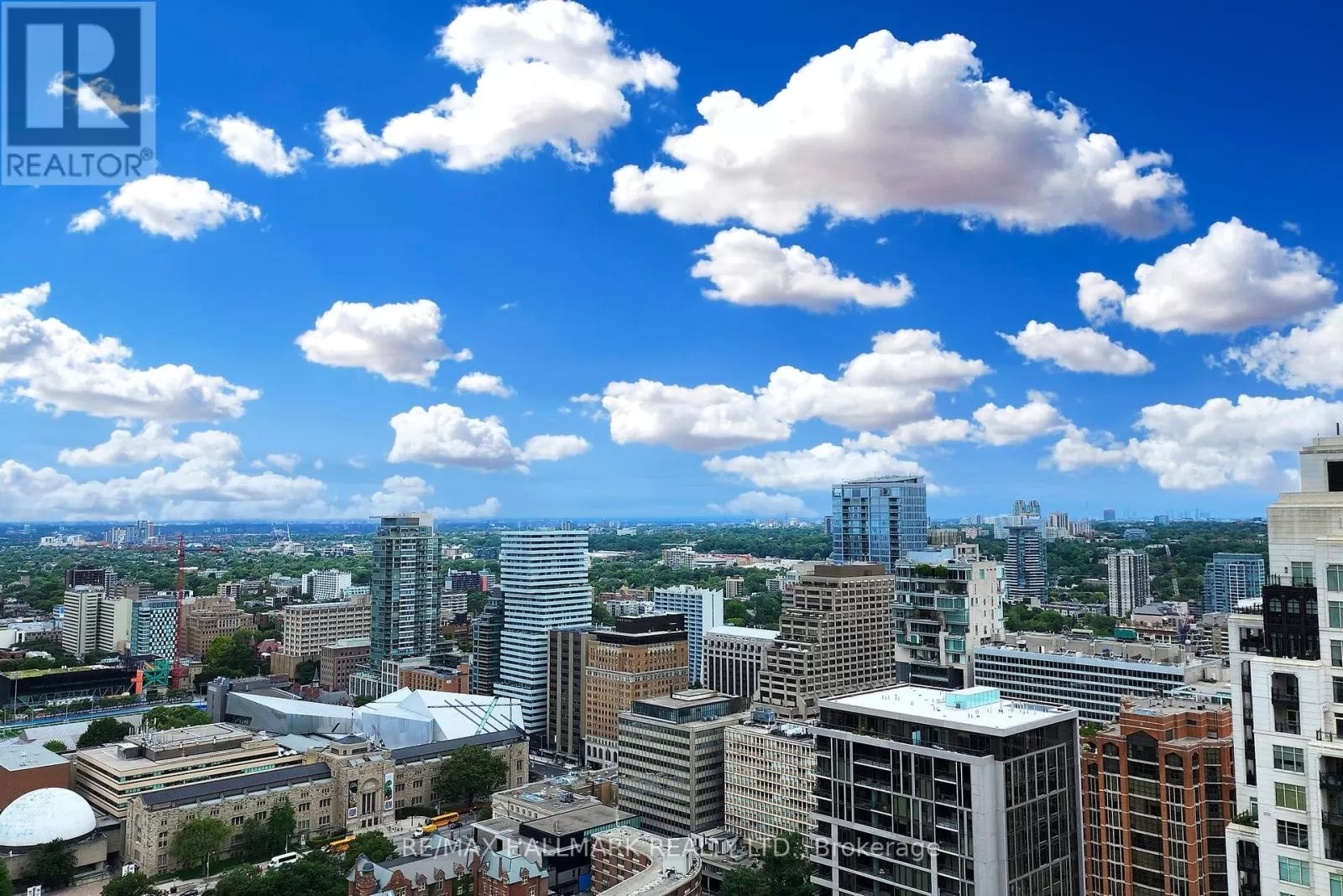 Bay & Bloor Experience luxury living at the prestigious U Condo in the heart of downtown Toronto! This exquisite residence features a large balcony with breathtaking, unobstructed views and 9 ft ceilings. The interiors are adorned with pre-finished, engineered 5" wide wood flooring, and a beautiful European-style kitchen complete with Corian backsplash and countertops.Indulge in the stunning 3-storey lobby with a 24-hour concierge and enjoy access to 4,500 sq ft of top-notch amenities. These include a party room, billiard room, fitness and yoga studio, library, and steam room. Located just steps from St. Michael's campus, the financial district, restaurants, shops, and all essential amenities, this is urban living at its finest. Make this luxurious U Condo your new home and embrace the best of downtown Toronto! (id:27476)