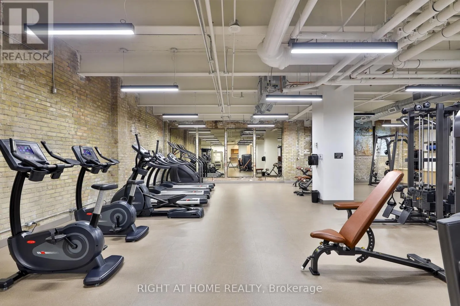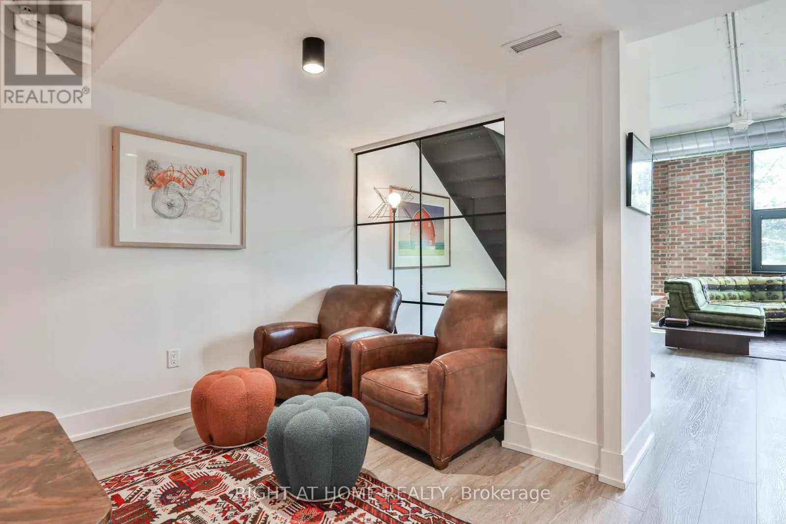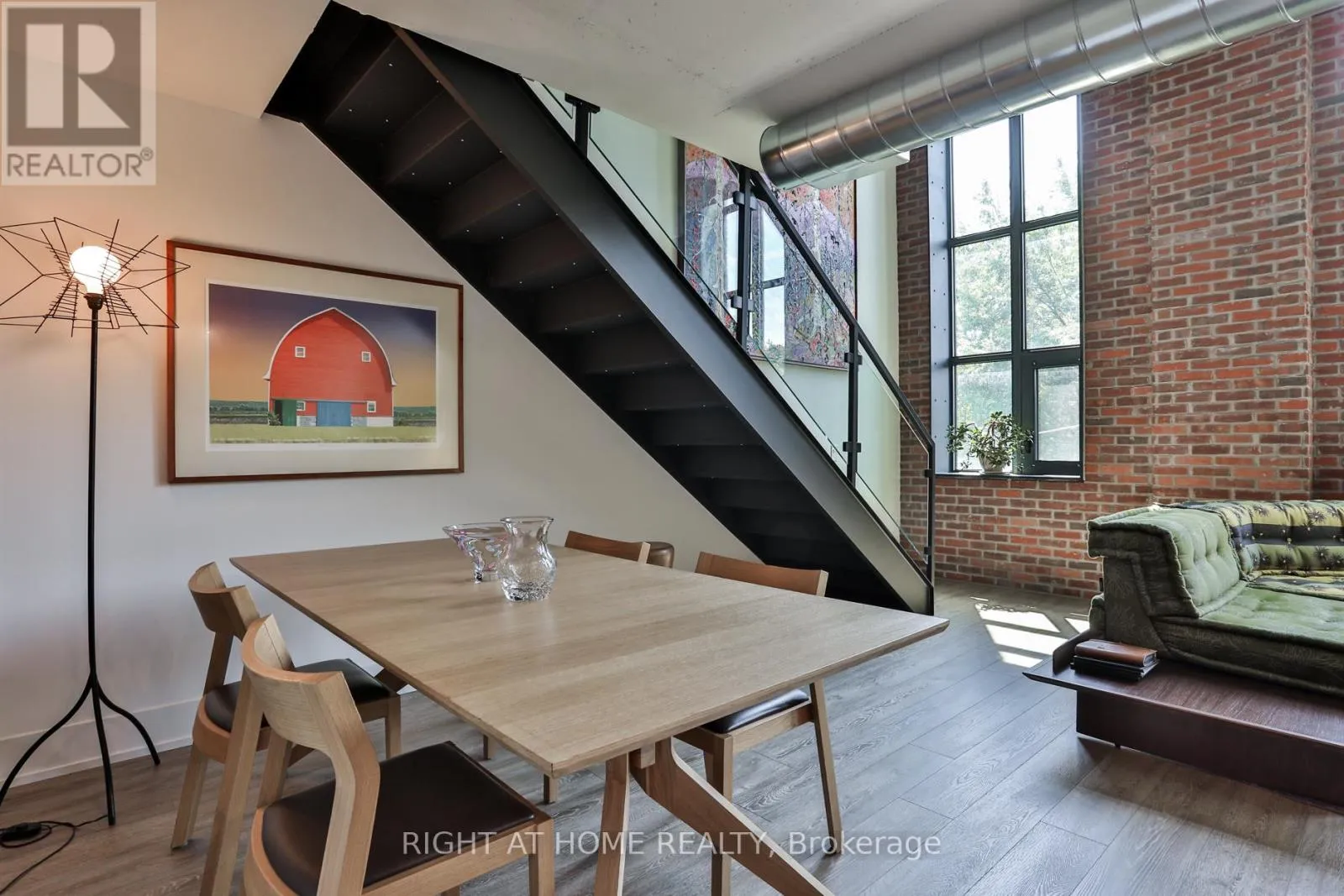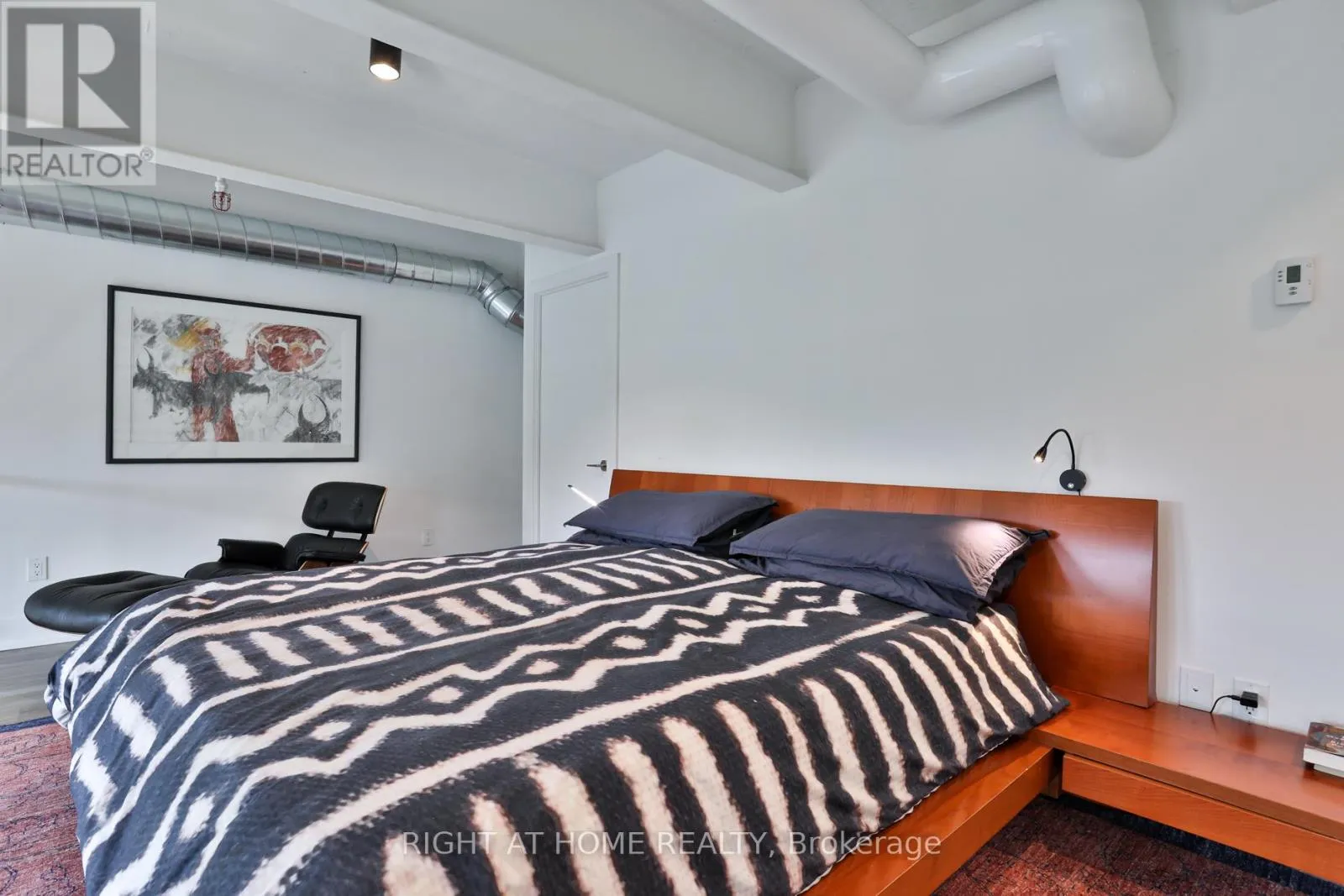 Eastern and Logan Something truly special at Wonder Condos - a sun-filled heritage loft with ideal west exposure, dramatic 17-foot ceilings, and original character throughout. Nearly 1,500 square feet of exceptional living space framed by soaring windows with integrated blinds, warm red brick accents, and a flexible floorplan accommodating up to three bedrooms. The upper loft is devoted to a serene primary suite with a generous walk-in closet and spa-like ensuite with dual vanities. A sprawling chefs kitchen anchors the main level, featuring an oversized island, abundant storage, premium appliances and induction range. Currently, the main floor includes a large office with custom built-ins and walk-in closet (easily reverted to a bedroom) plus a comfortable den, once a third bedroom. A full bathroom serves this level. Life at Wonder Condos offers a dynamic blend of history and modern convenience, with vibrant amenities including a rooftop terrace with BBQs and fire pits, co-working space, dog-wash station, well-equipped gym, and kids party room. Steps to the shops and dining of Queen East, and moments to Ashbridges Bay, Lake Ontario, and easy downtown/DVP access. An evolving neighbourhood within easy walking and cycling distance to the new Port Lands, Biidaasige Park, and the upcoming Ontario Line just blocks away. Exceptional space in a remarkable community. (id:27476)