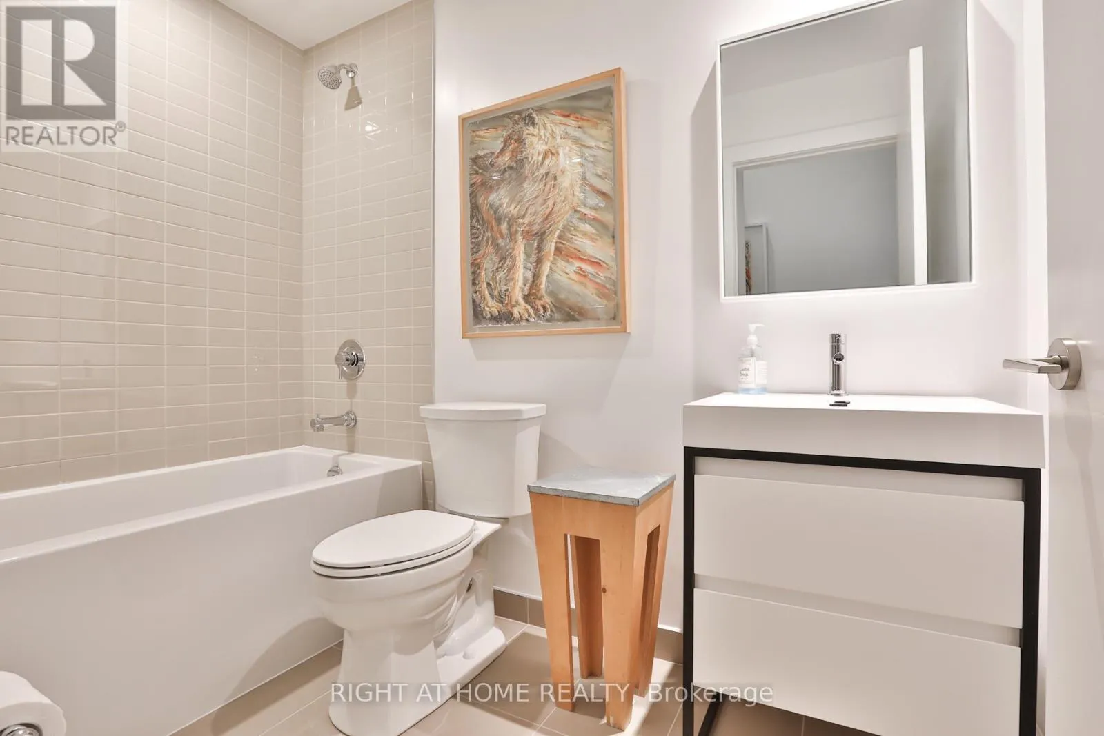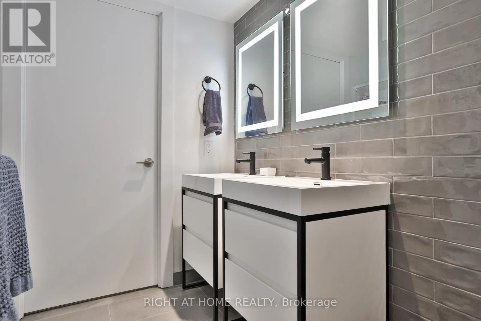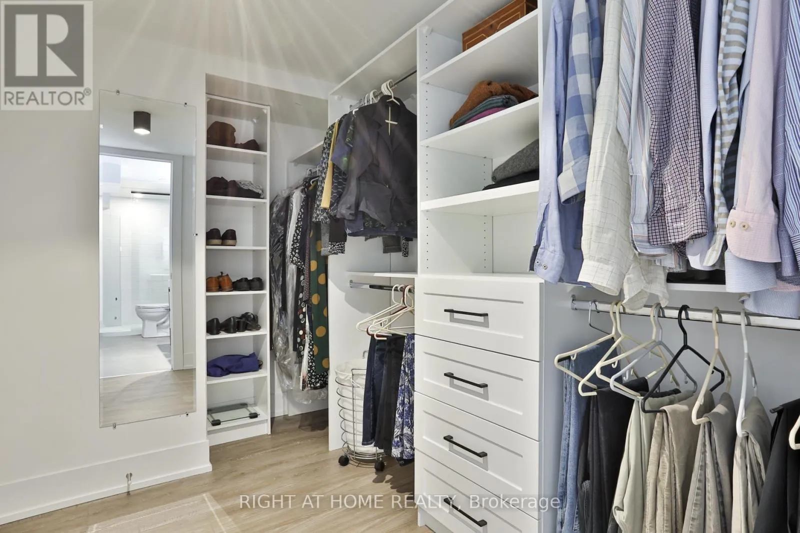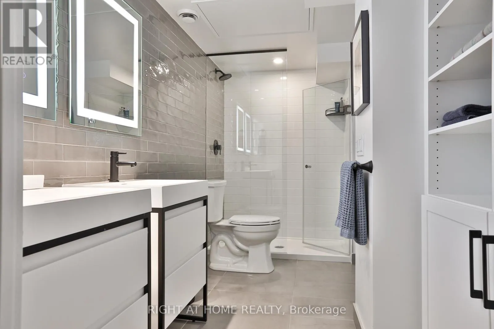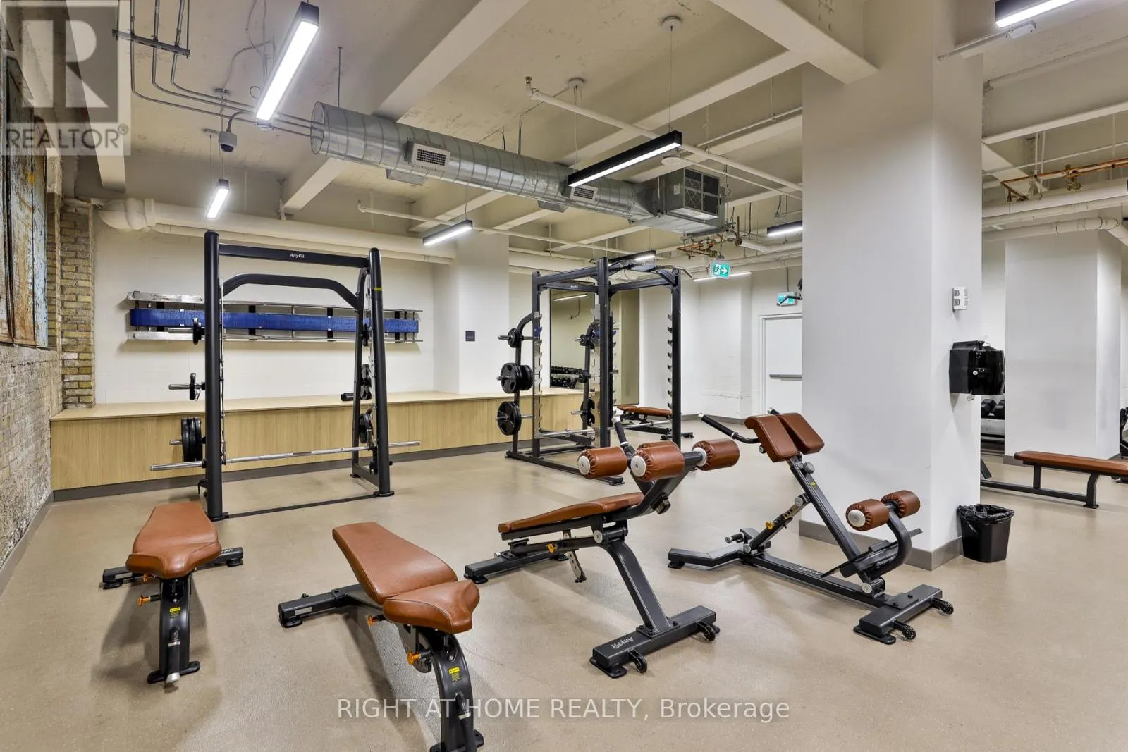 Eastern and Logan Something truly special at Wonder Condos - a sun-filled heritage loft with ideal west exposure, dramatic 17-foot ceilings, and original character throughout. Nearly 1,500 square feet of exceptional living space framed by soaring windows with integrated blinds, warm red brick accents, and a flexible floorplan accommodating up to three bedrooms. The upper loft is devoted to a serene primary suite with a generous walk-in closet and spa-like ensuite with dual vanities. A sprawling chefs kitchen anchors the main level, featuring an oversized island, abundant storage, premium appliances and induction range. Currently, the main floor includes a large office with custom built-ins and walk-in closet (easily reverted to a bedroom) plus a comfortable den, once a third bedroom. A full bathroom serves this level. Life at Wonder Condos offers a dynamic blend of history and modern convenience, with vibrant amenities including a rooftop terrace with BBQs and fire pits, co-working space, dog-wash station, well-equipped gym, and kids party room. Steps to the shops and dining of Queen East, and moments to Ashbridges Bay, Lake Ontario, and easy downtown/DVP access. An evolving neighbourhood within easy walking and cycling distance to the new Port Lands, Biidaasige Park, and the upcoming Ontario Line just blocks away. Exceptional space in a remarkable community. (id:27476)