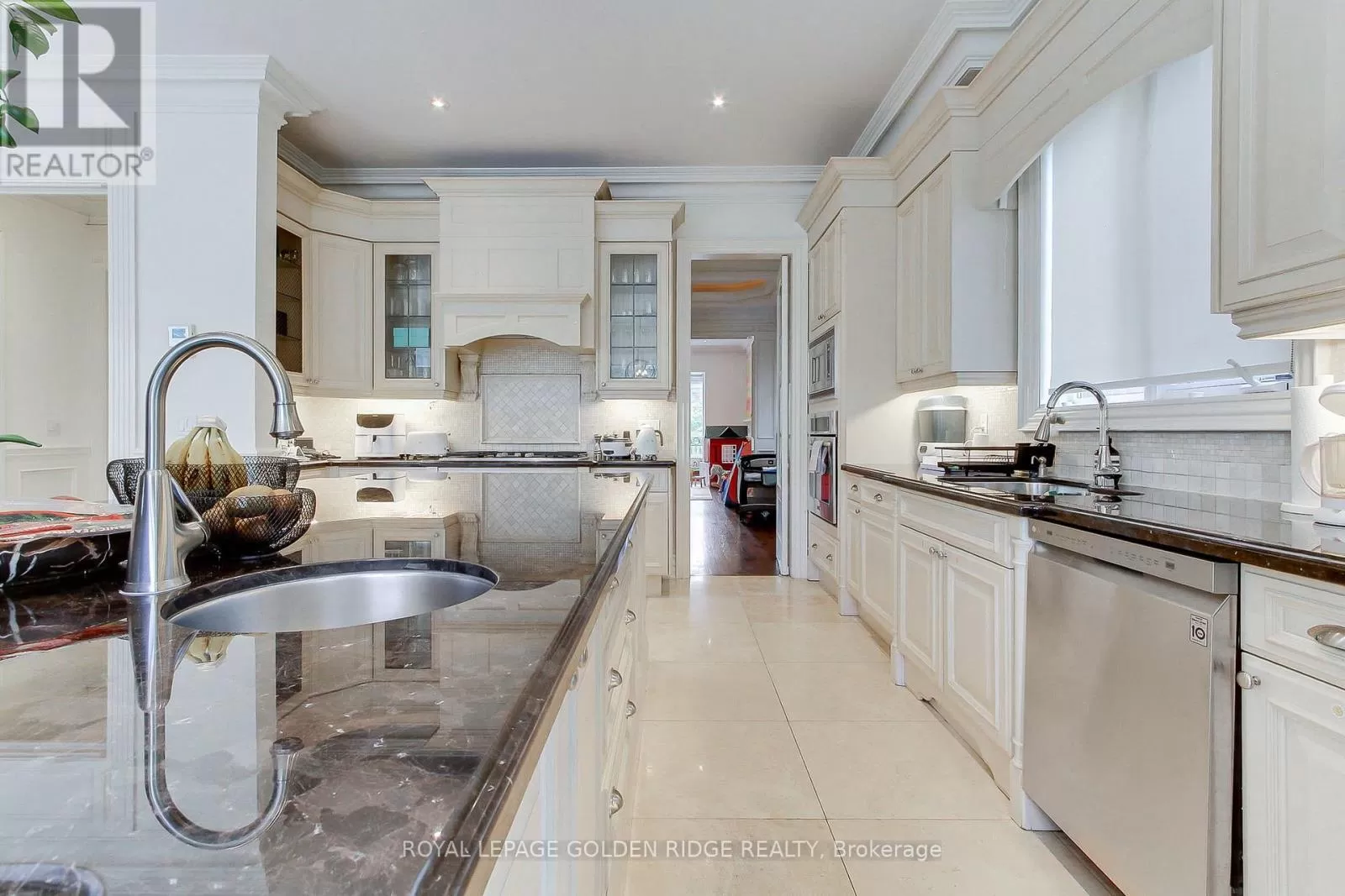 Avenue Rd/Lawrence Stunning Custom-Built Luxury Home in One of Toronto's Most Coveted Neighborhoods! This elegant, meticulously crafted residence boasts a perfect blend of luxurious finishes and grand architectural features throughout. Enjoy a sun-drenched south-facing backyard with walk-outs from the main level to a beautiful deck, plus walk-out from the finished basement. The main floor features dark-stained oak flooring paired with imported limestone tiles in the hallway and kitchen. The gourmet chefs kitchen is a showstopper, offering luxury granite countertops, a massive central island with breakfast bar, and an open-concept layout that flows seamlessly into the family room perfect for entertaining. Fully finished basement with a wet bar, media room, playroom, and mudroom .Classic stone and brick exterior for timeless curb appeal. This home truly offers upscale living in one of Toronto's most desirable communities. (id:27476)