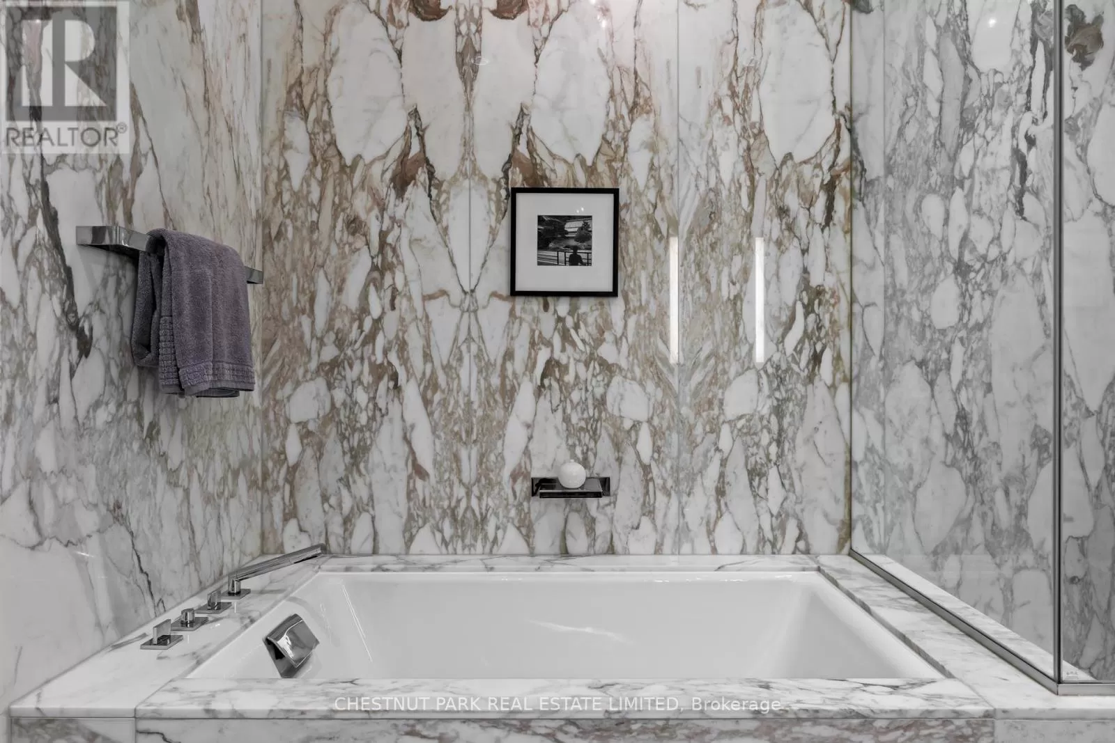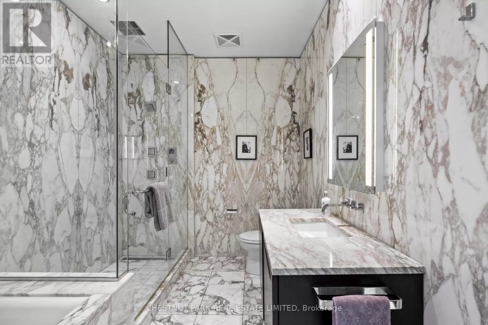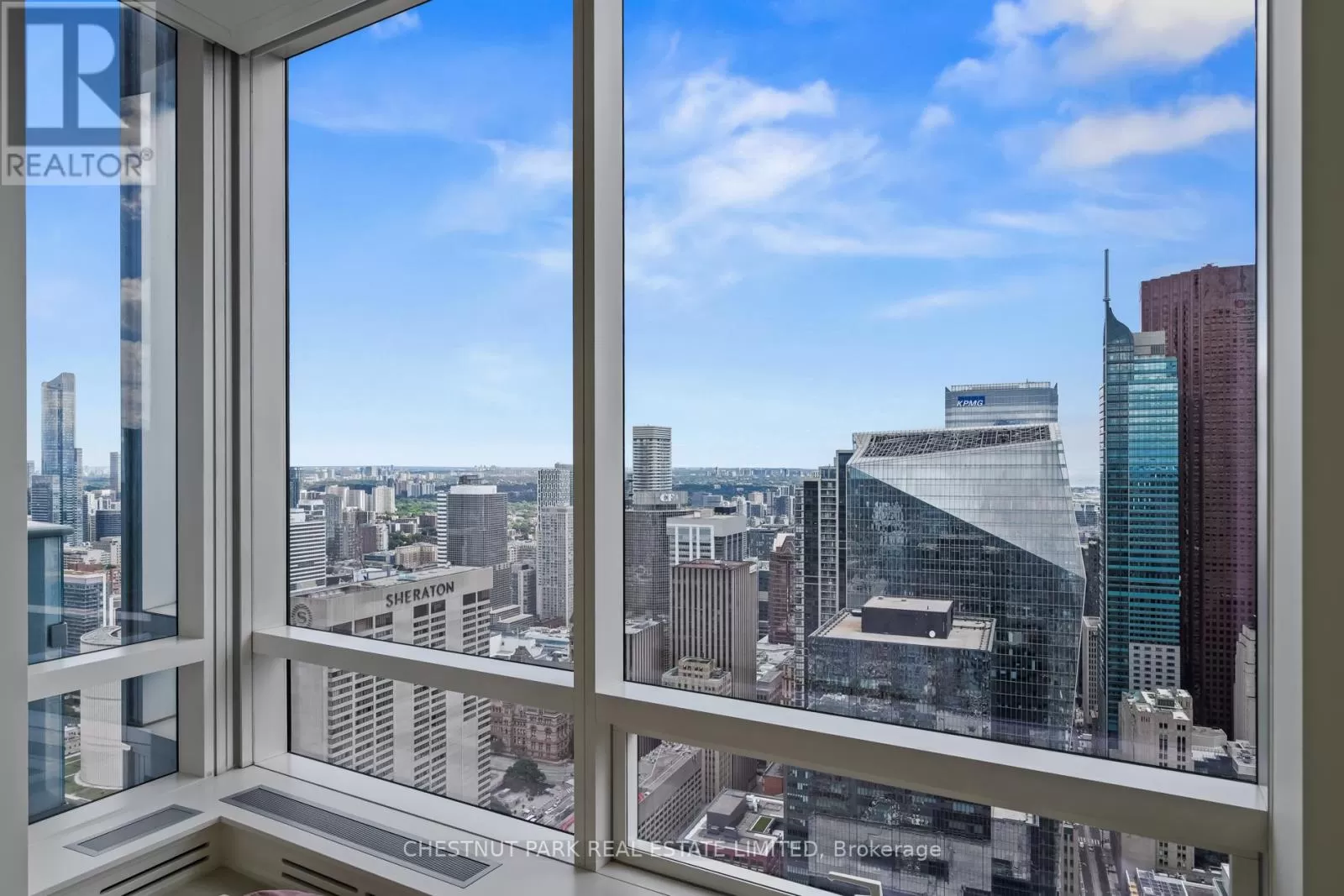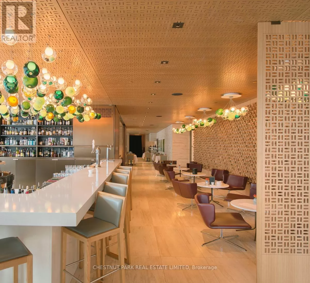 Cross Streets: University and Adelaide. ** Directions: NW corner of University and Adelaide. Suite 5707 is a distinguished one-bedroom Private Estate suite above the Shangri-La Toronto, where panoramic skyline and lake views shift effortlessly from sunlit horizons to a dazzling nighttime city glow. With 10-ft ceilings (only for floors 50 and higher), herringbone hardwood floors, and a Boffi Italian kitchen featuring Miele and Sub-Zero appliances, the home combines elegance and functionality. Motorized shades are featured throughout, while custom Poliform closets in both the foyer and bedroom add boutique-inspired refinement. The marble-clad four-piece ensuite is a spa-like retreat with a deep soaker tub, heated floors, and seven-head Kohler DTV digital shower. One parking stall with valet service and a large private locker room adjacent complete this unique offering. Residents enjoy access to world-class hotel amenities and services including 24-hour concierge and security, a fitness centre, indoor pool, sauna and steam rooms, and valet parking (available only to Private Estate floors)all in the heart of Toronto's Entertainment and Financial Districts. (id:27476)